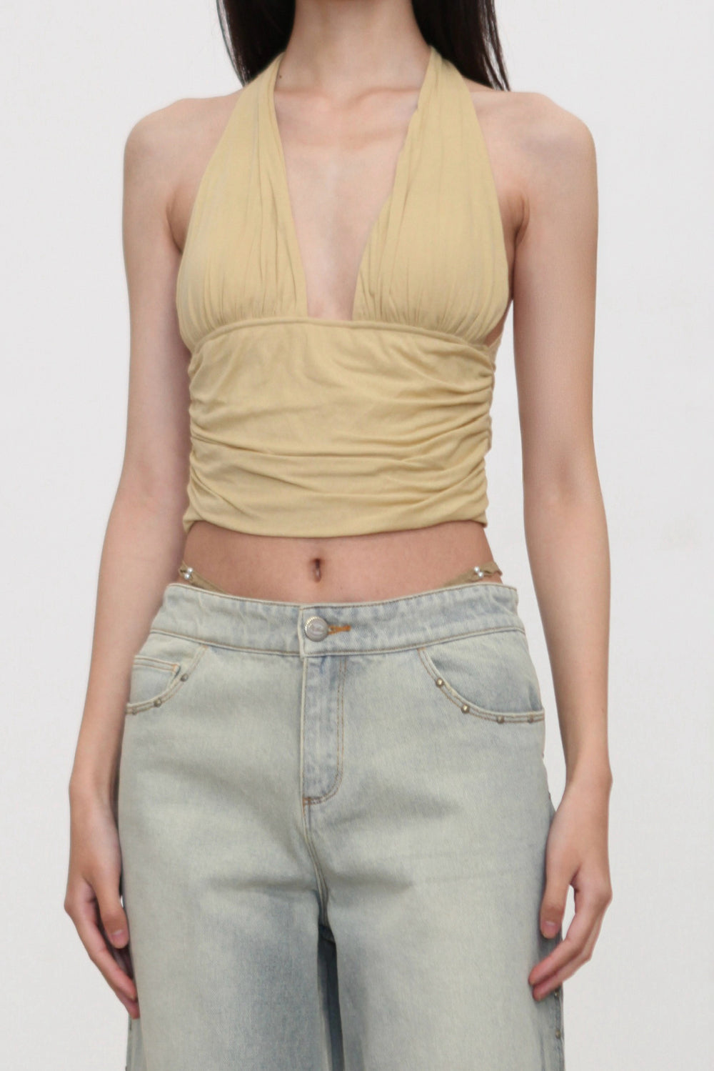 RUI built 26 Early Spring Knot Halter Neck Top Vest RUI-S26WV01WHS-Wheat