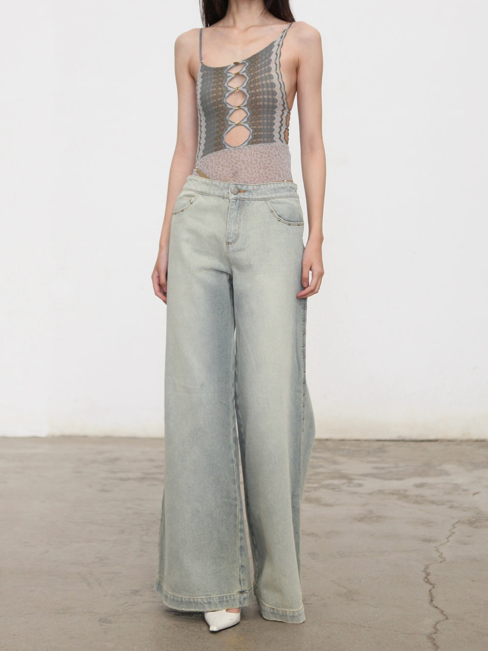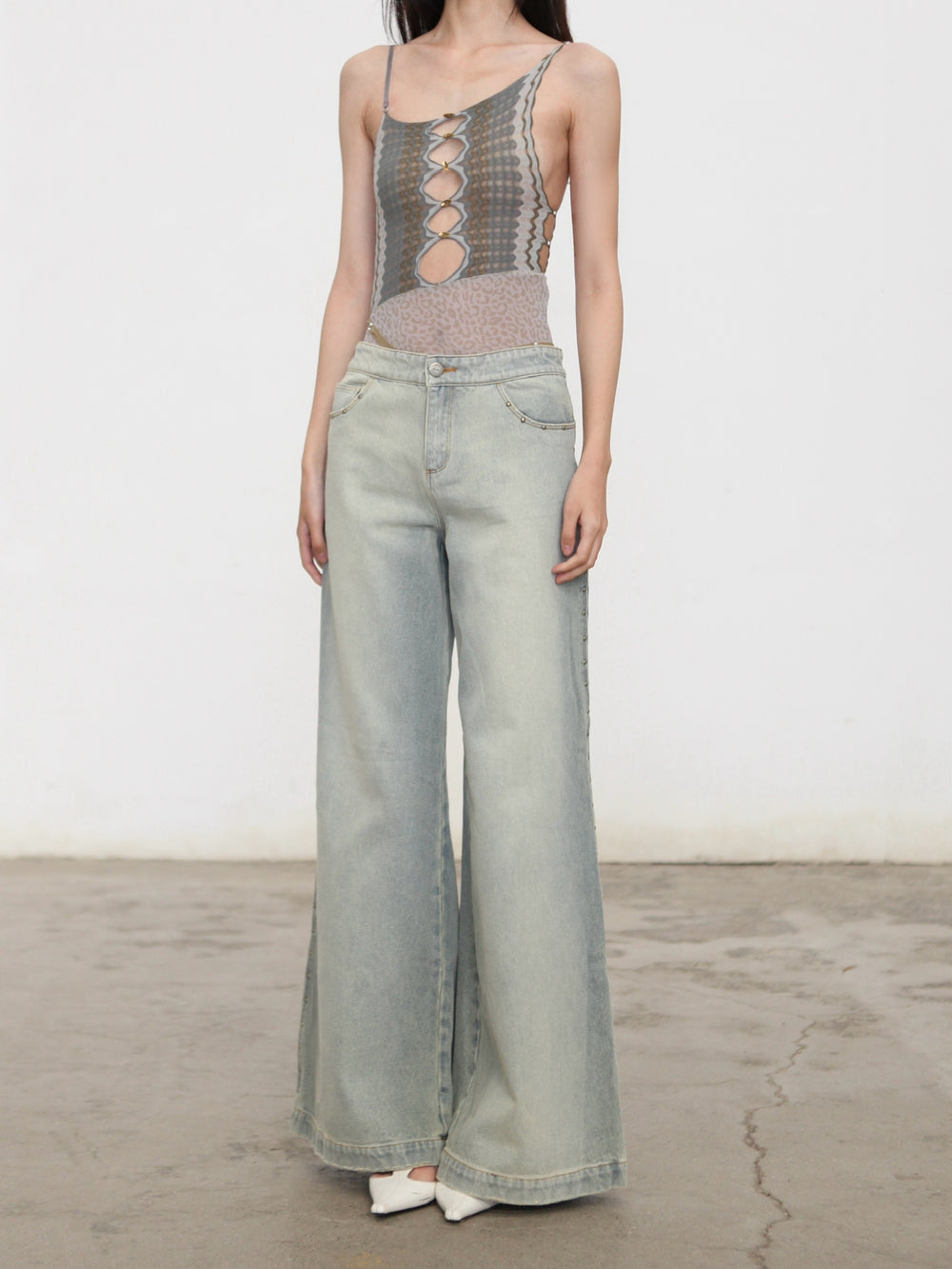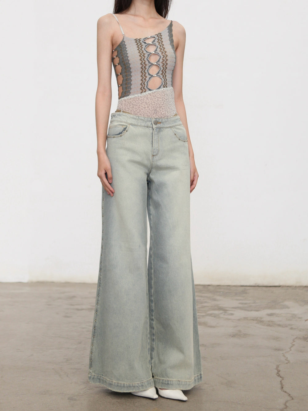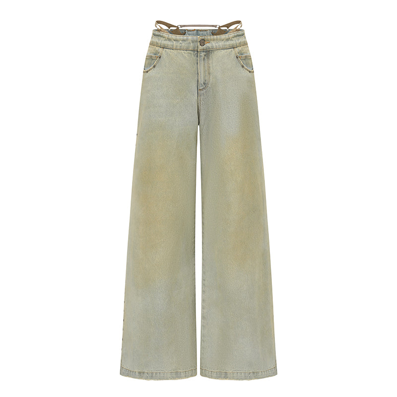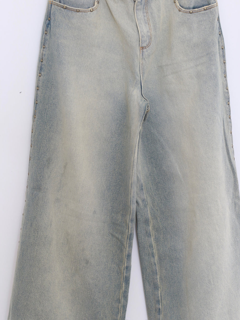 RUI Built 26 Early Spring Wide-Leg Jeans with Thin Straps and Rivets RUI-S26WV26-Sun-faded Blue Retro Blue