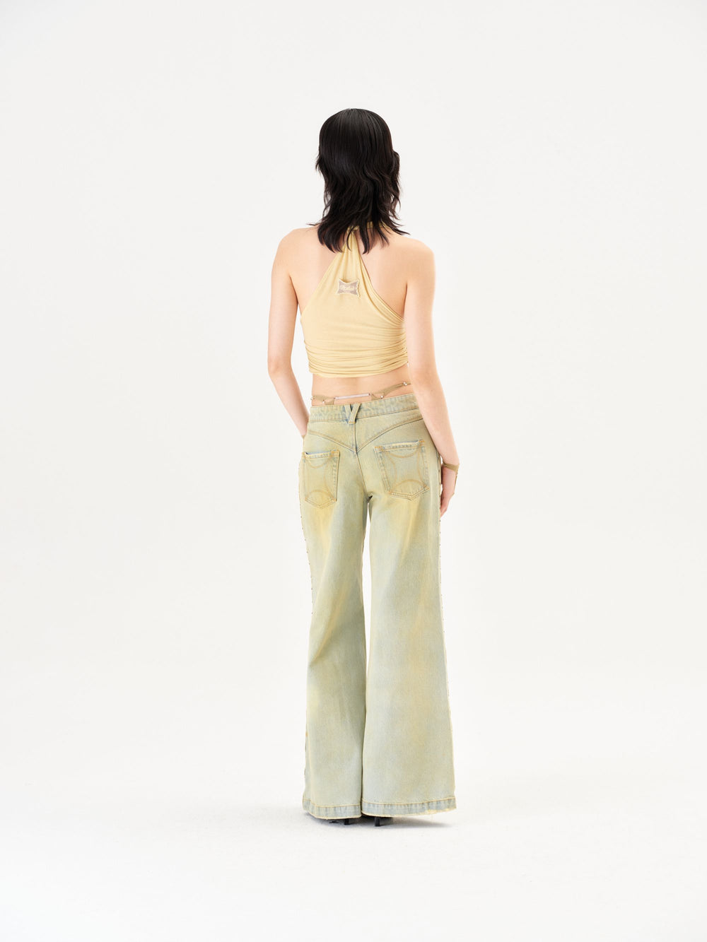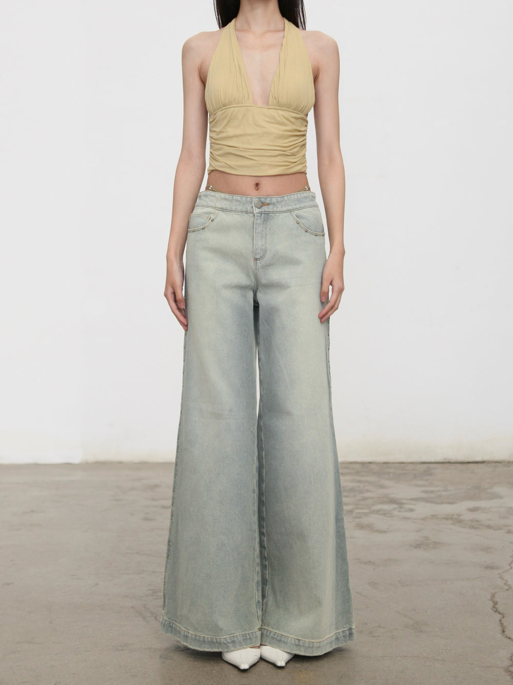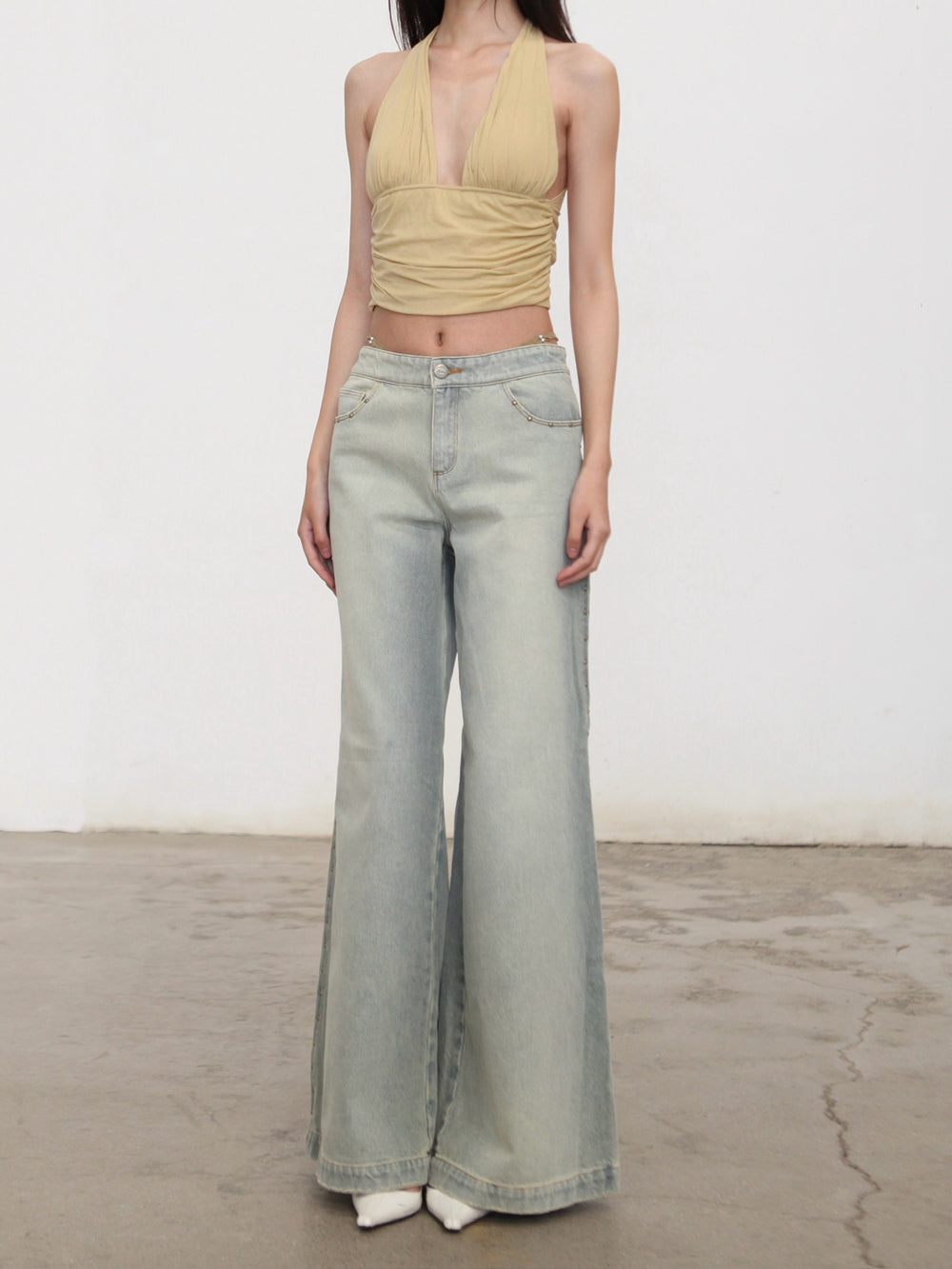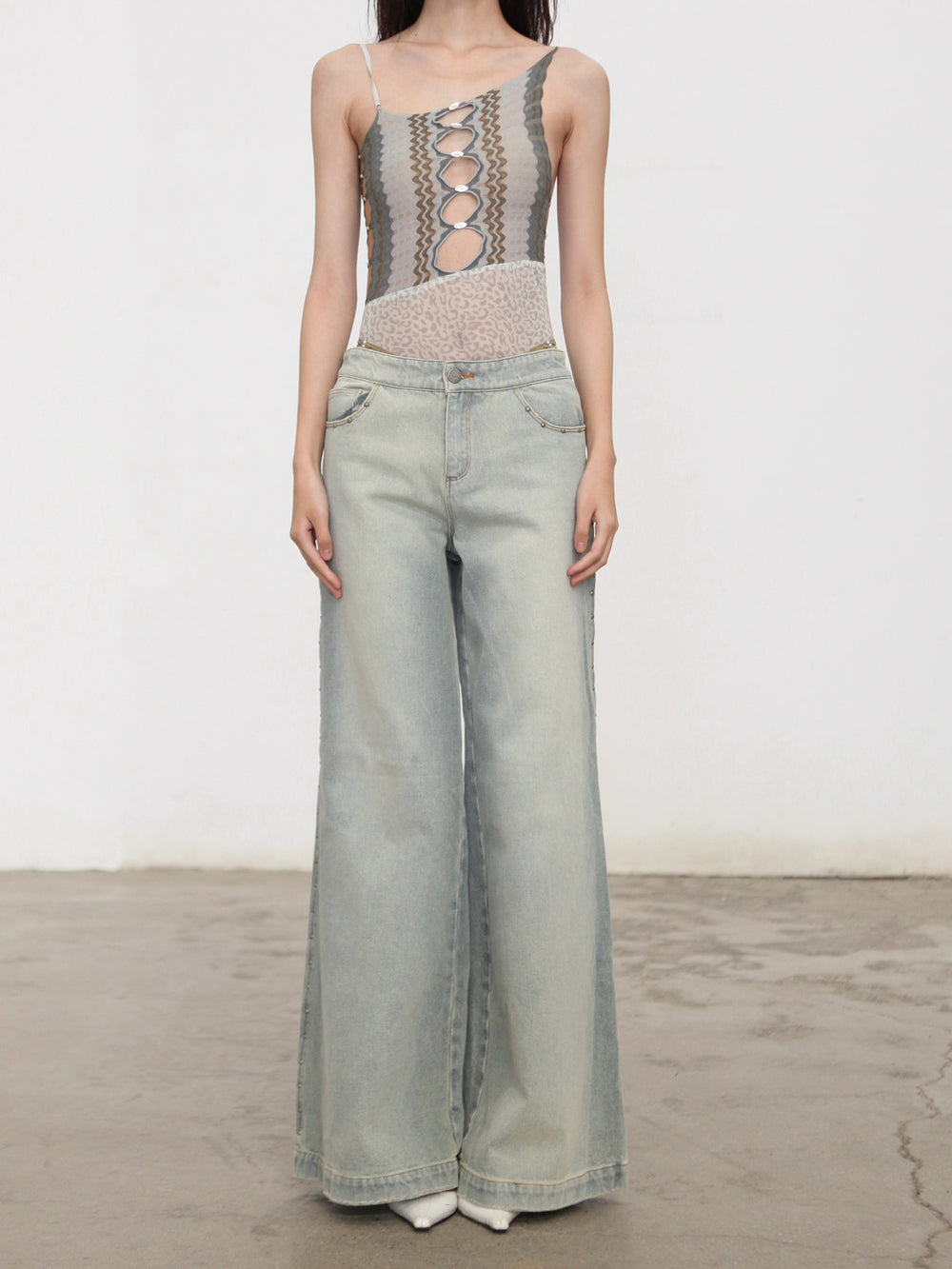 RUI Built 26 Early Spring Wide-Leg Jeans with Thin Straps and Rivets RUI-S26WV26-Sun-faded Blue Retro Blue
