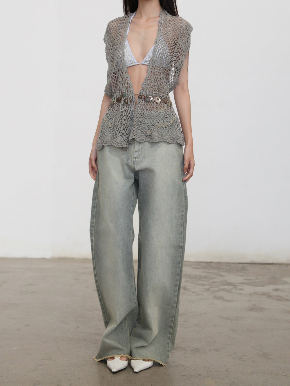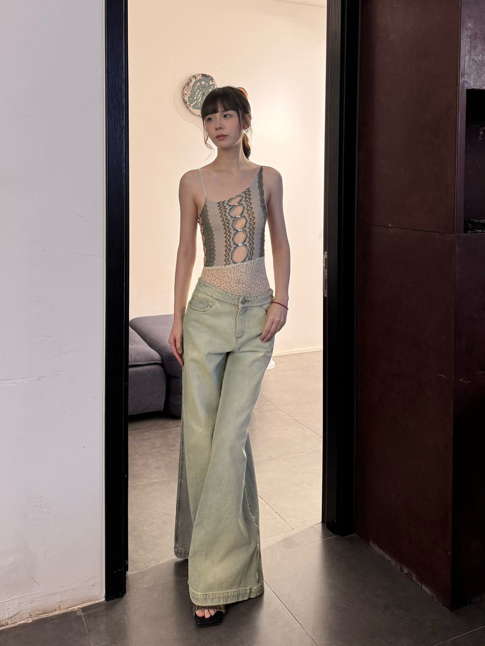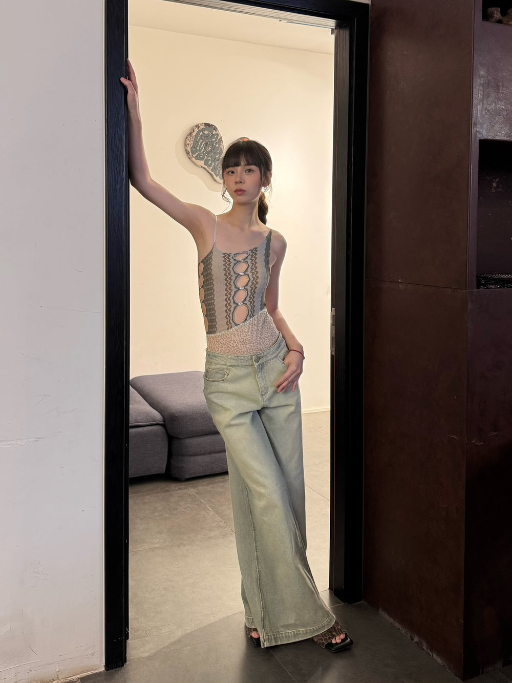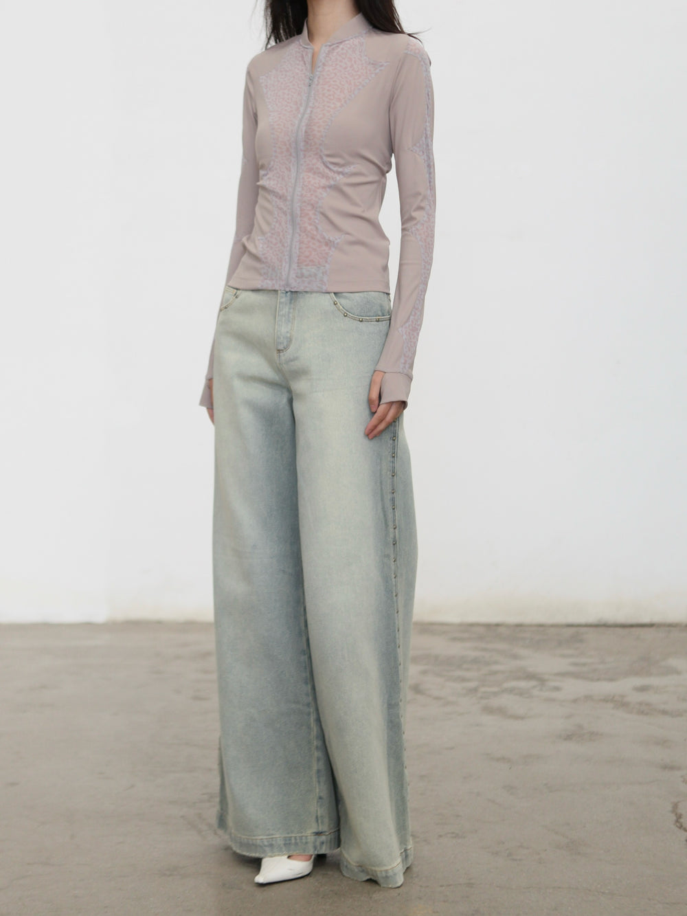 RUI Built 26 Early Spring Wide-Leg Jeans with Thin Straps and Rivets RUI-S26WV26-Sun-faded Blue Retro Blue