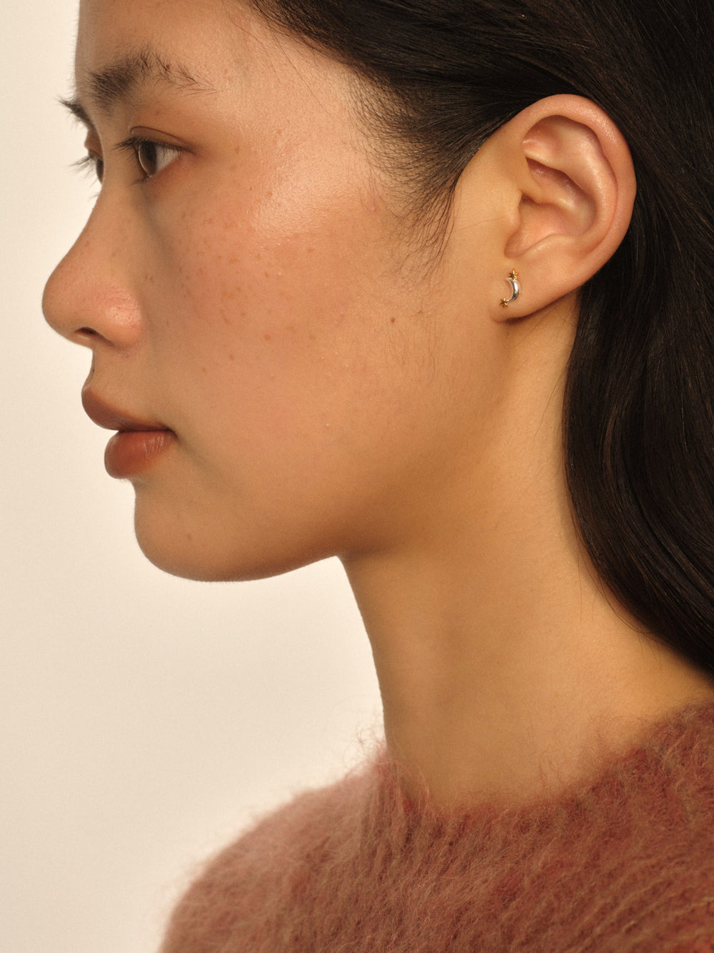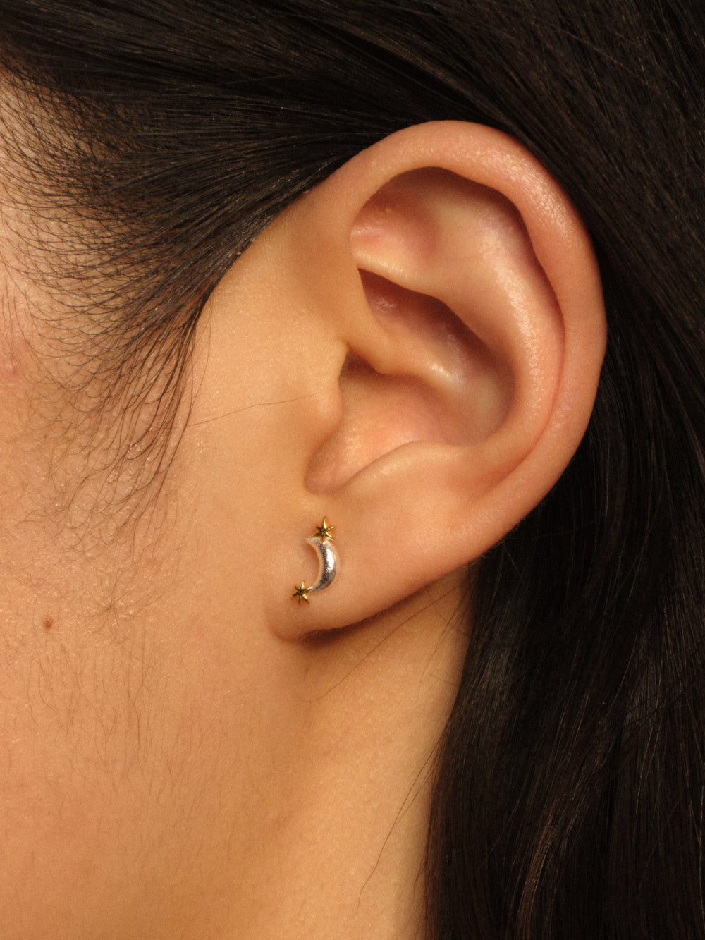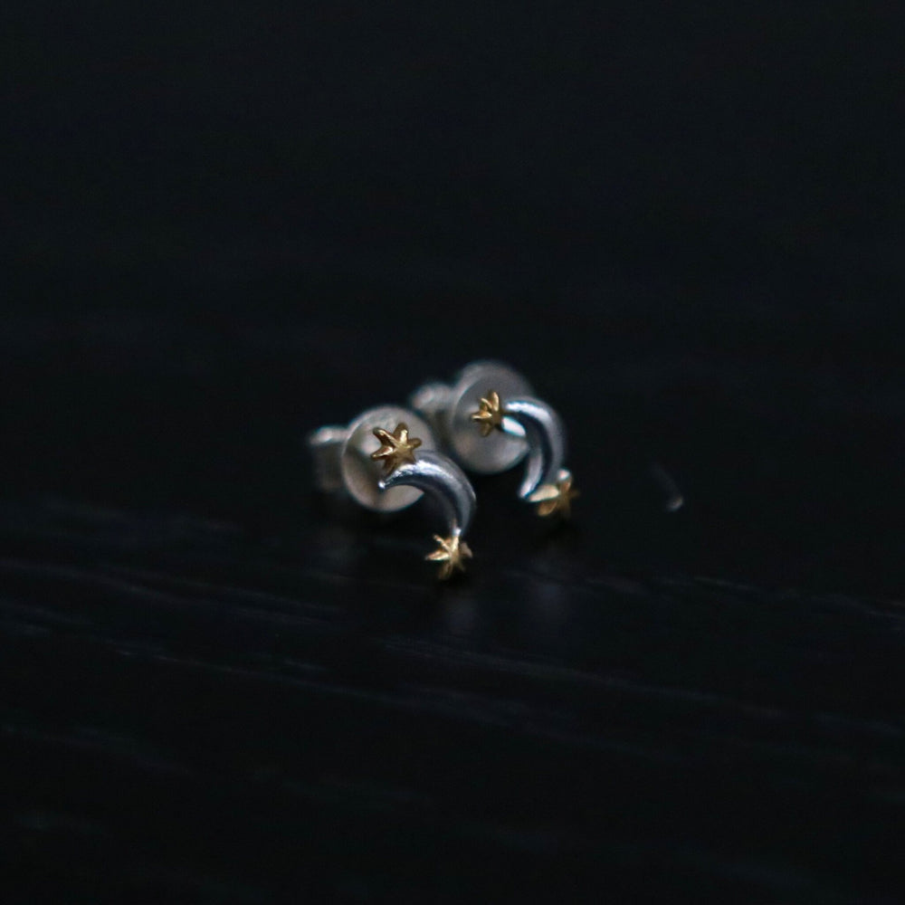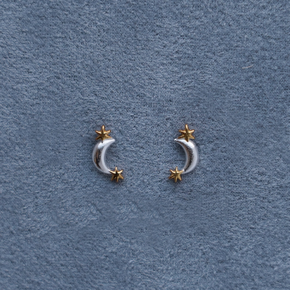 SALE E PEPE Christmas Collection Sterling Silver Gold-Plated Two-Tone Star and Moon Earrings SEP-SPCME03-YJ Silver/Gold