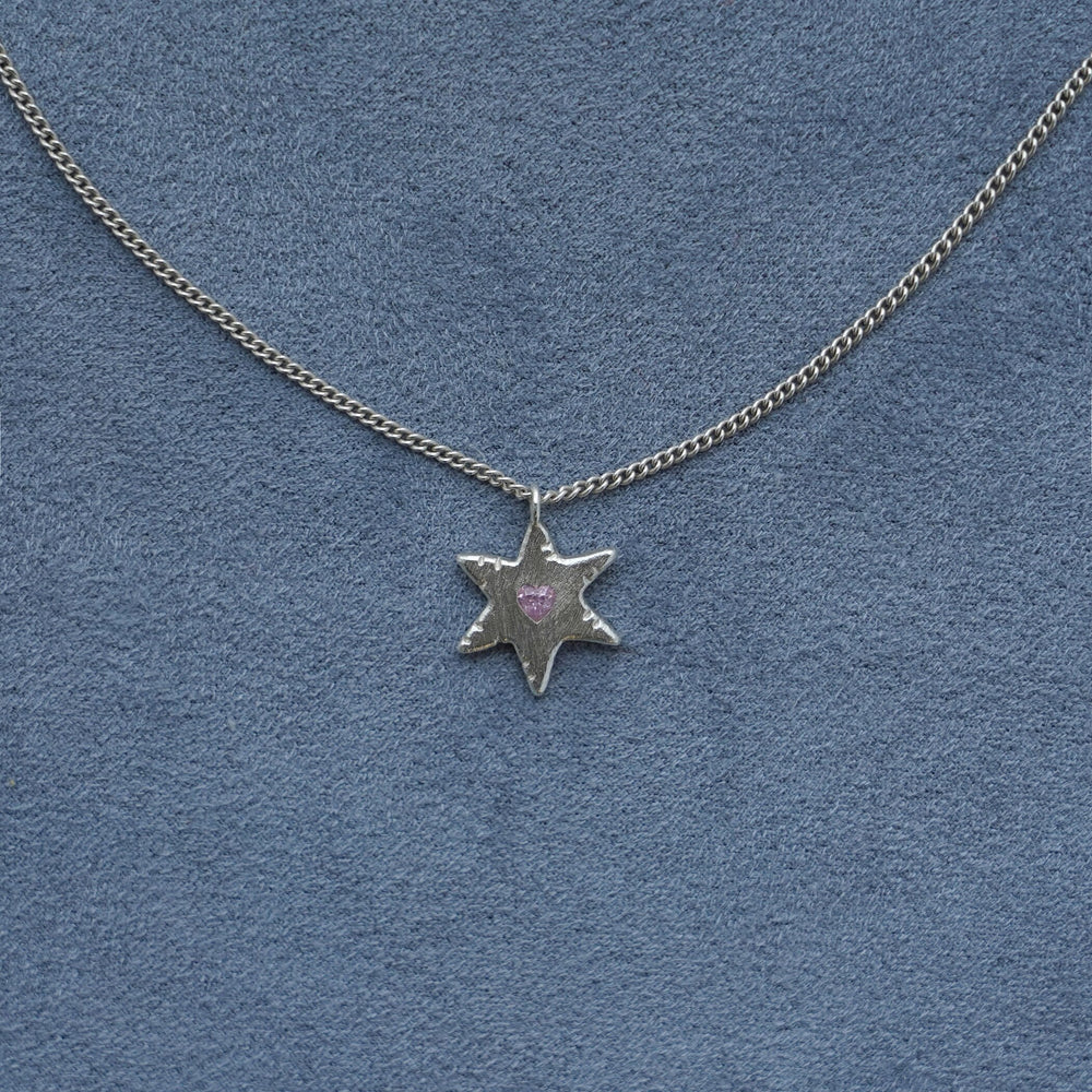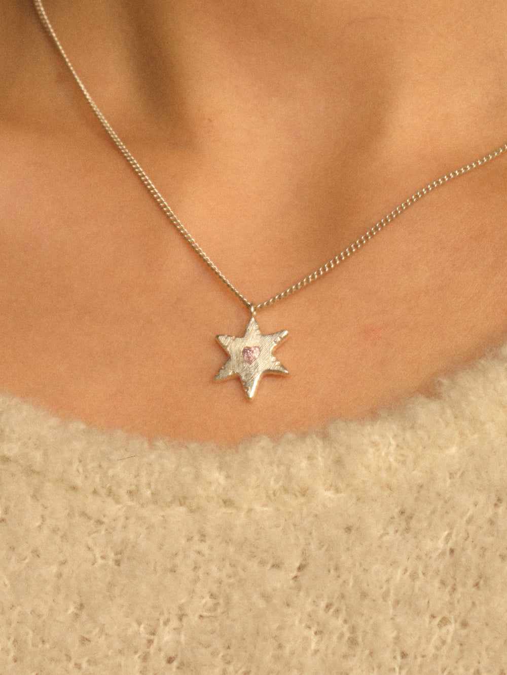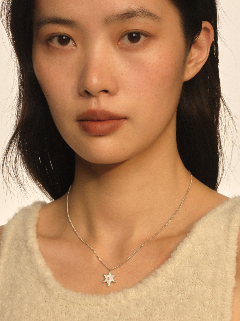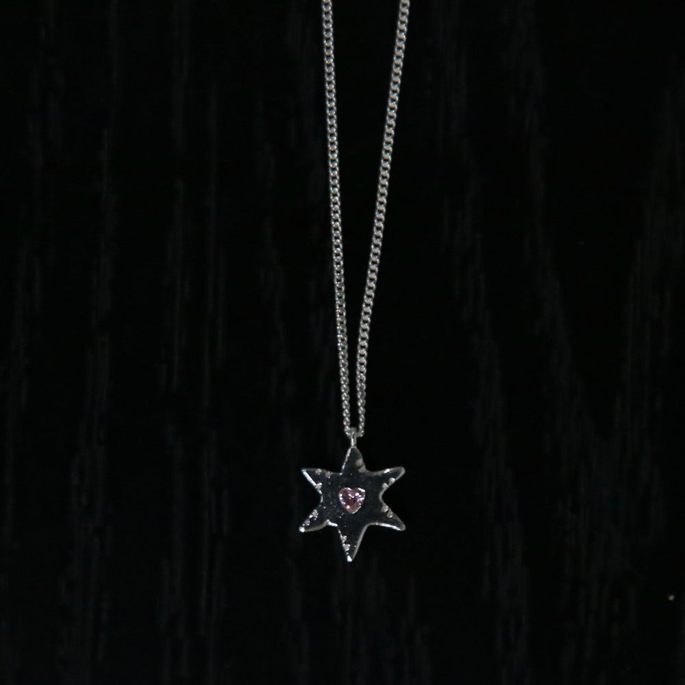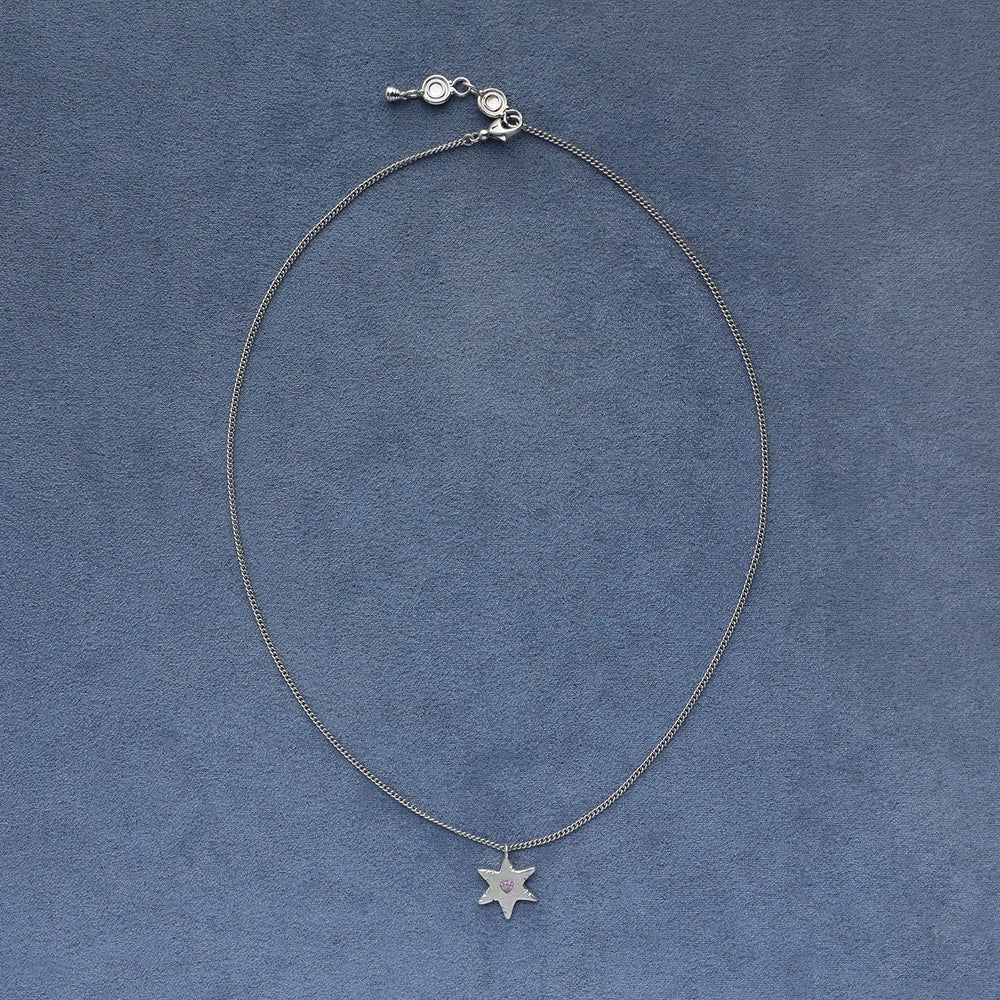 SALE E PEPE Christmas Collection Sterling Silver Star Necklace SEP-SPCMN01-YF Silver/Pink