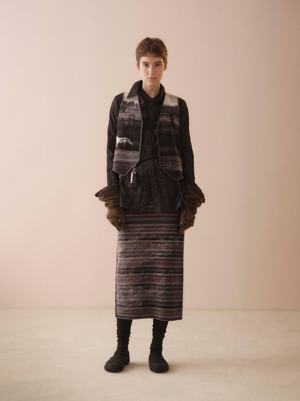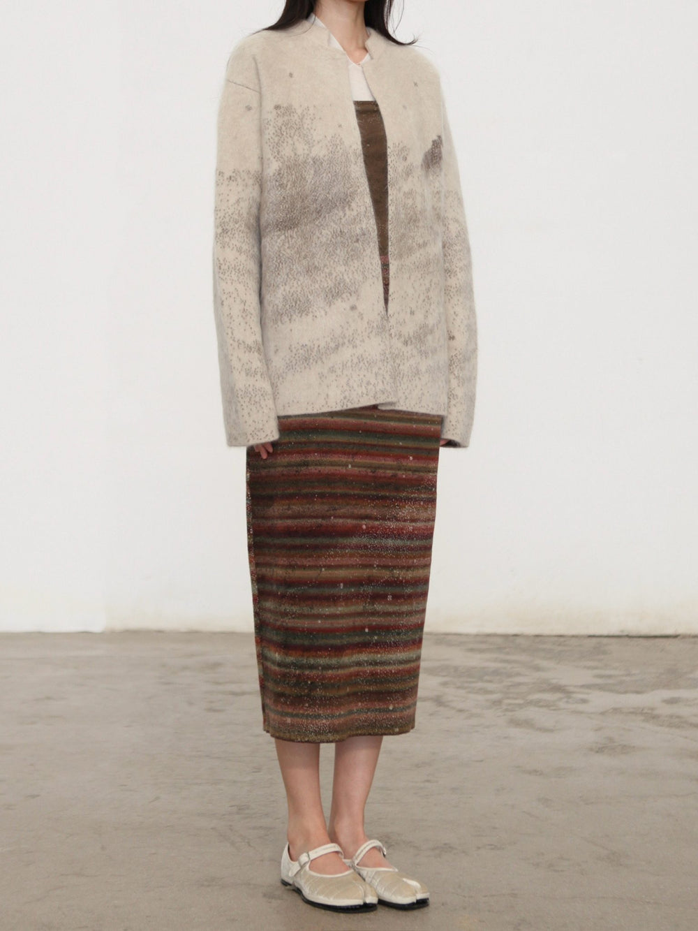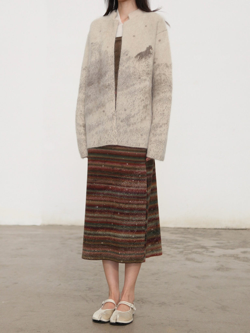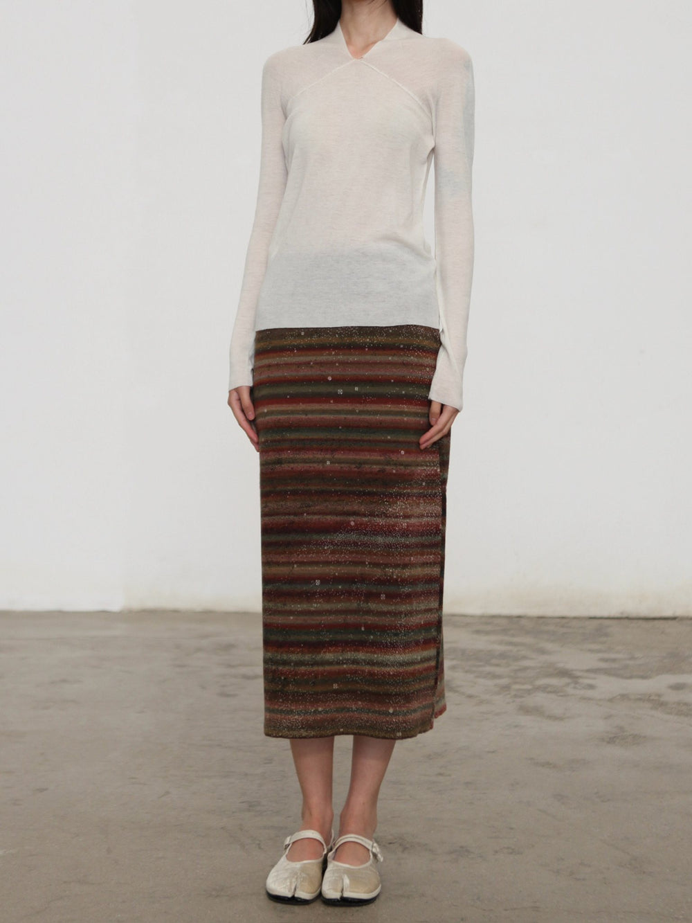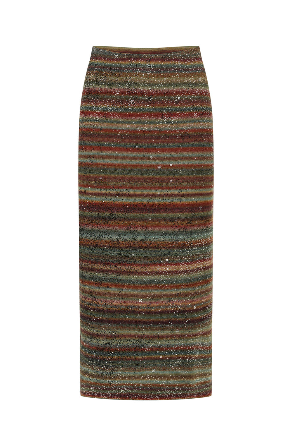 SWAYING 26 Early Spring Gradient Striped Midi Skirt SW-SW26PS3B07C1-LZ Green-Brown