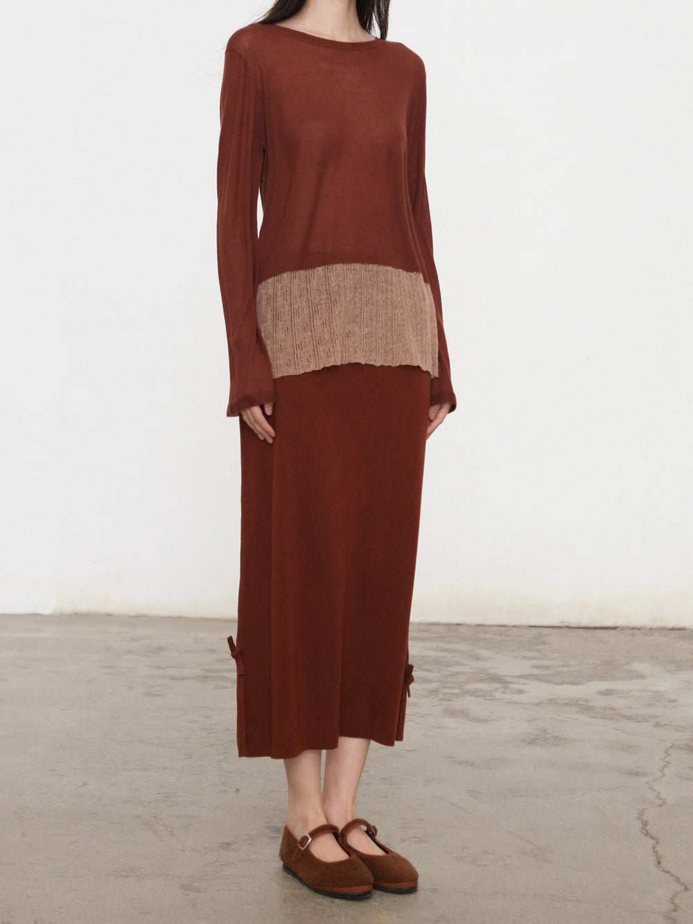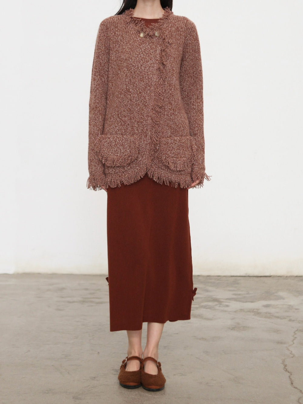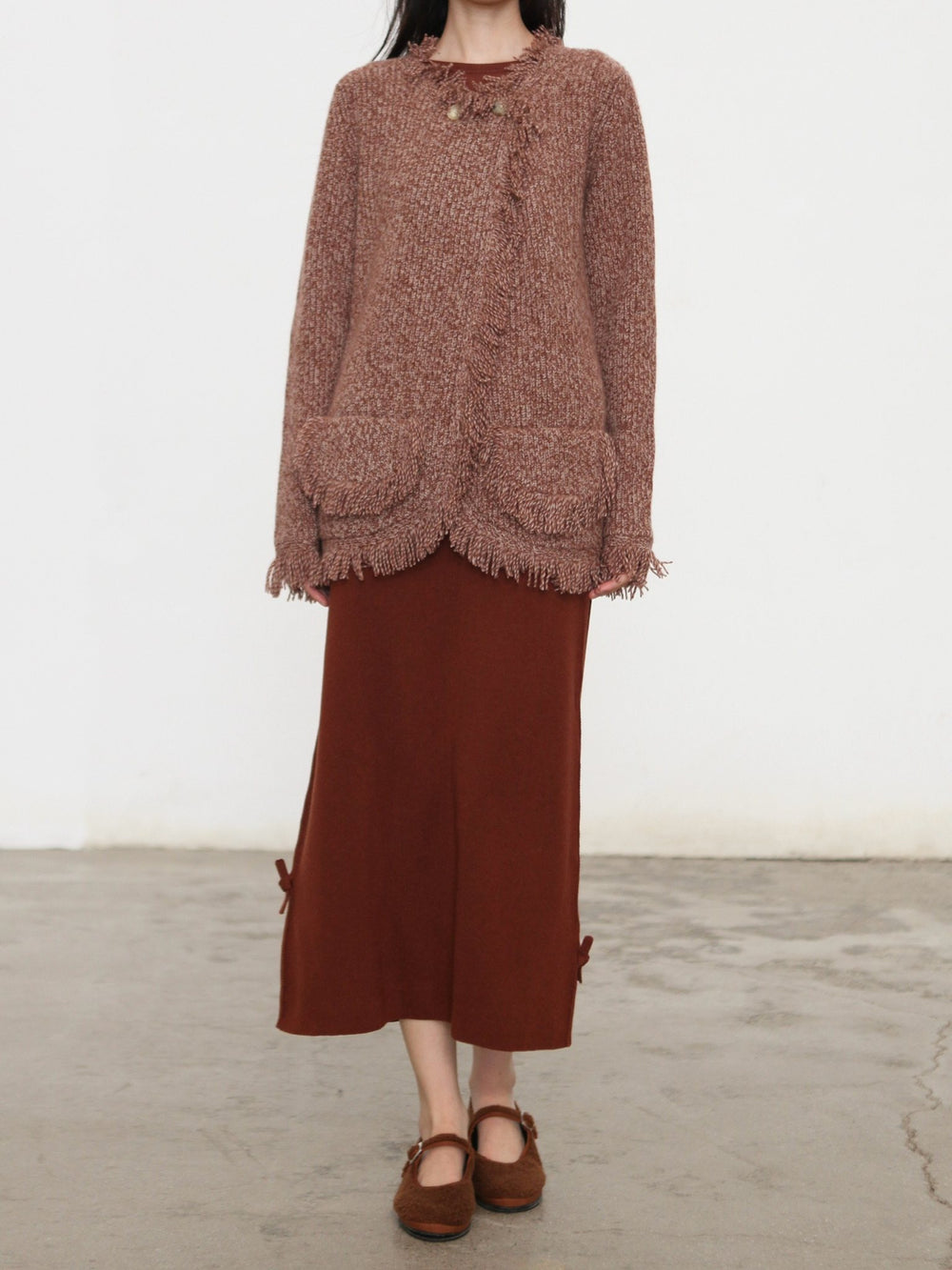 SWAYING 26 Early Spring Straight Skirt with Knot Decoration SW-SW26PS3B03C3-ZONG Brown