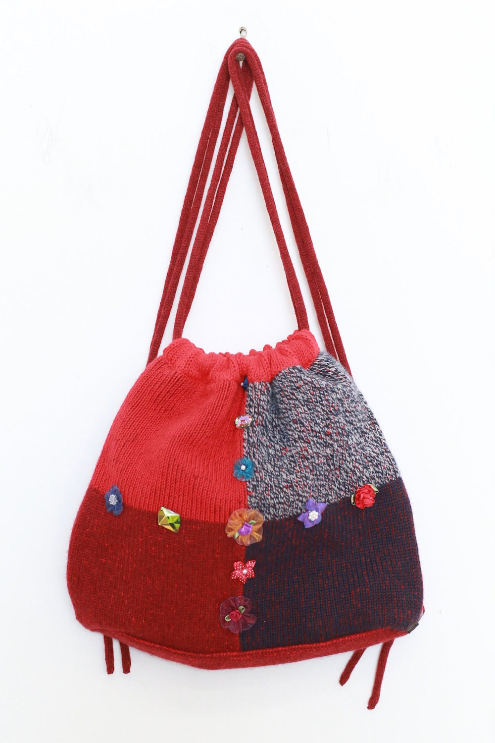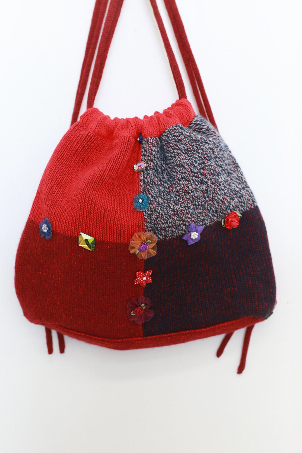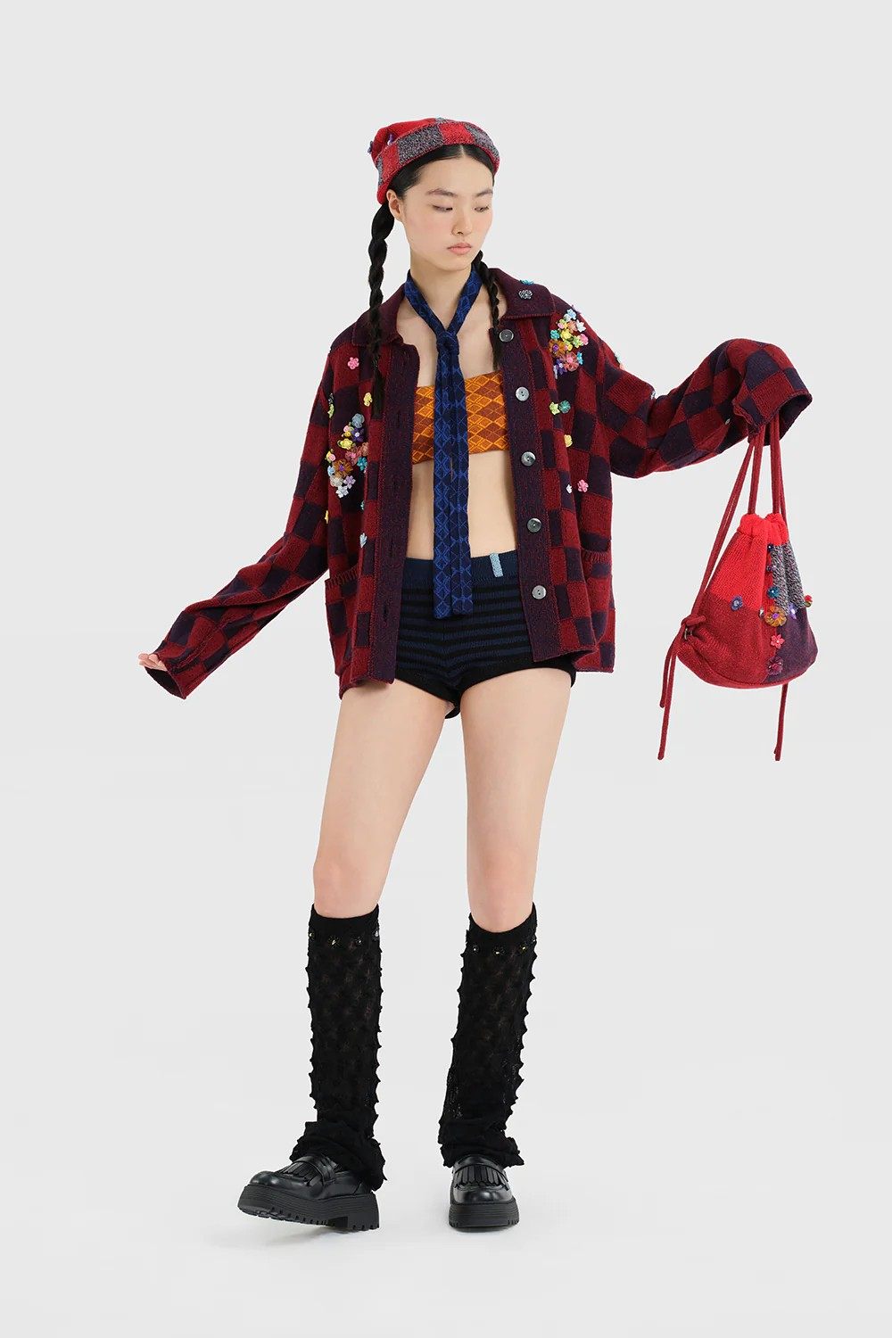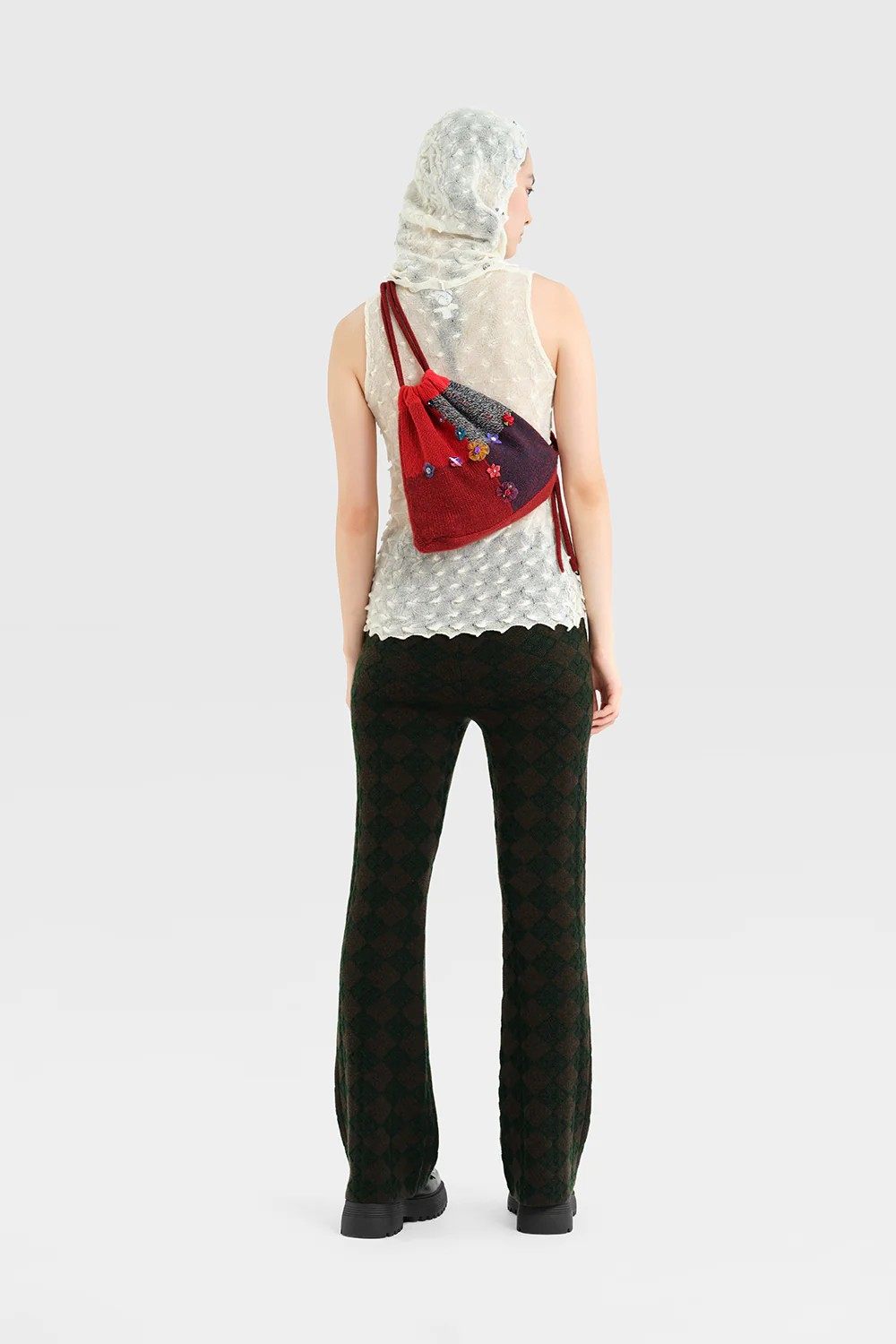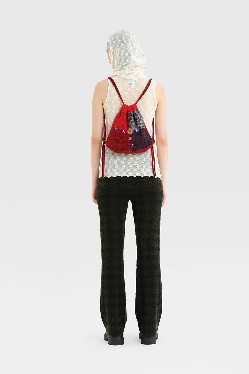 YANYAN KNITS Woven Check Drawstring Backpack YYK-YYW25-2651-PIN (Large YYW25-2641)