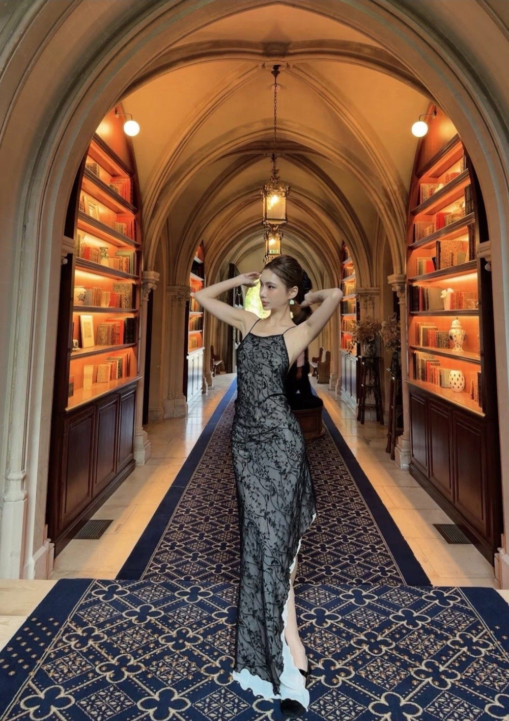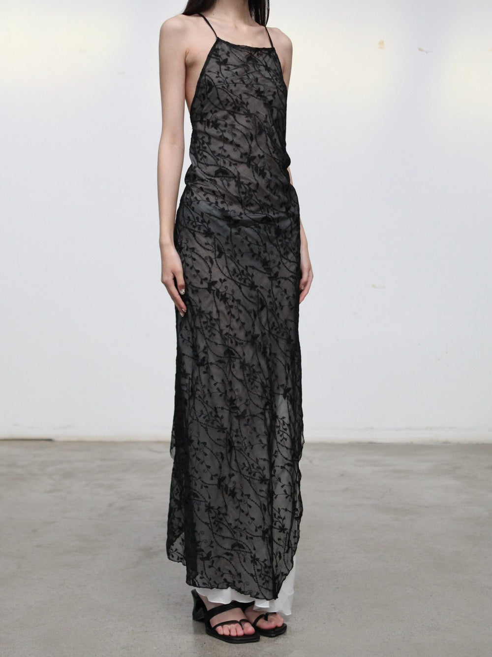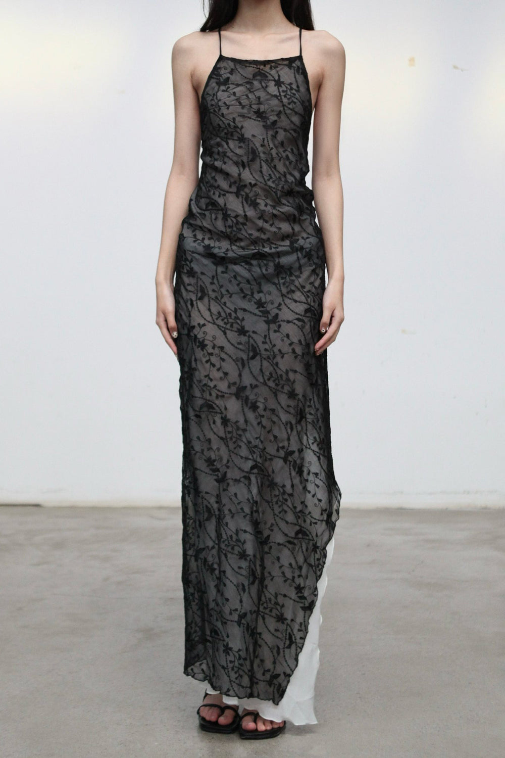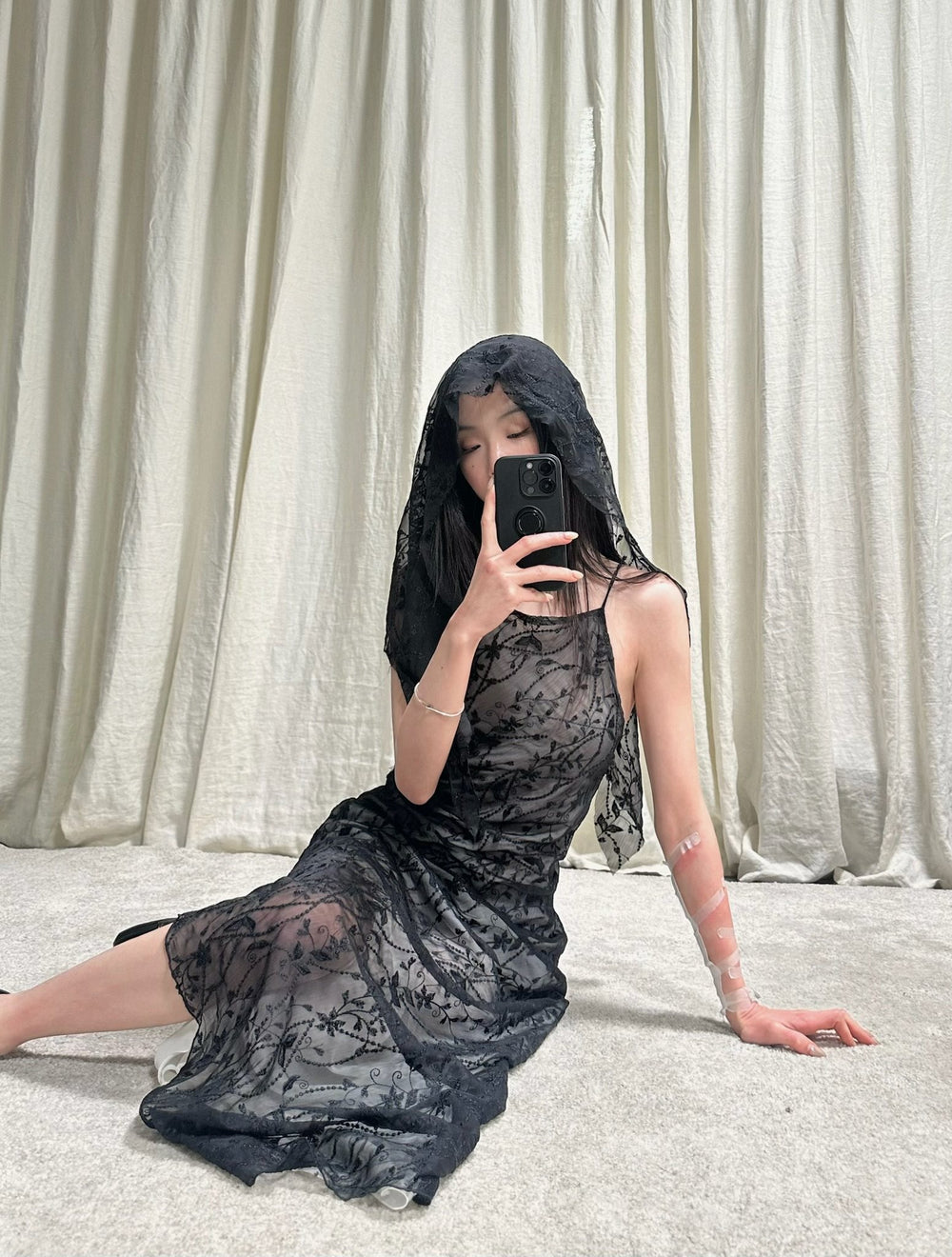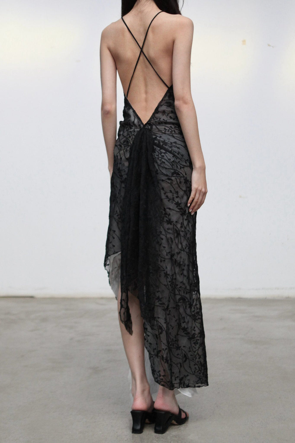 Maison Yiy Spring/Summer 2026 Veil Wrap Dress MY-MYS26C14-2-Black Vine Lace