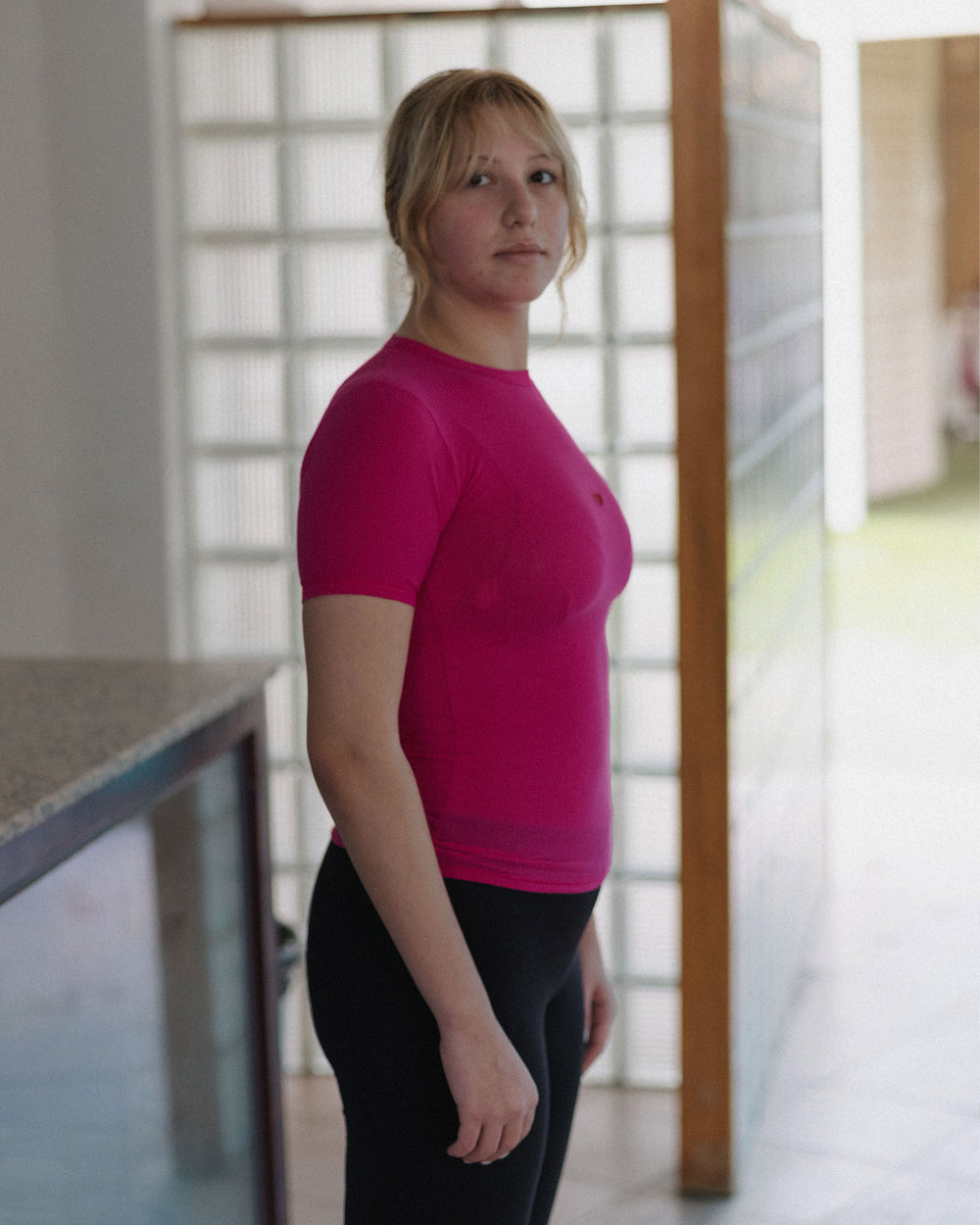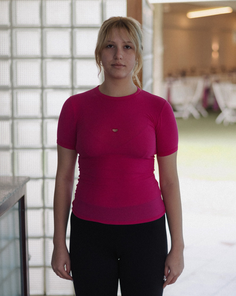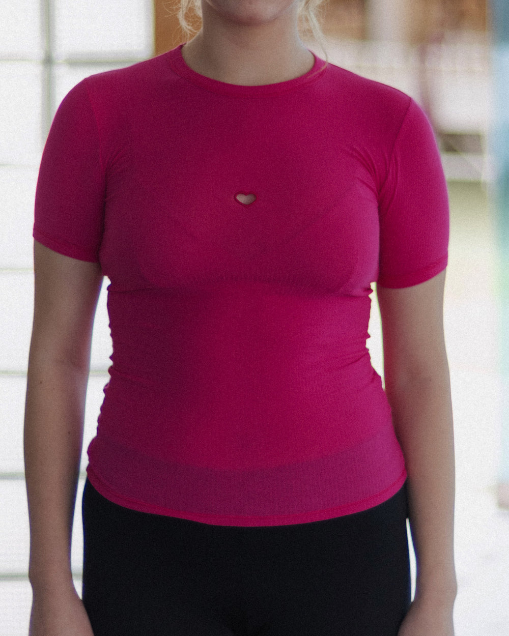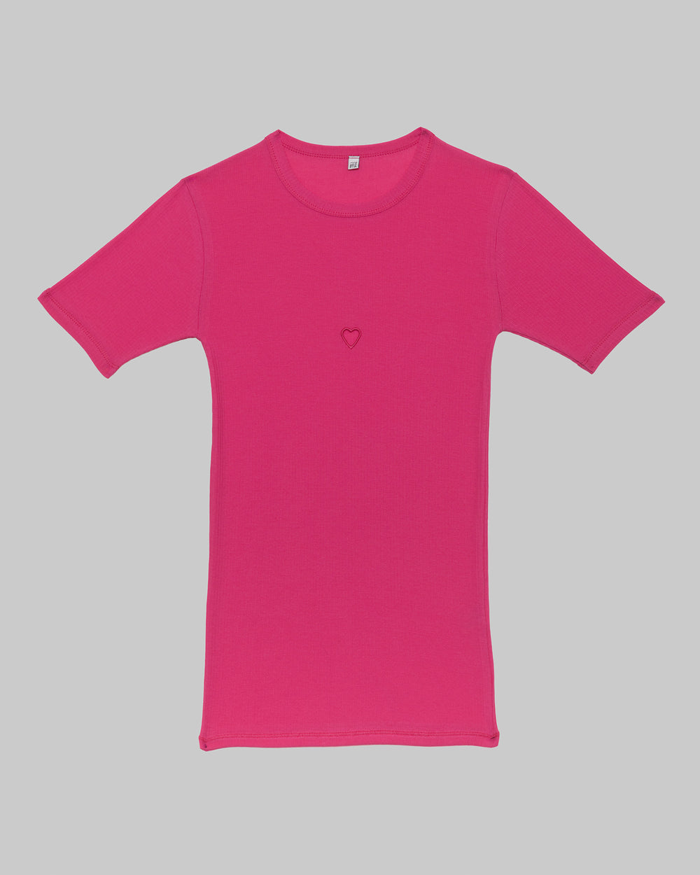 BASERANGE French Organic Cotton Cutout Heart-Shaped Short-Sleeve T-Shirt BAS-TTHTS-CR-WI25-YORK PINK (TOHS TTHTS)