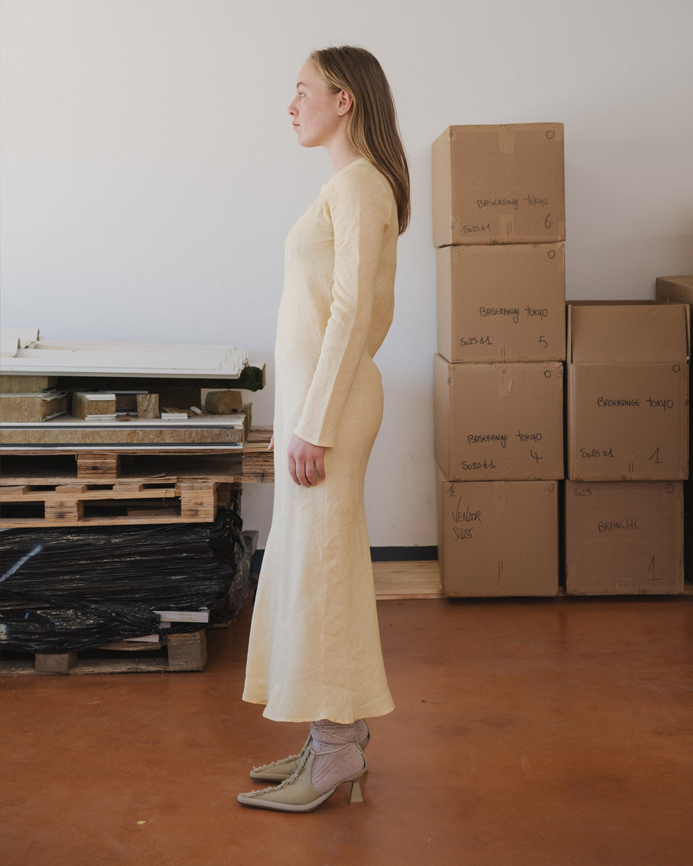 BASERANGE Linen and Cotton Long-Sleeve Dress, Made in France (BAS-DRDYL-FL-AU25-ANA YELLOW)