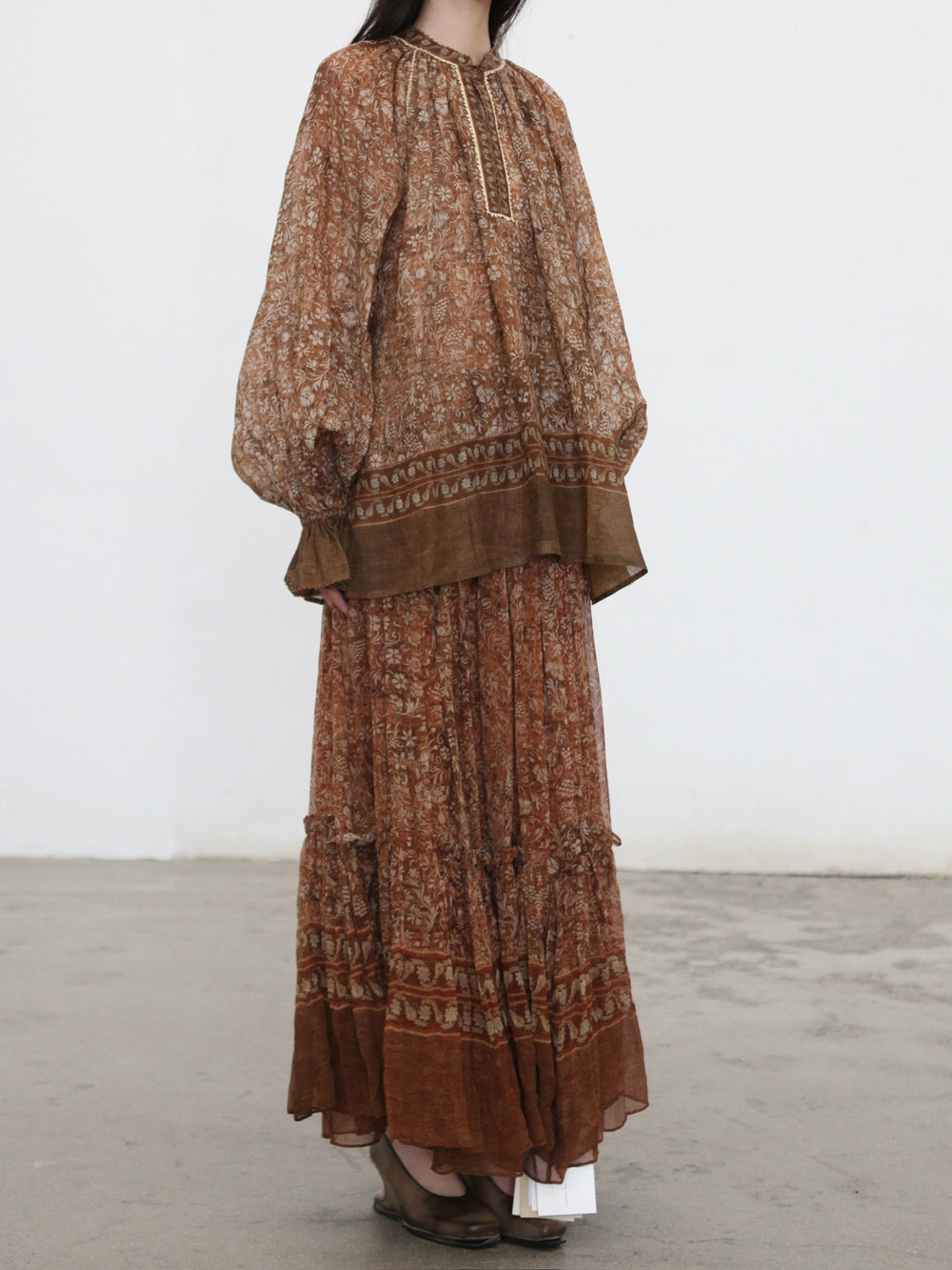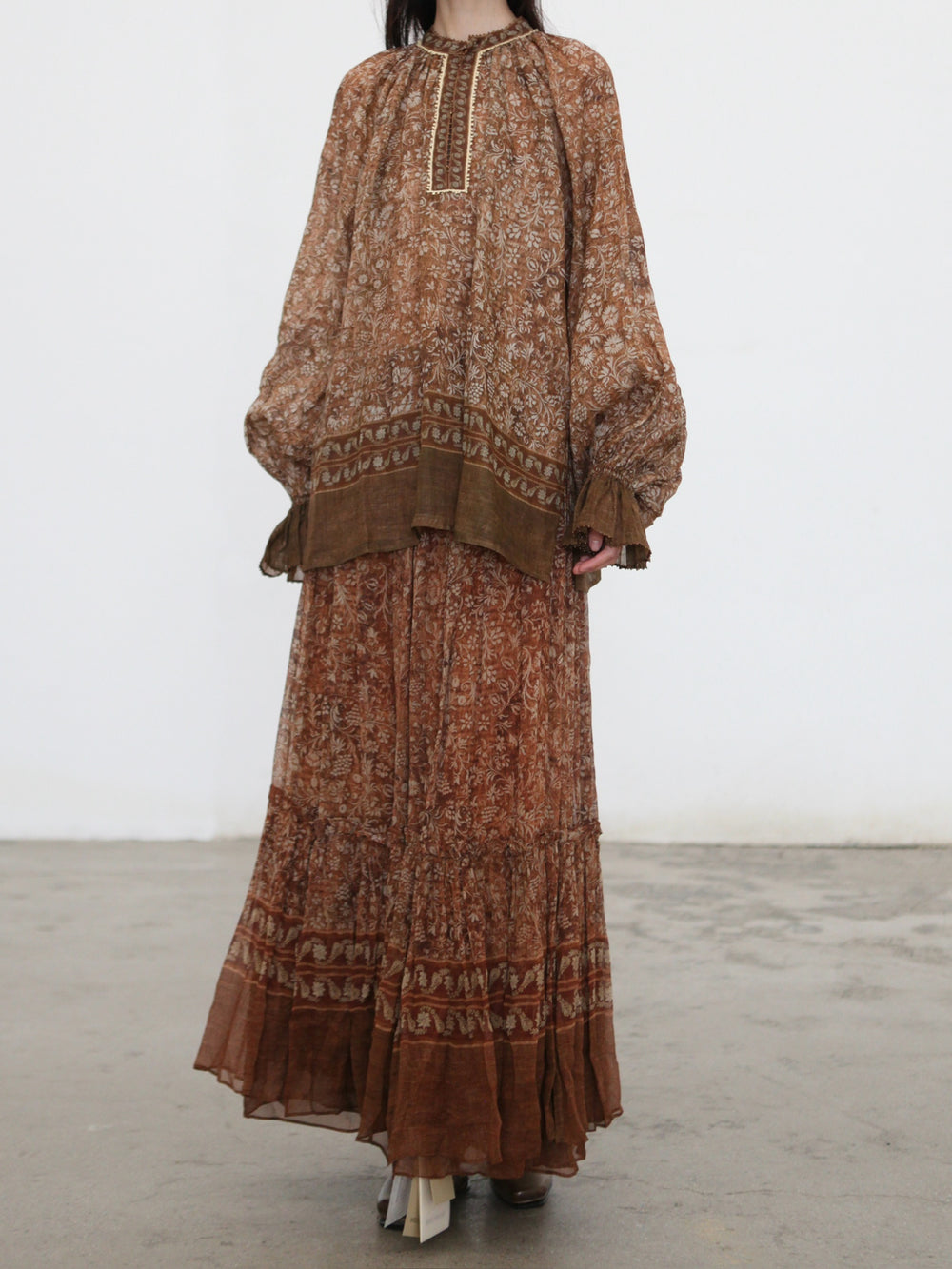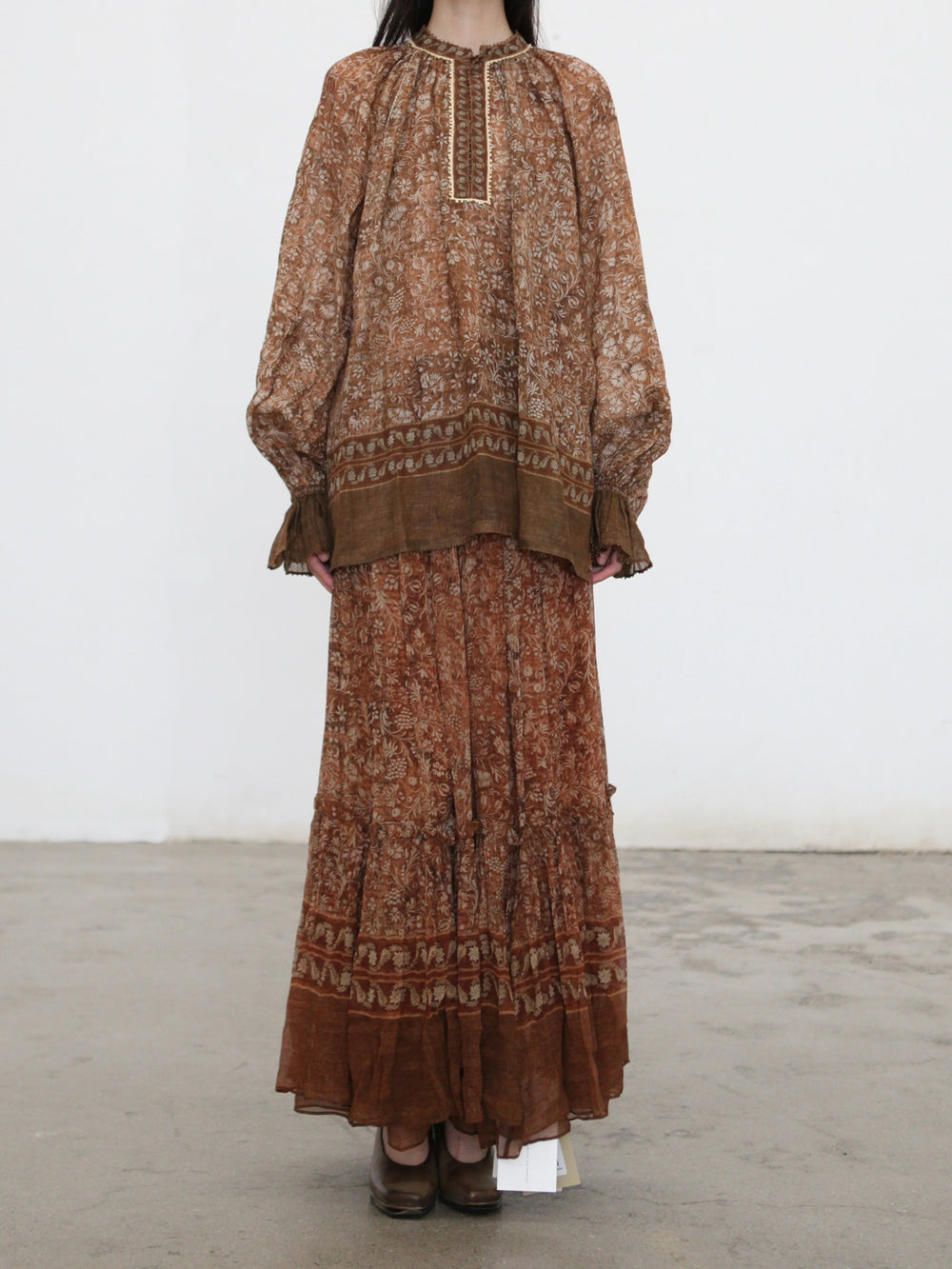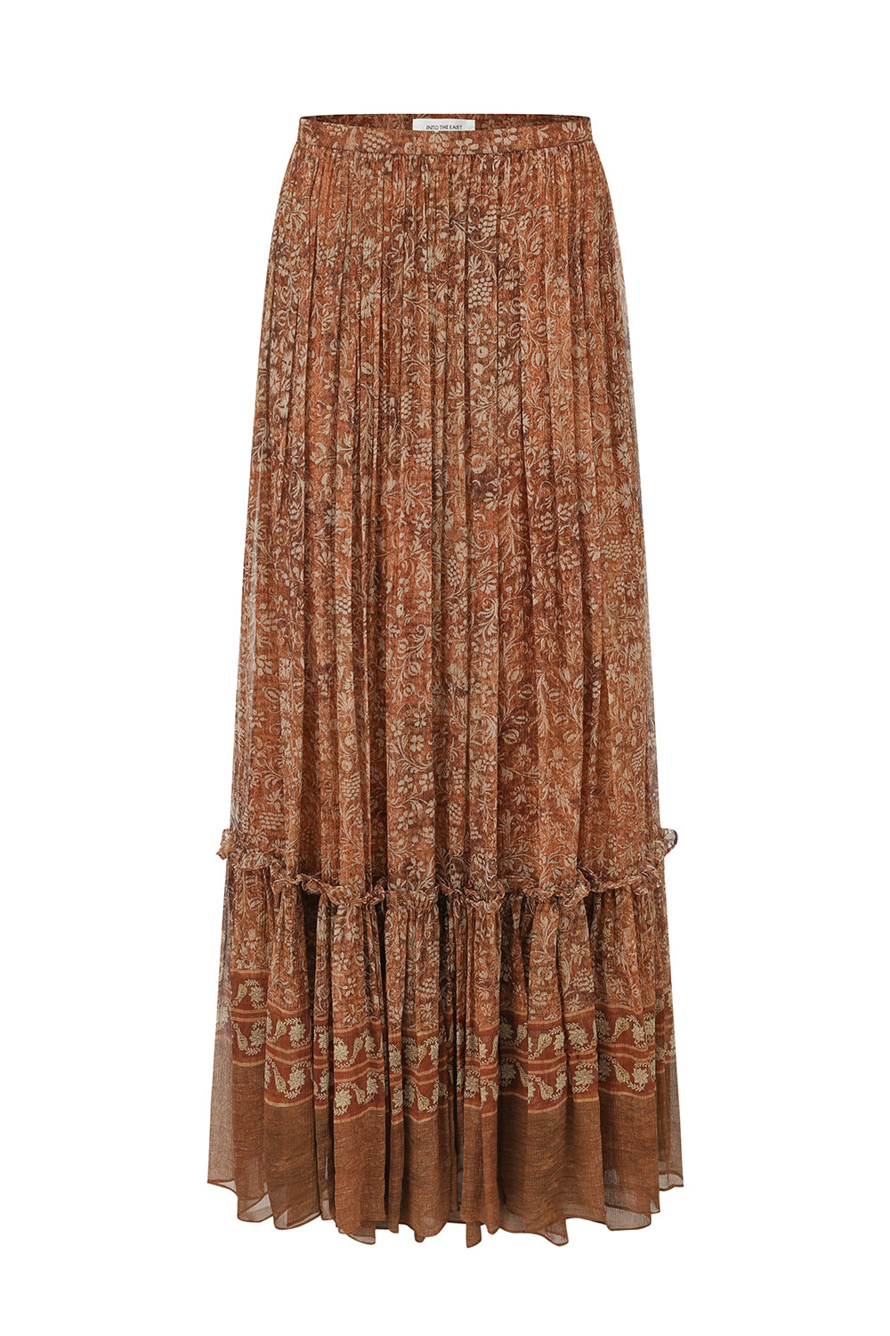 INTO THE EAST 2025 Autumn/Winter Brown Floral Silk Midi Skirt ITE-E1DGAW132TN21SK-HE Brown