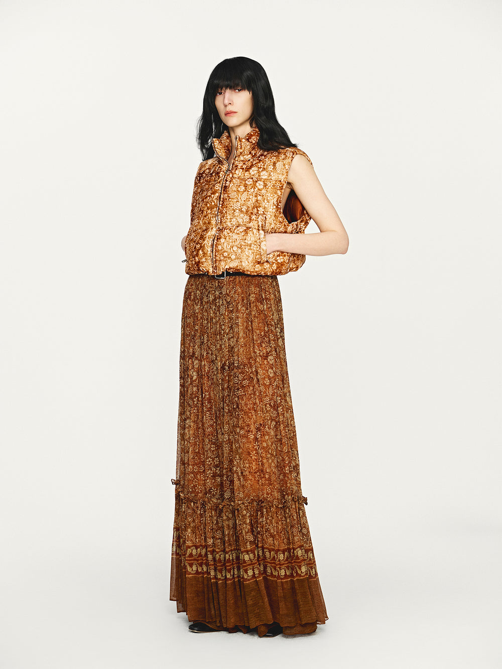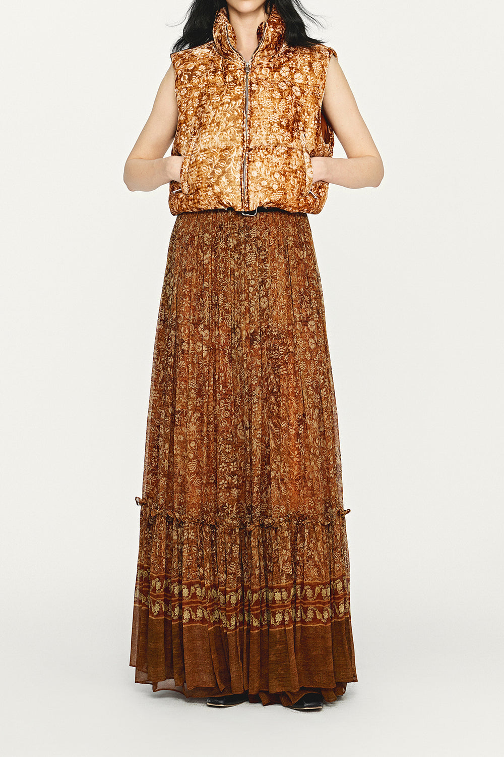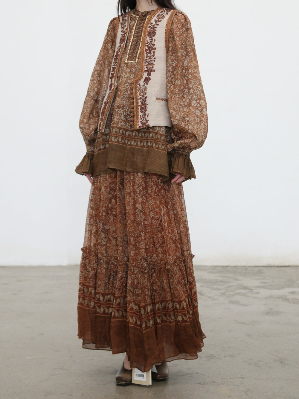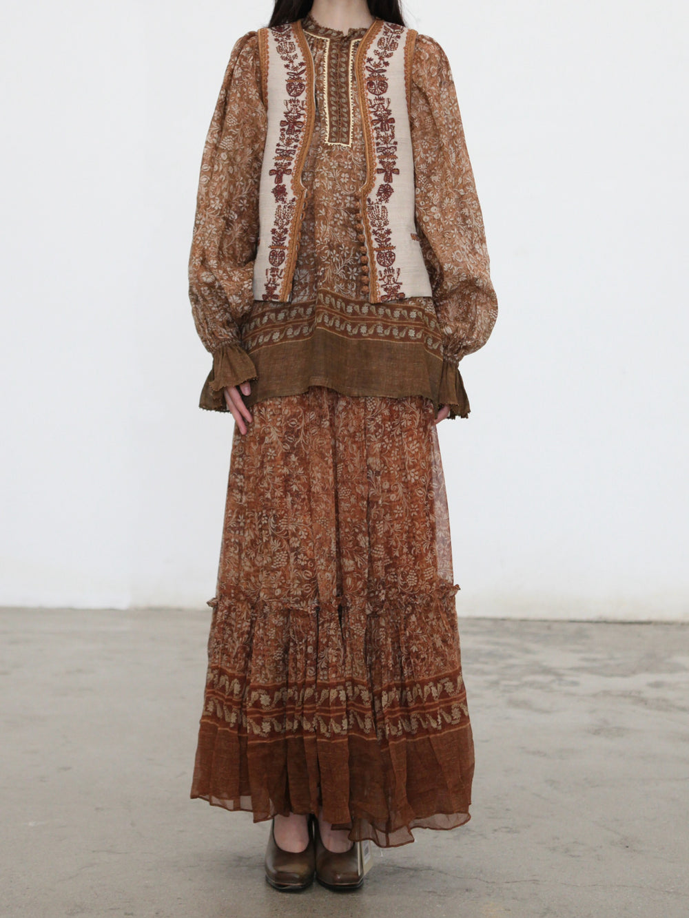 INTO THE EAST 2025 Autumn/Winter Brown Floral Silk Midi Skirt ITE-E1DGAW132TN21SK-HE Brown