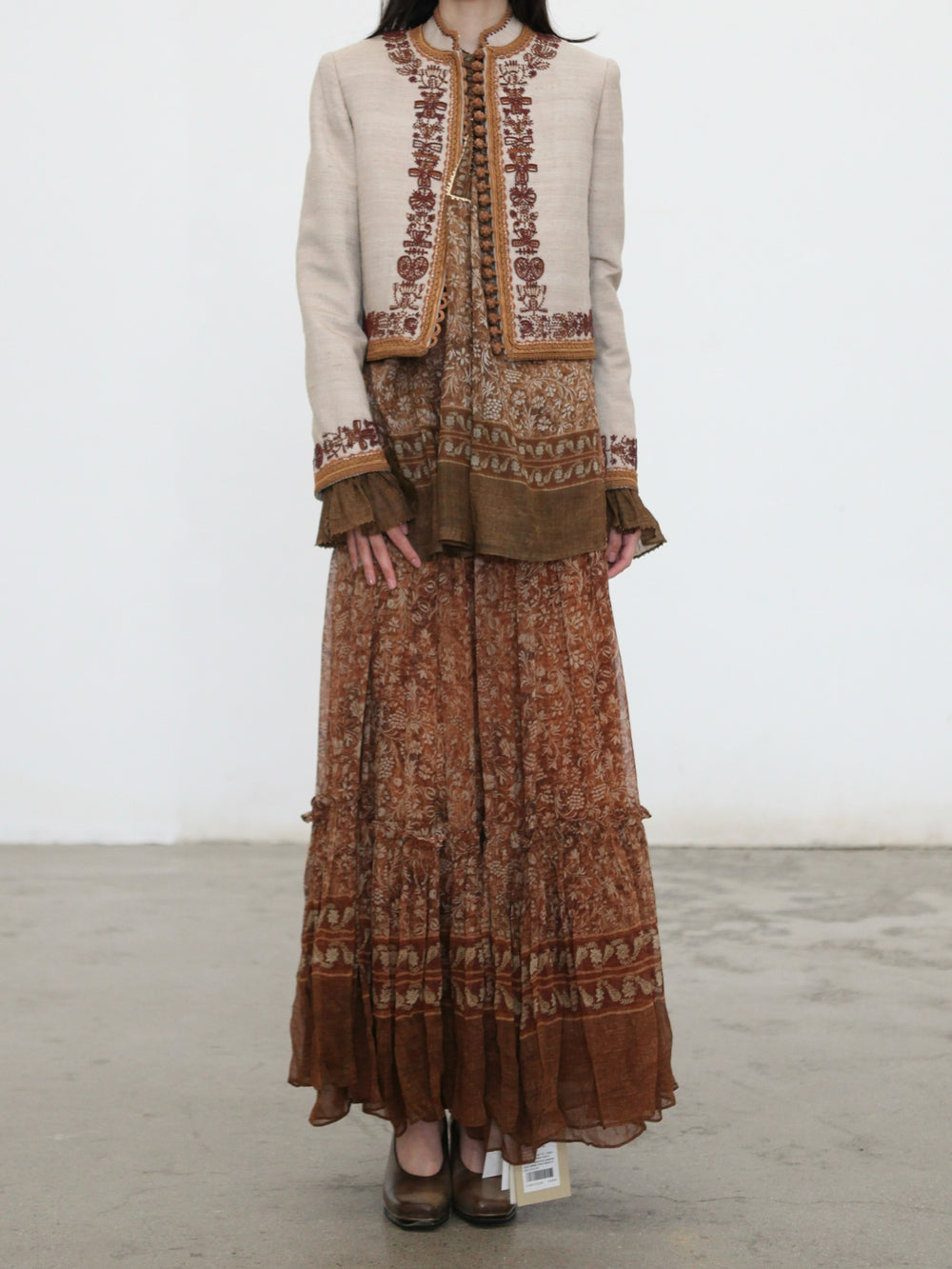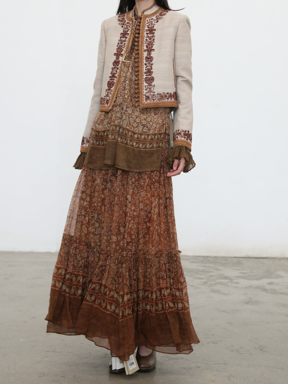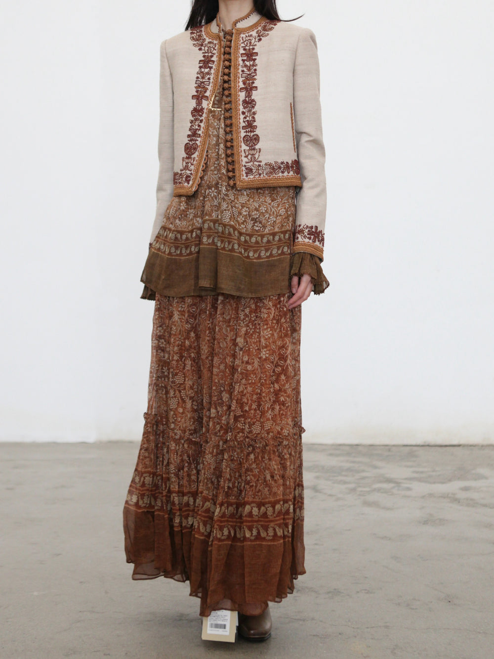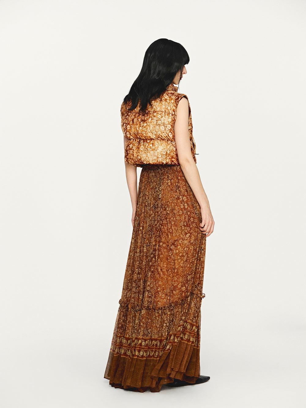 INTO THE EAST 2025 Autumn/Winter Brown Floral Silk Midi Skirt ITE-E1DGAW132TN21SK-HE Brown