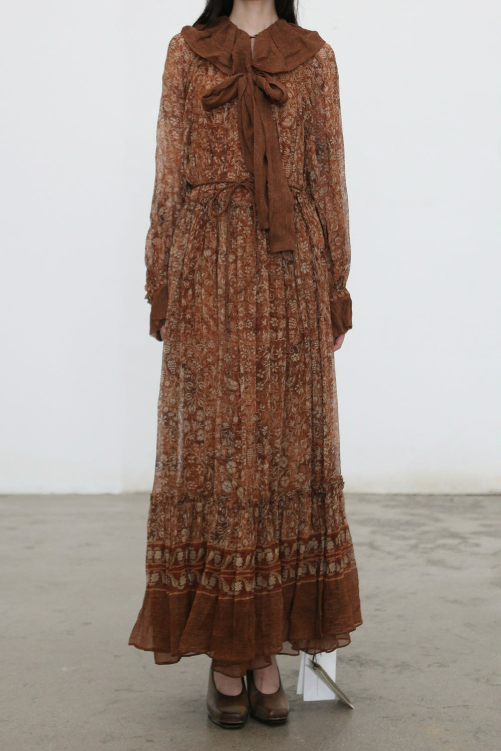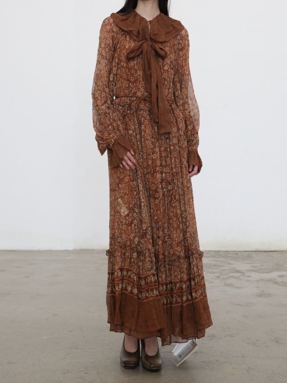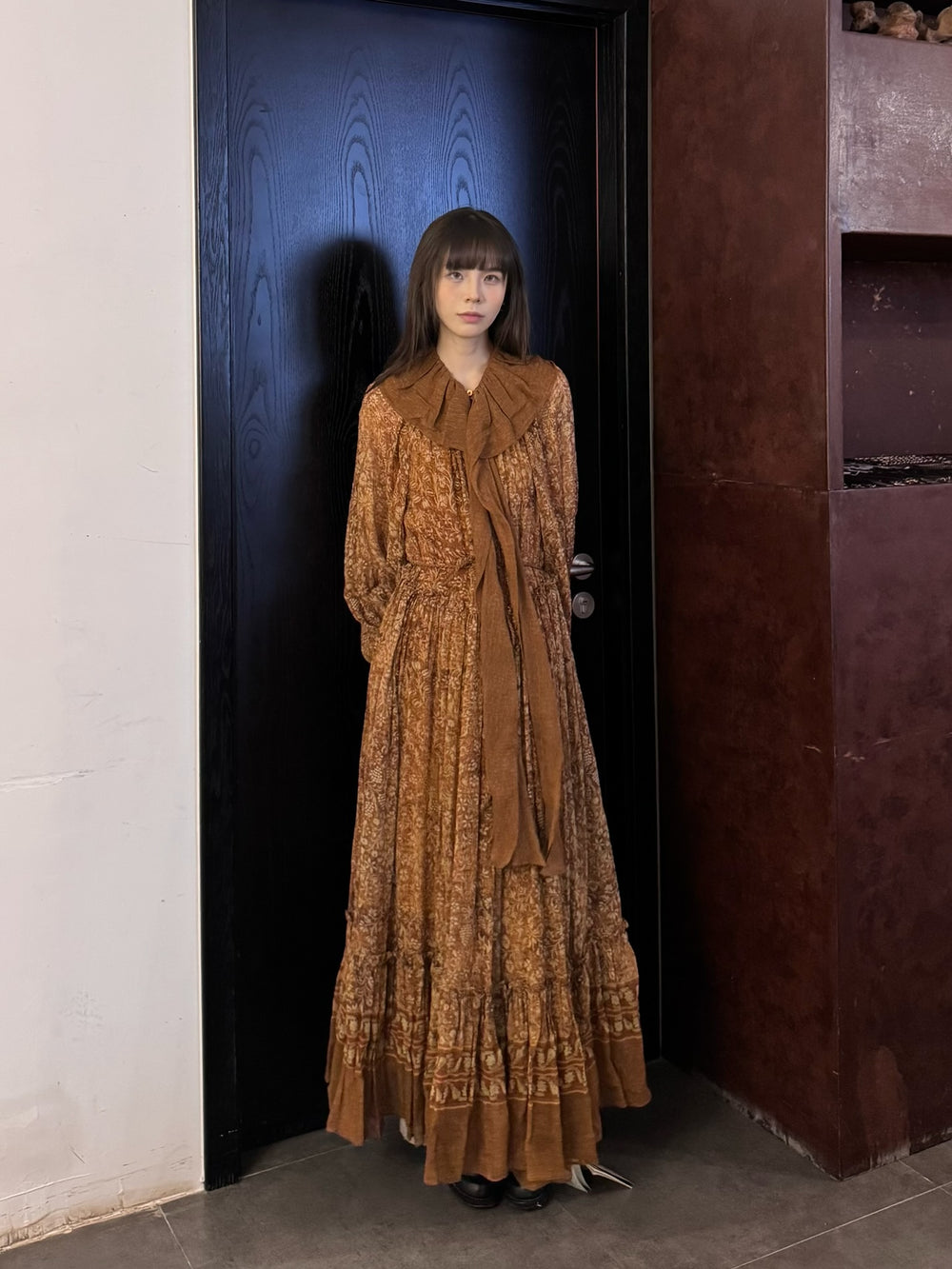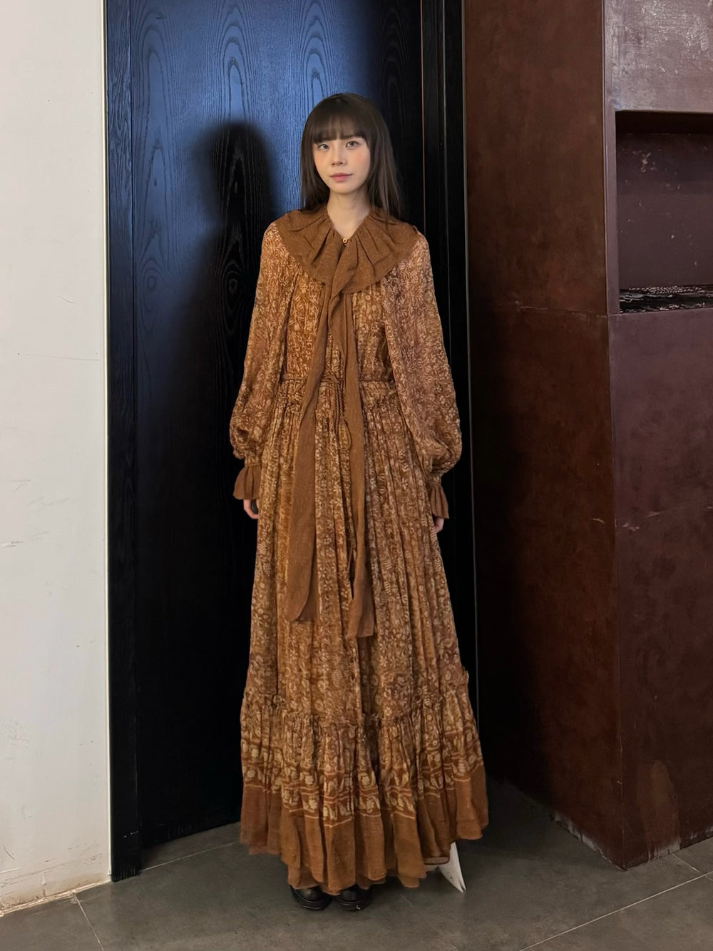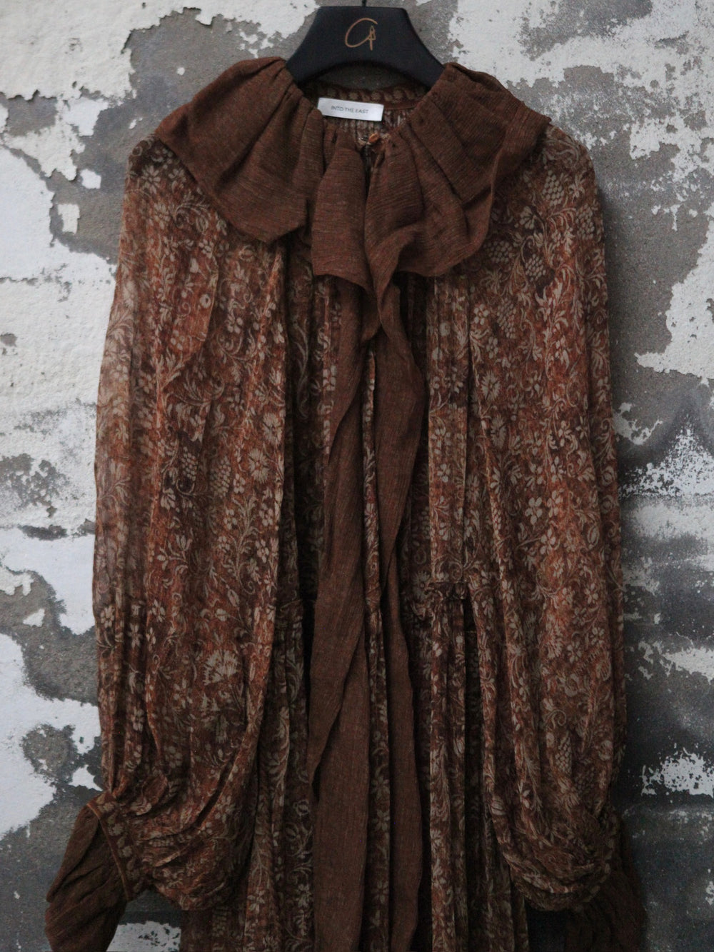 INTO THE EAST25 Autumn/Winter Brown Floral Ruffle Collar Silk Dress/Beaded Drawstring Vest ITE-E1DGAW133TN21DS-HE Dress