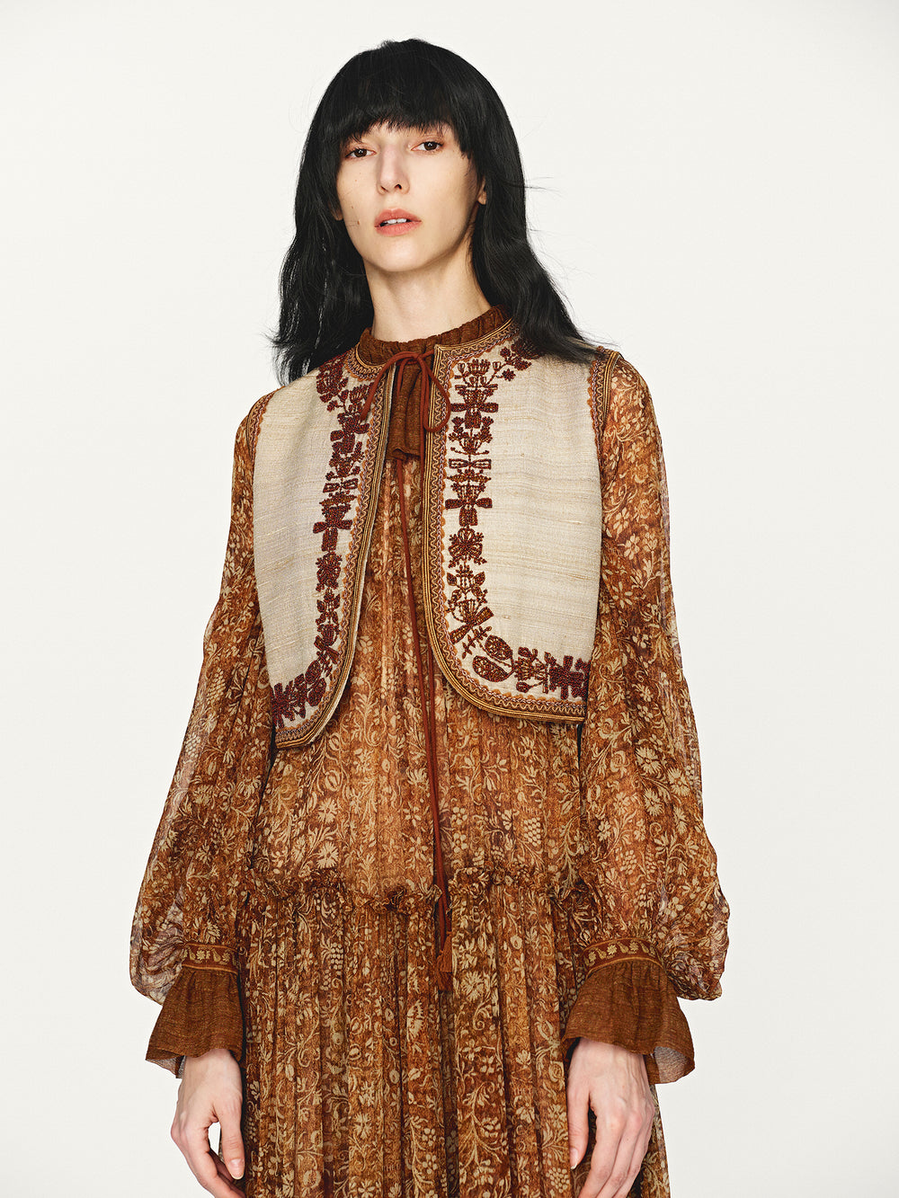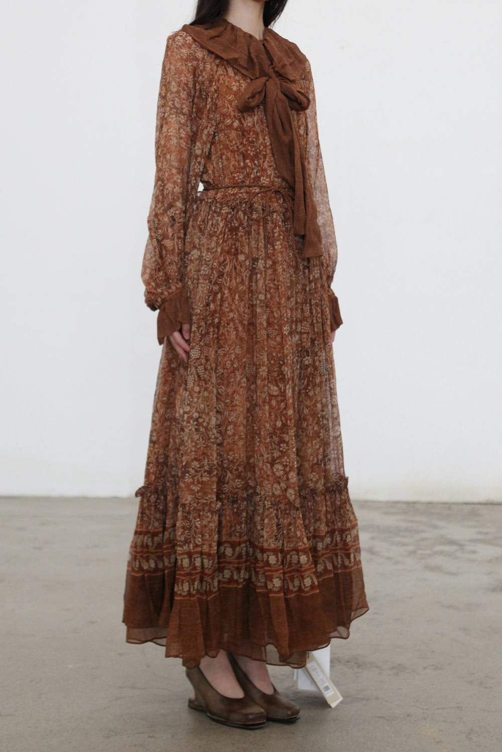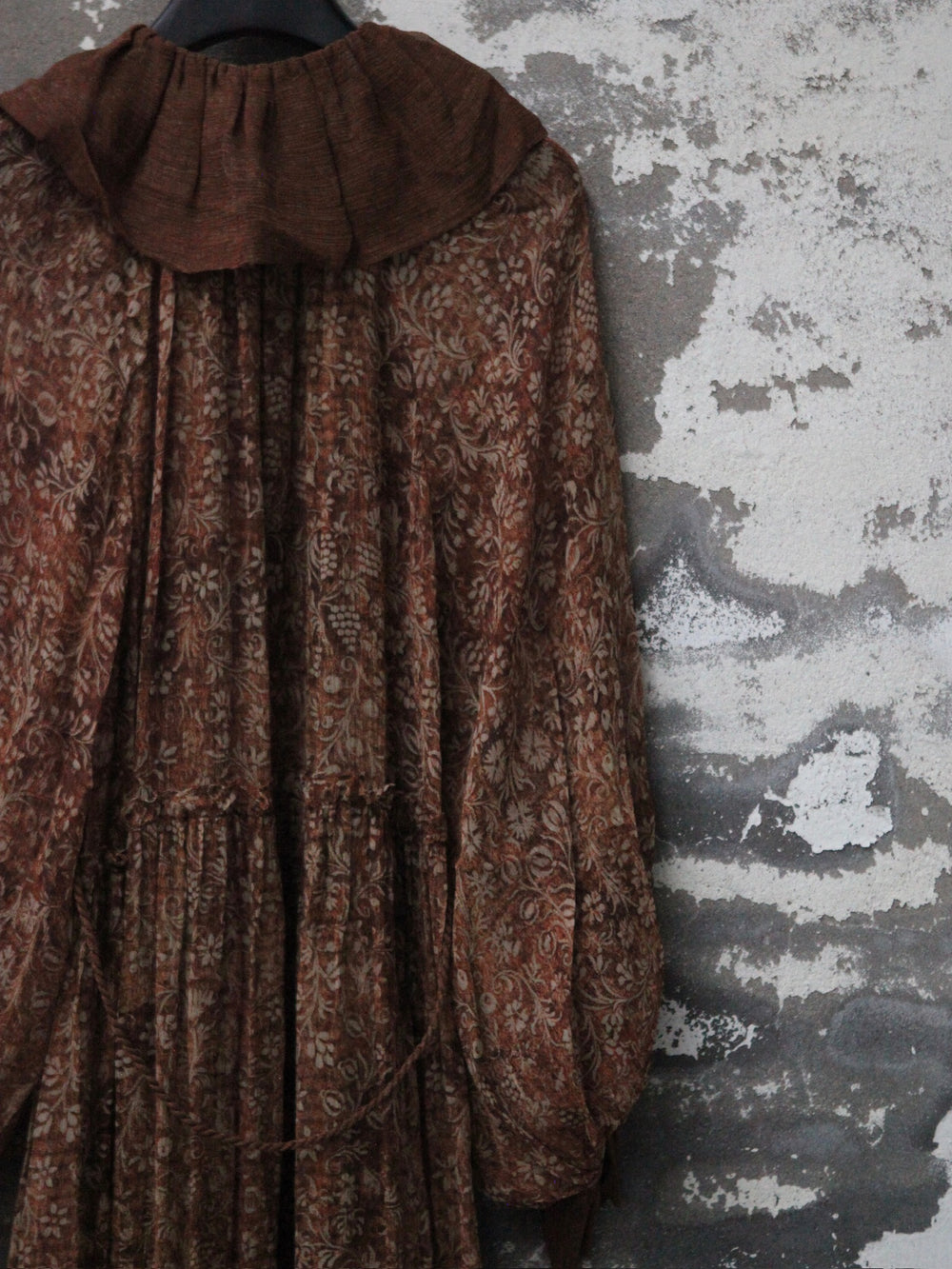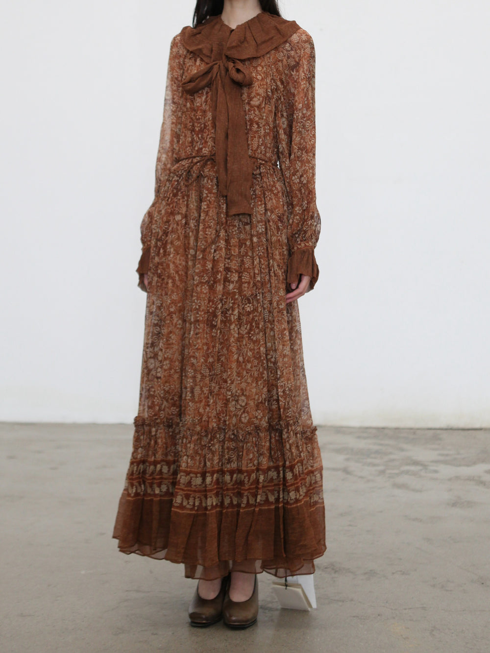 INTO THE EAST25 Autumn/Winter Brown Floral Ruffle Collar Silk Dress/Beaded Drawstring Vest ITE-E1DGAW133TN21DS-HE Dress