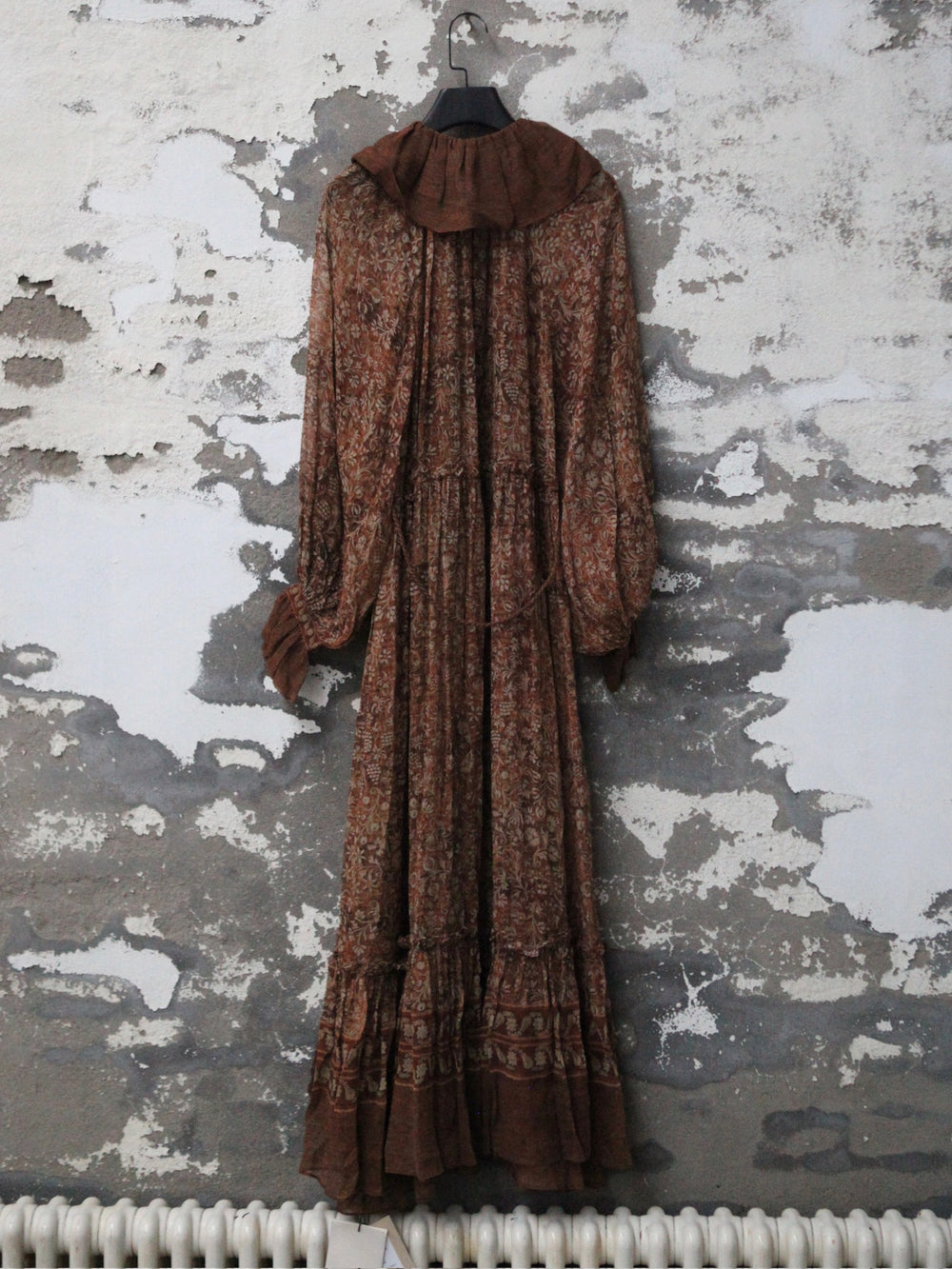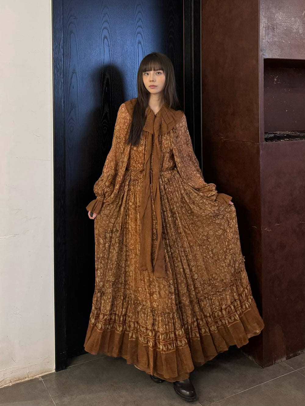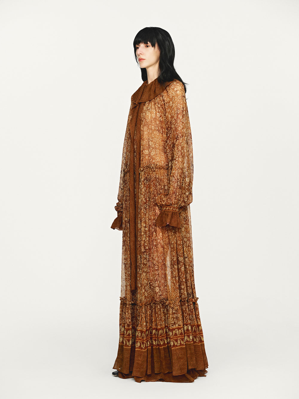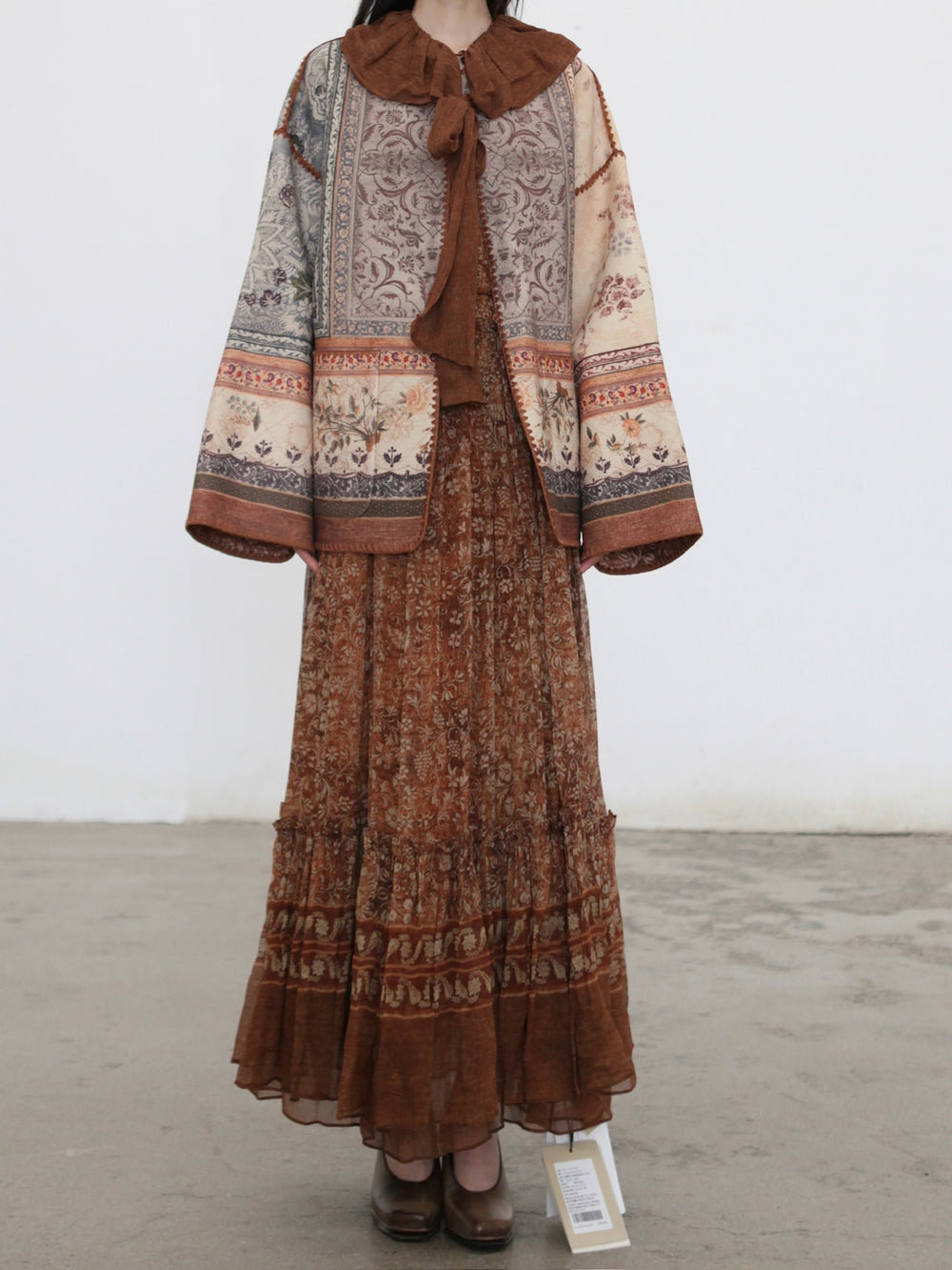 INTO THE EAST25 Autumn/Winter Brown Floral Ruffle Collar Silk Dress/Beaded Drawstring Vest ITE-E1DGAW133TN21DS-HE Dress