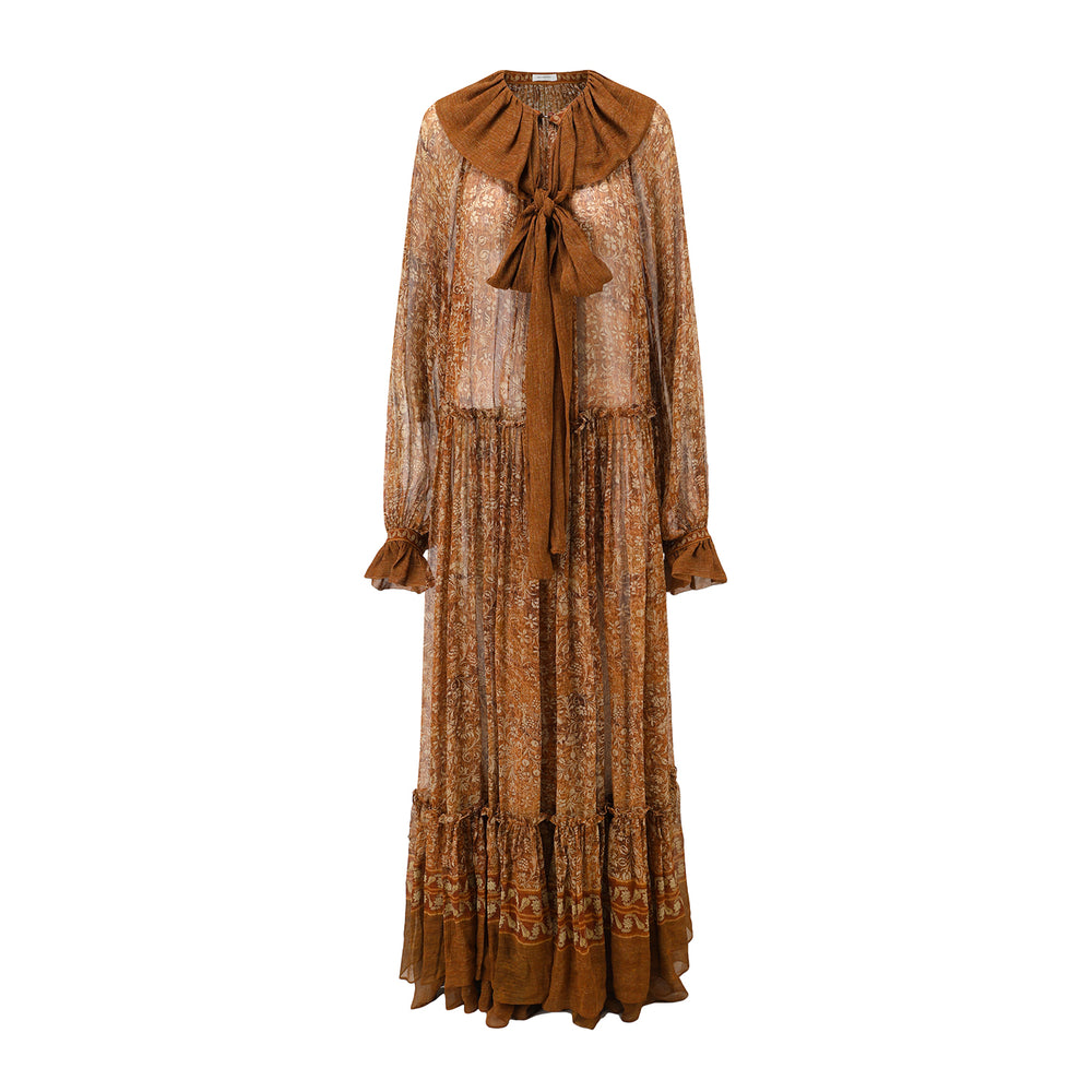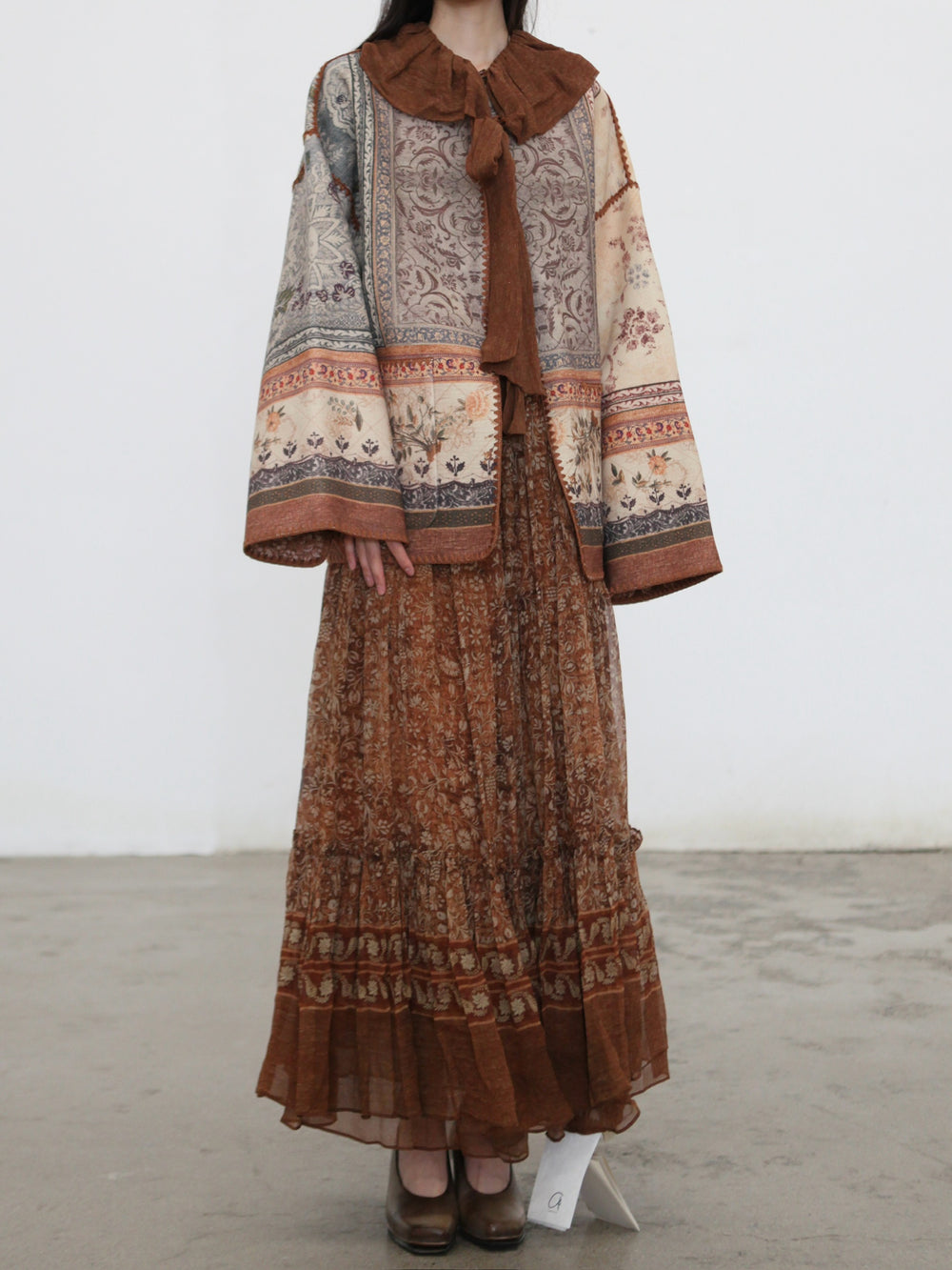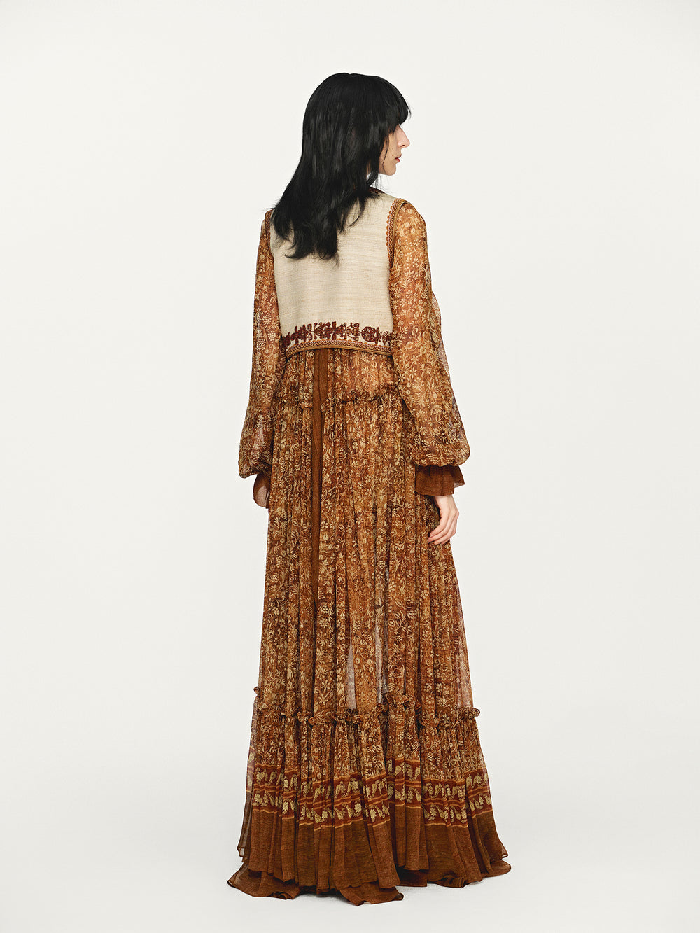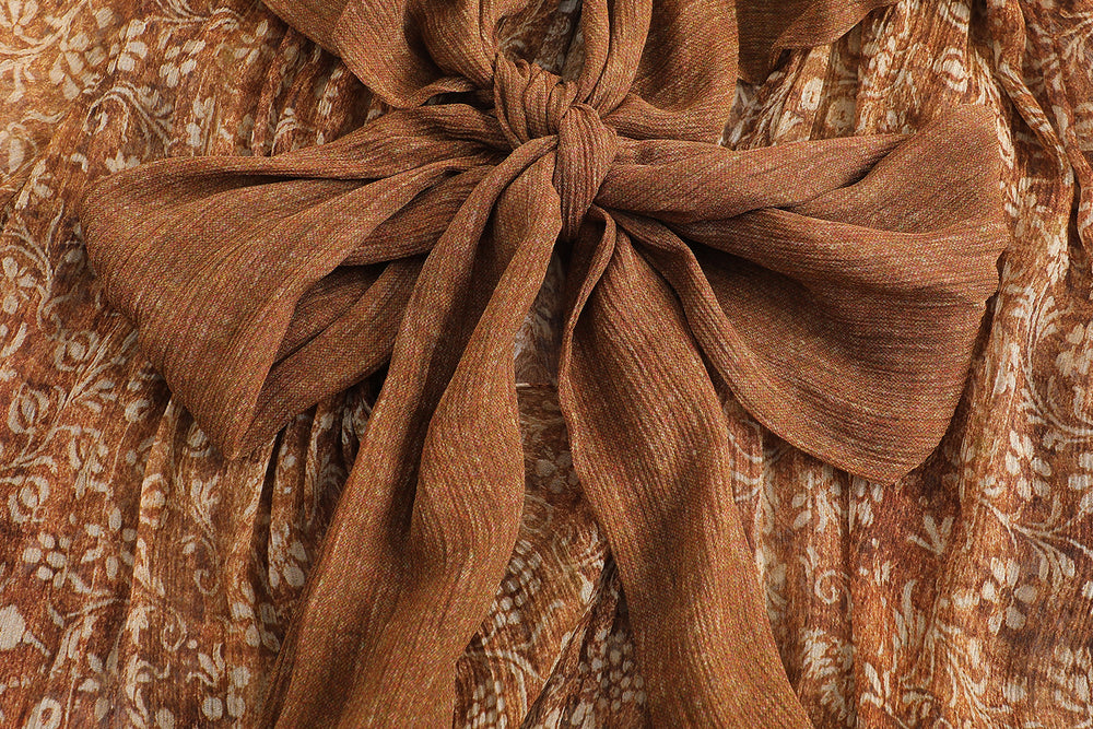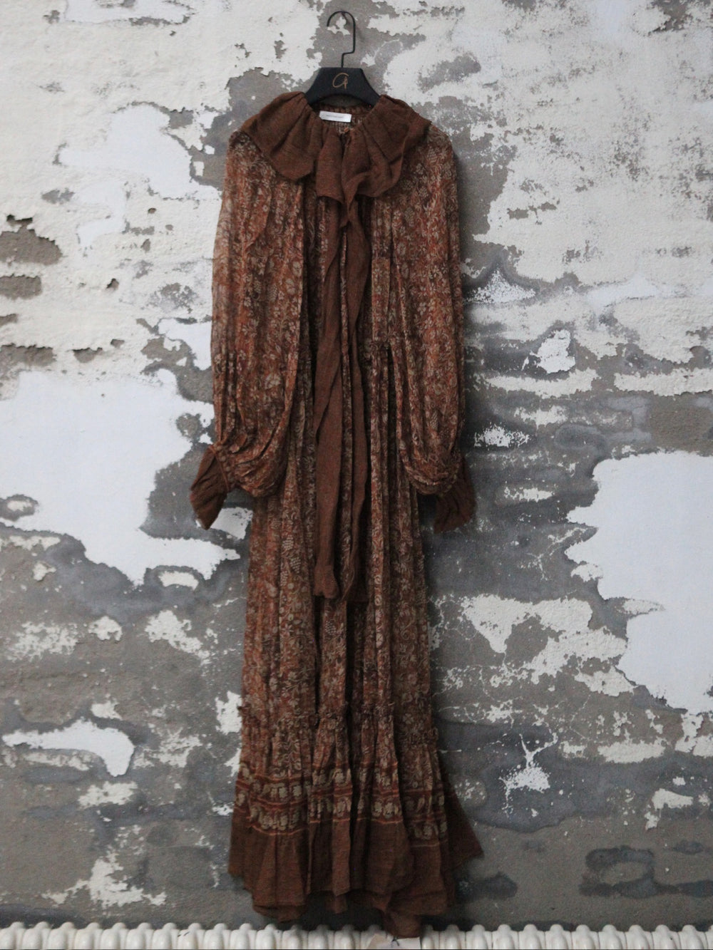 INTO THE EAST25 Autumn/Winter Brown Floral Ruffle Collar Silk Dress/Beaded Drawstring Vest ITE-E1DGAW133TN21DS-HE Dress