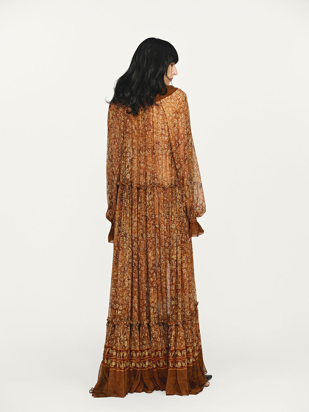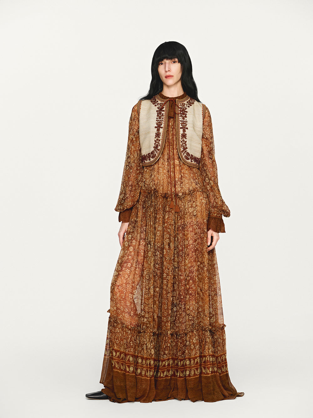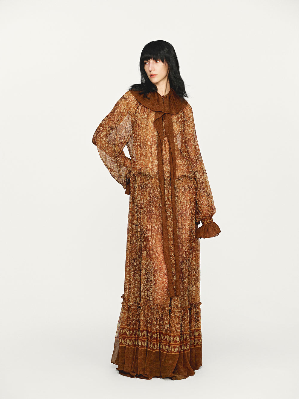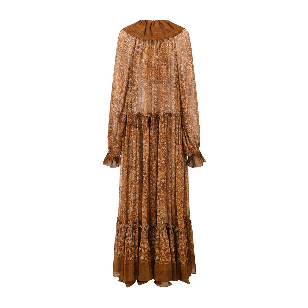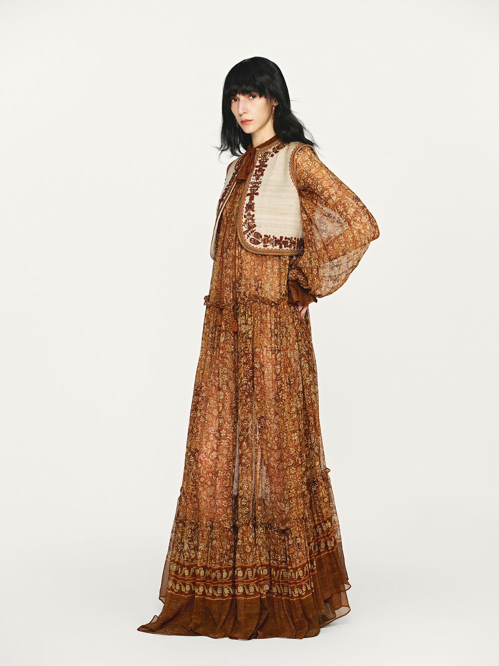 INTO THE EAST25 Autumn/Winter Brown Floral Ruffle Collar Silk Dress/Beaded Drawstring Vest ITE-E1DGAW133TN21DS-HE Dress