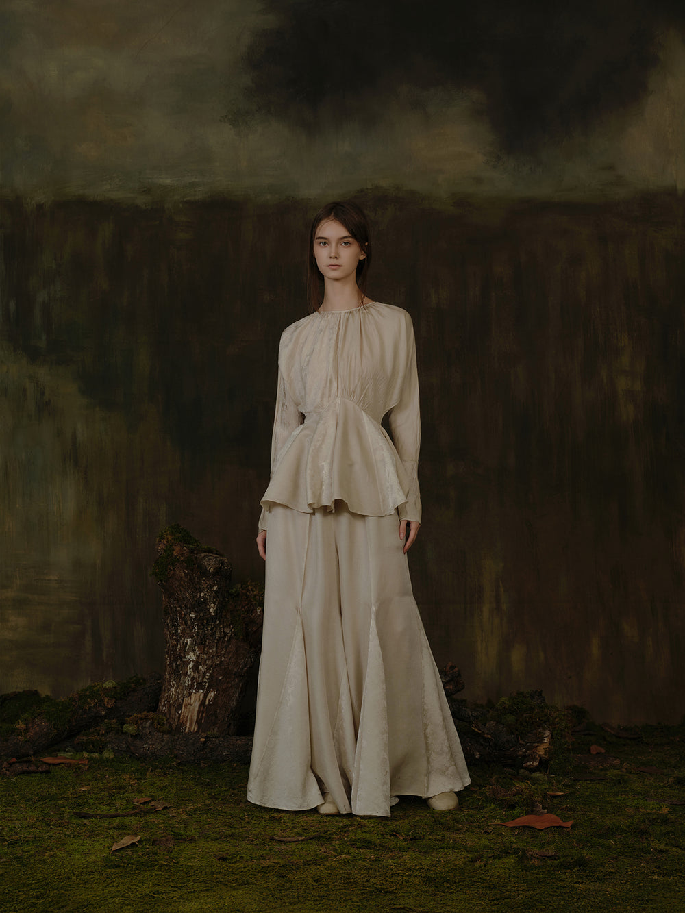Mutedance 25 Autumn/Winter Elastic Lace Waist Casual Pants Series Flower Dye Handmade MD-MD25FW101-beige