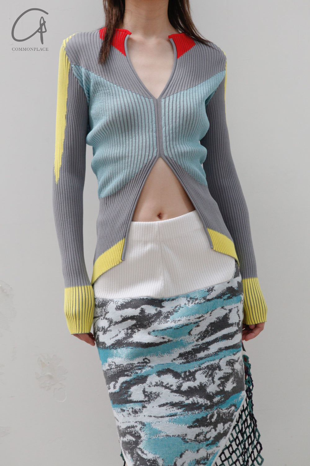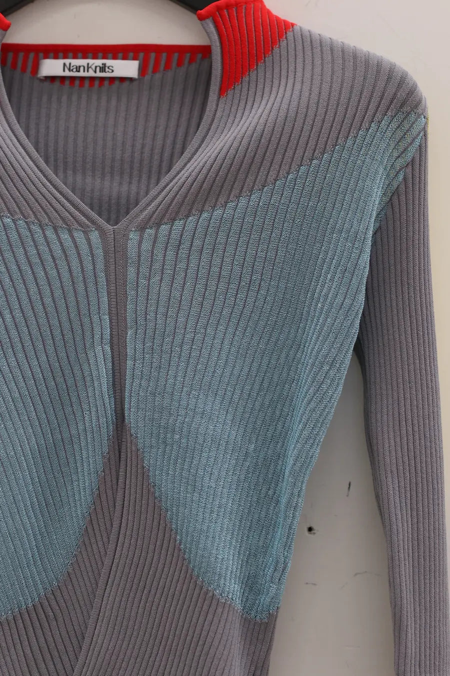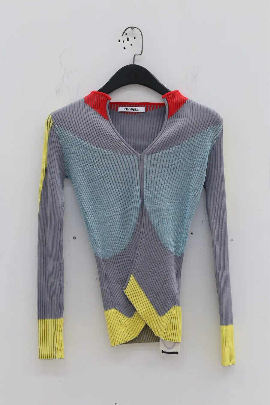 NAN KNITS color block pitted sweater 22011022 GRA gray