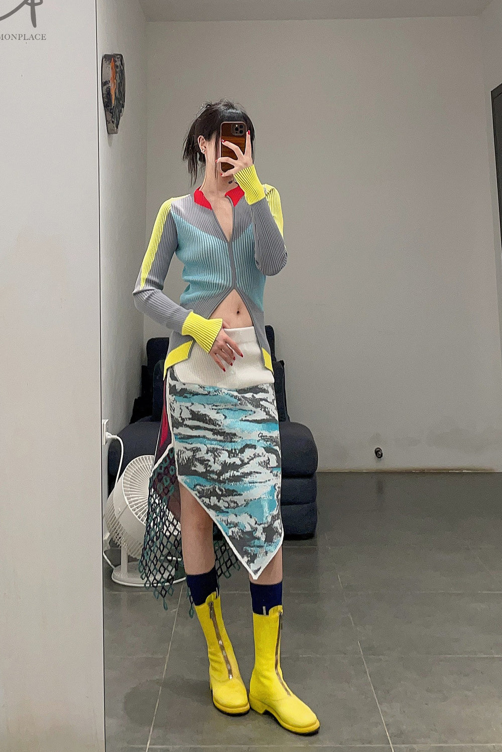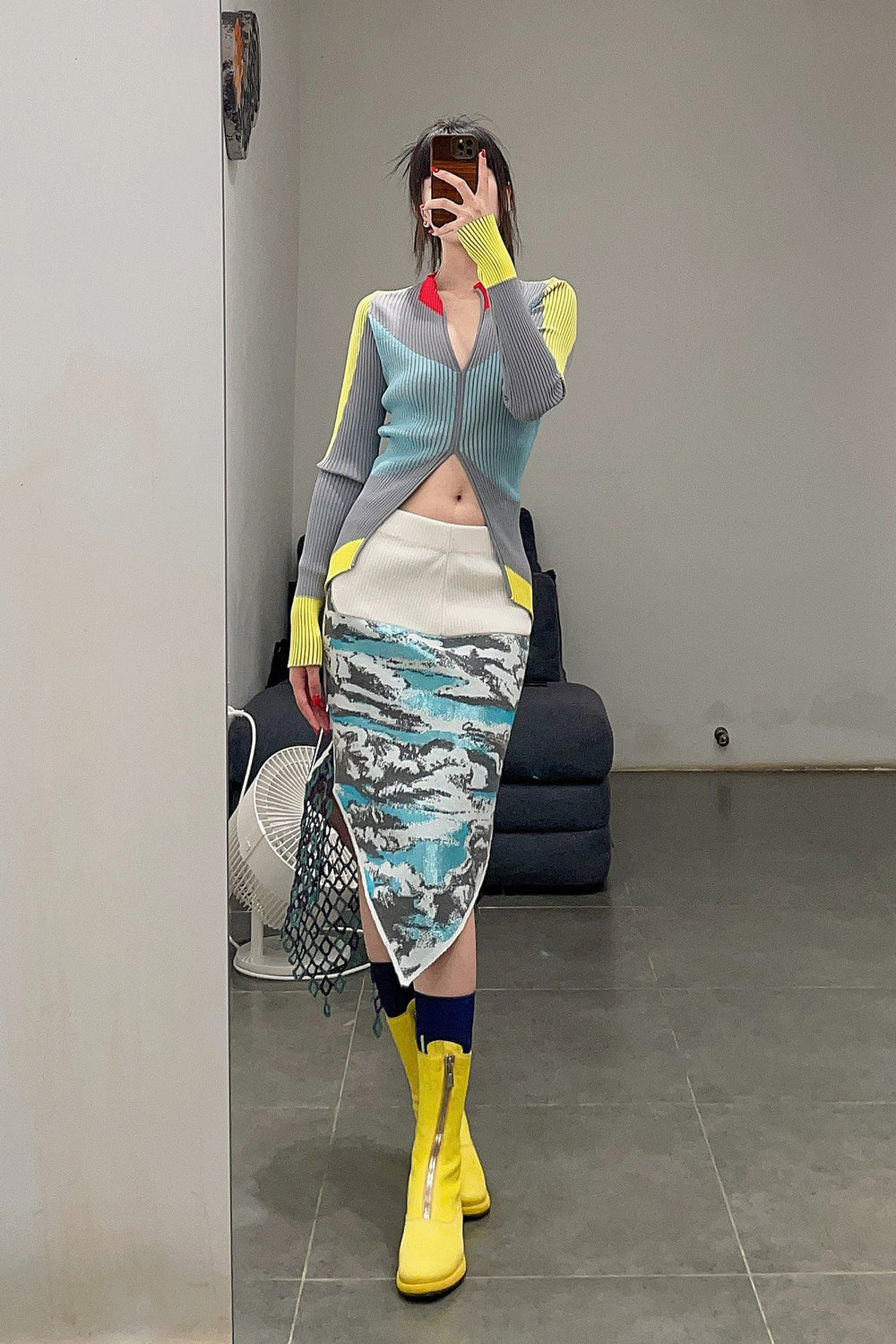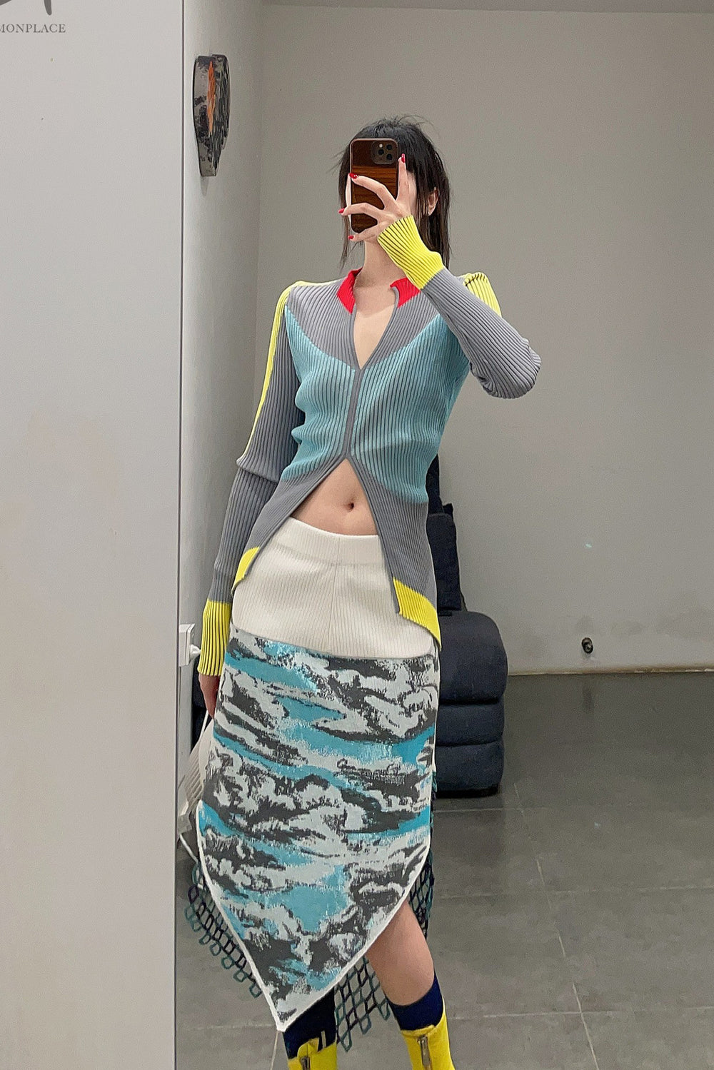 NAN KNITS color block pitted sweater 22011022 GRA gray