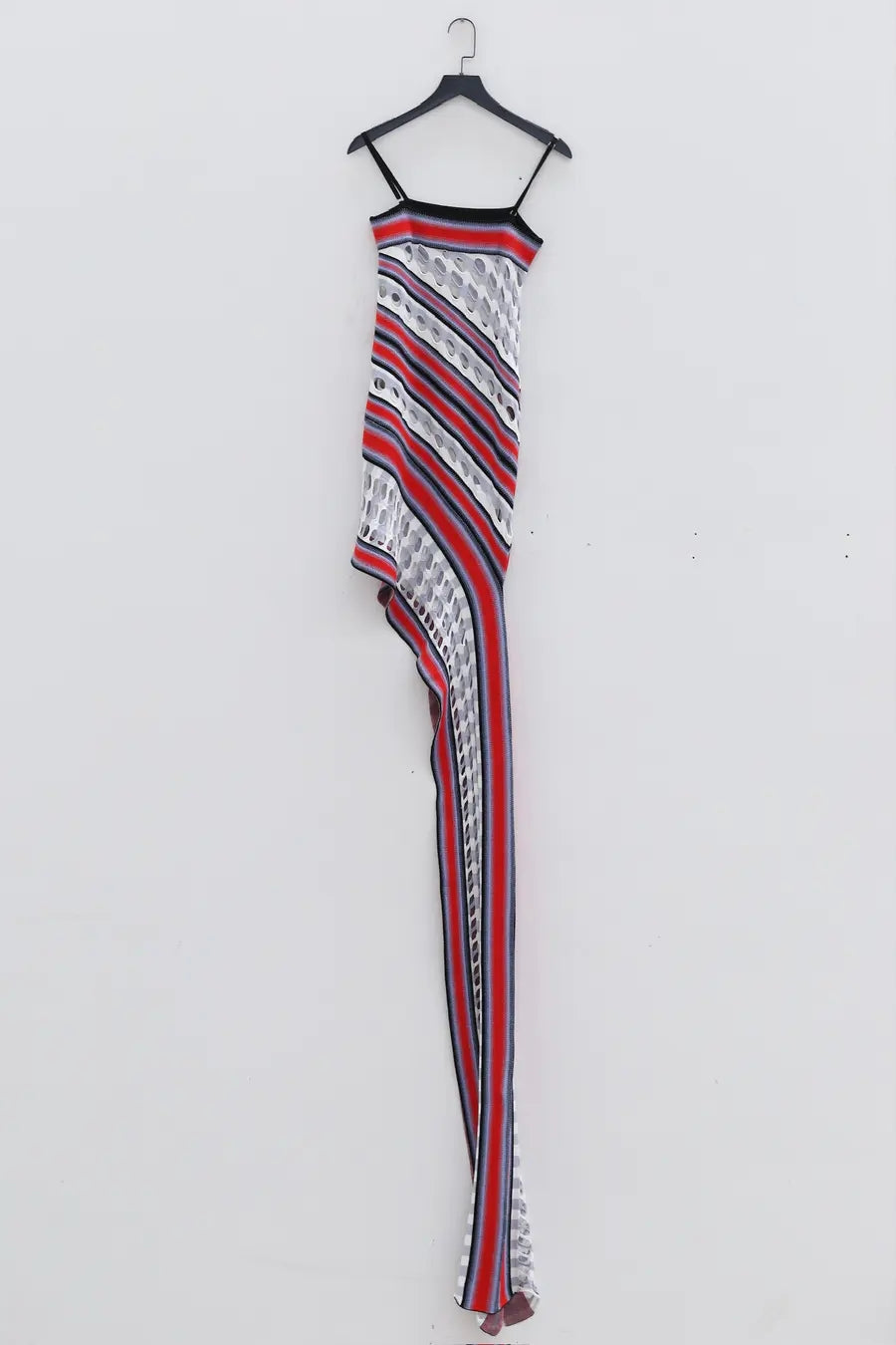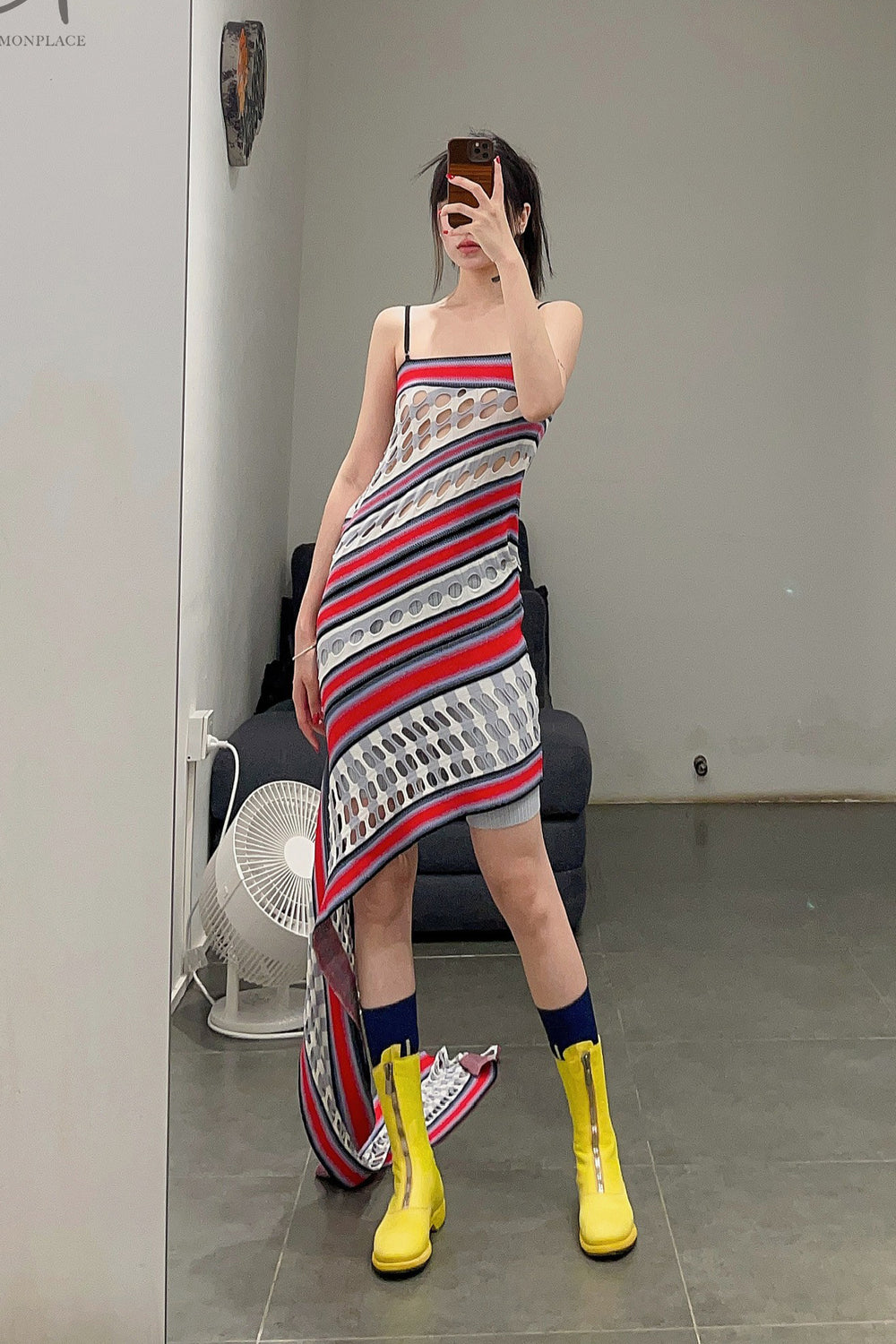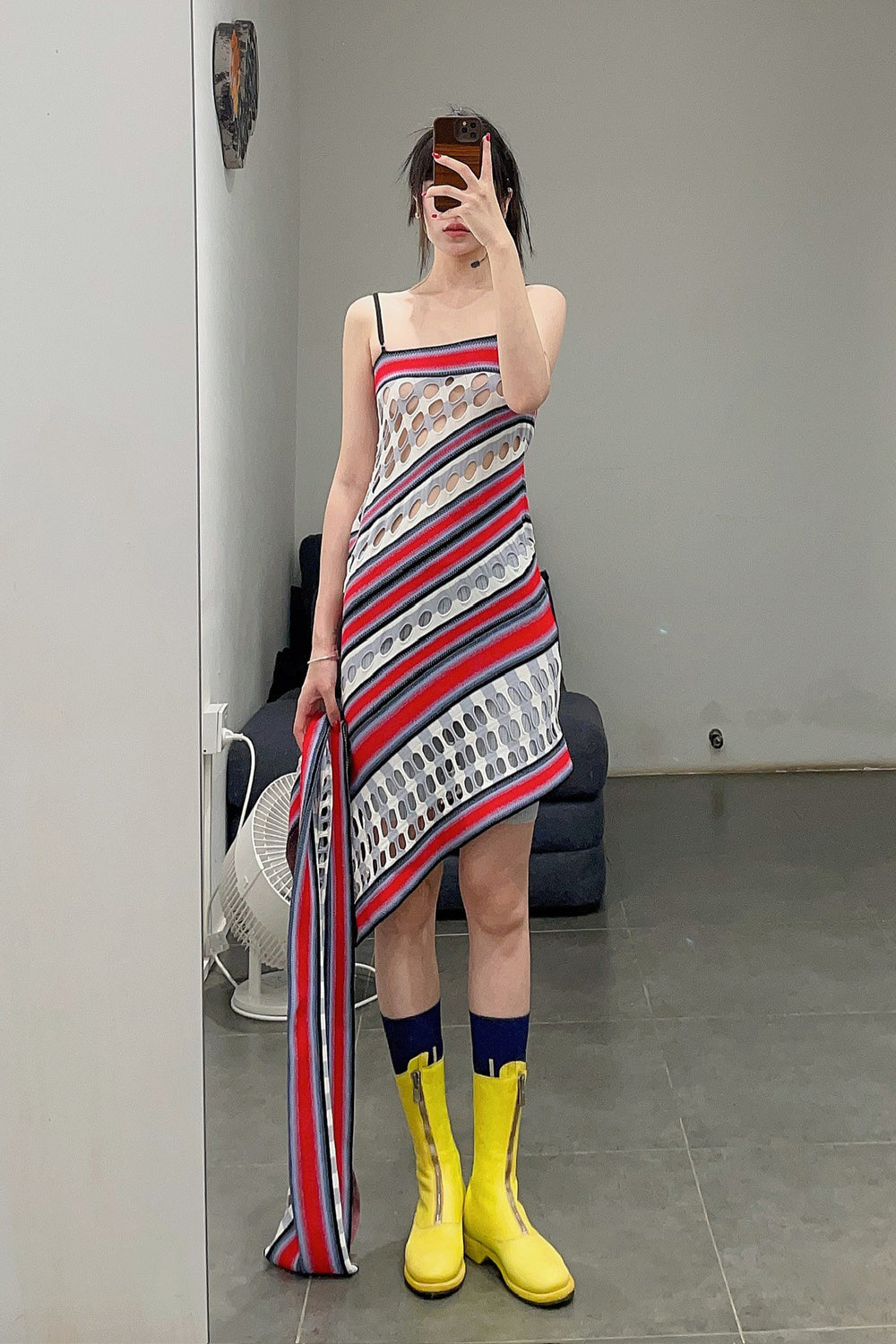 NAN KNITS Gradient Stripe Eyelet Slip Dress 22051696