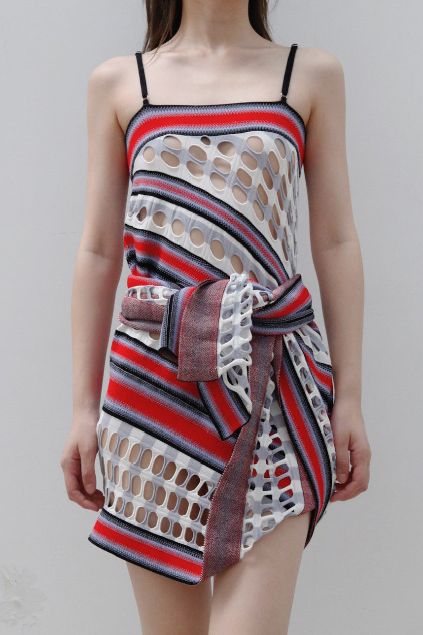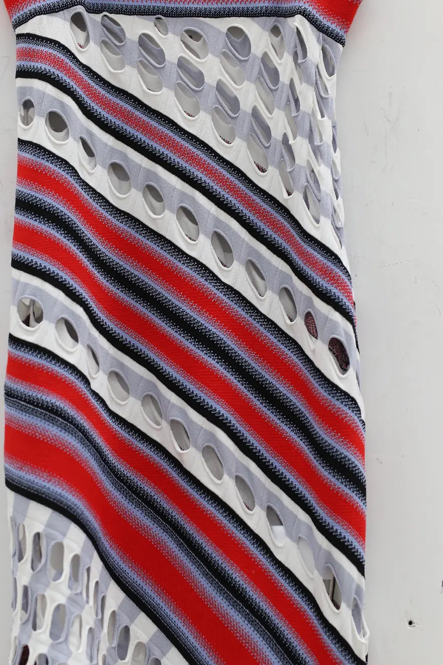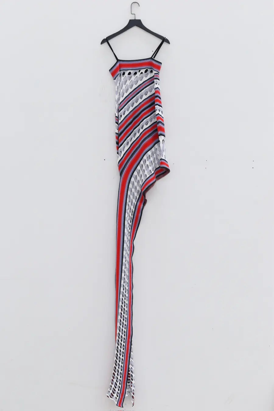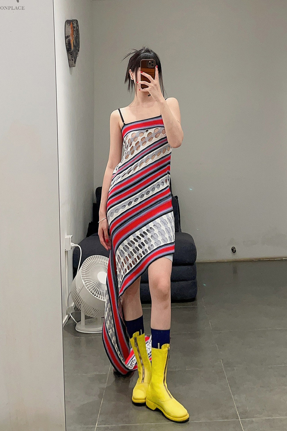 NAN KNITS Gradient Stripe Eyelet Slip Dress 22051696