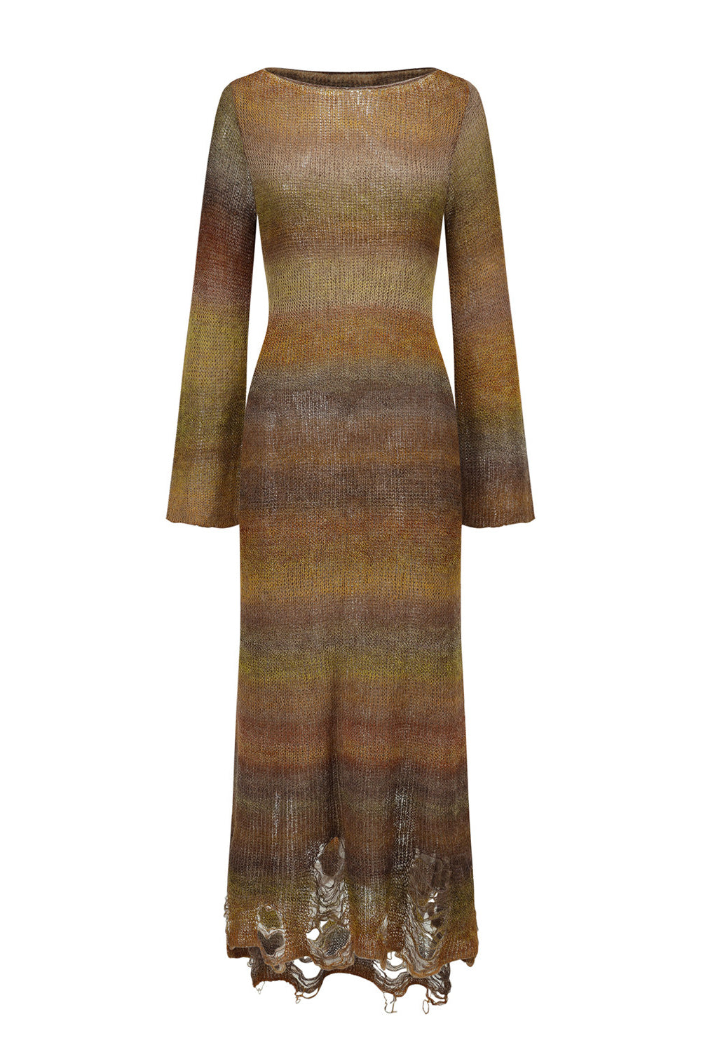 SWAYING 26 Early Spring Striped Gradient Floating Line Dress SW-SW26PS2L02C1-HL Yellow-Green