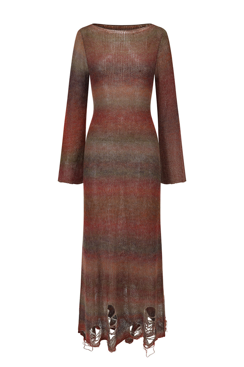 SWAYING 26 Early Spring Striped Gradient Floating Line Dress SW-SW26PS2L02C3-HONG Red