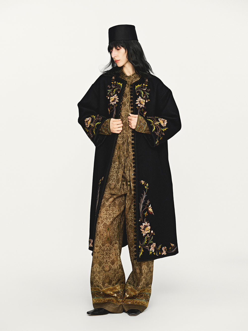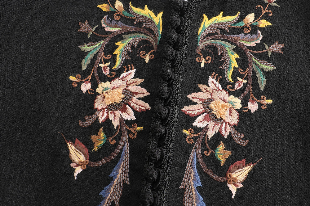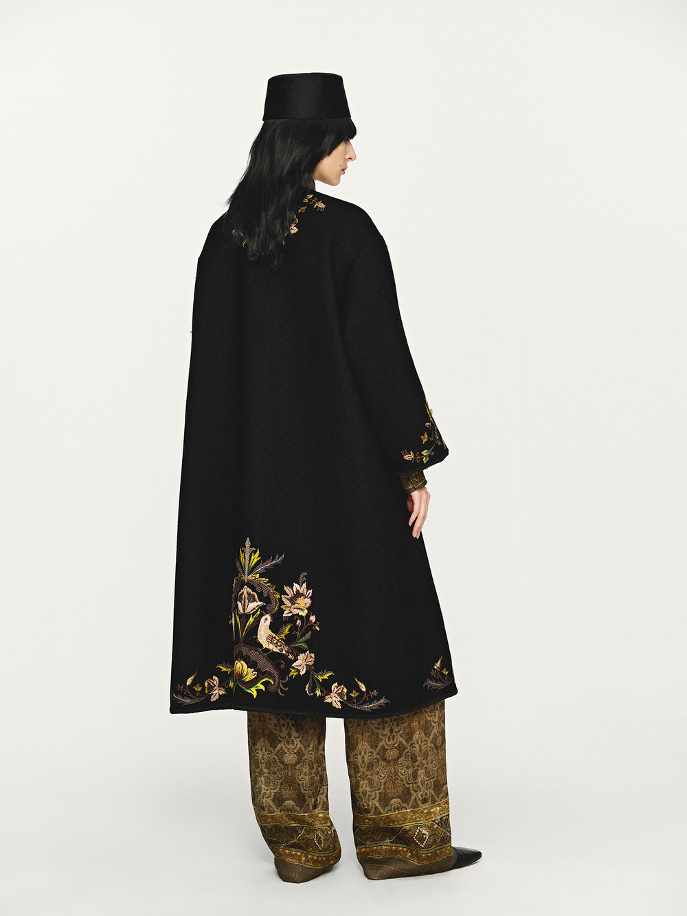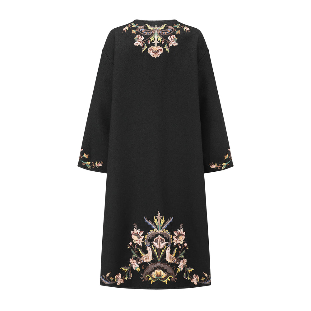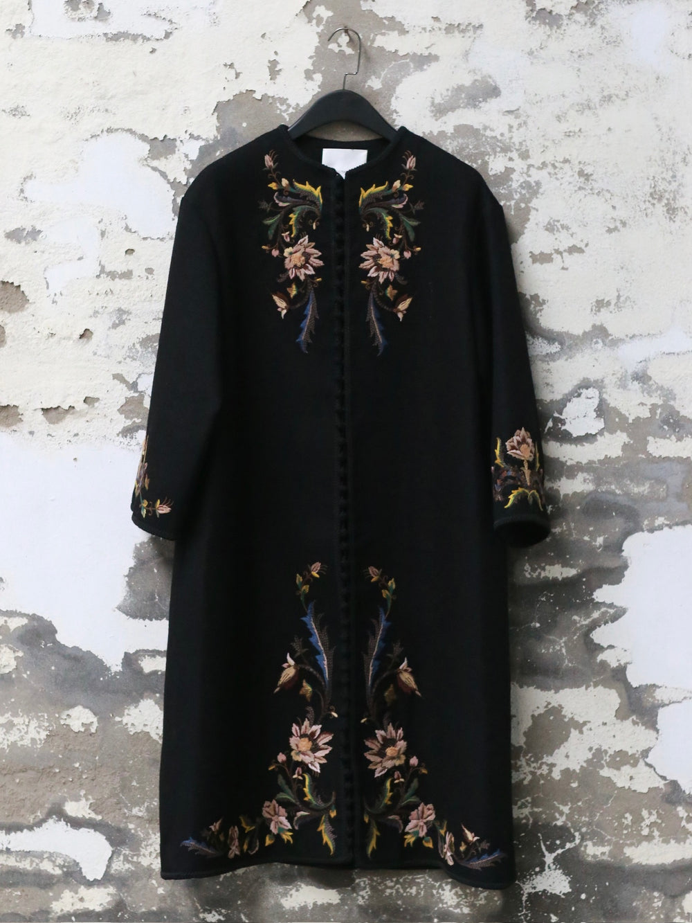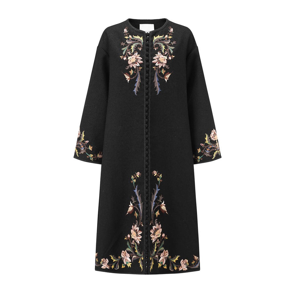 IN TO THE EAST 2025 Autumn/Winter Floral Embroidered Long Coat ITE-E1DGAW063BL22CO-HEI Black