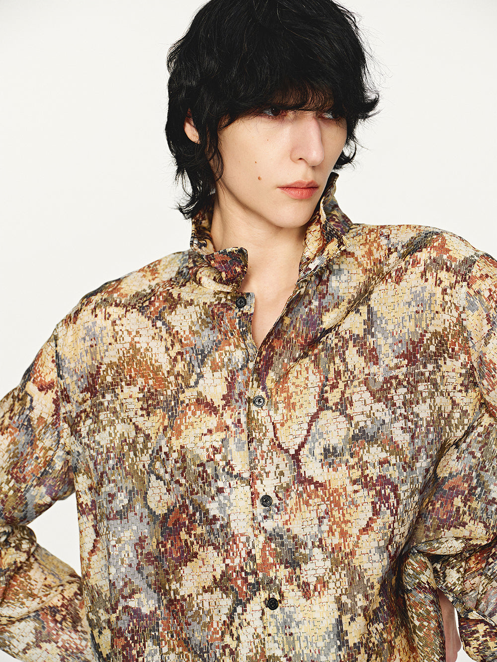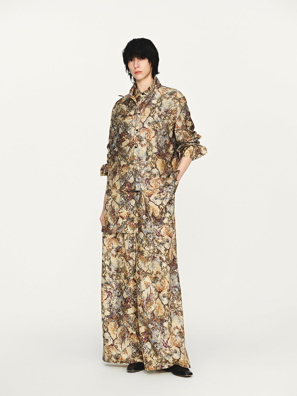 INTO THE EAST 2025 Autumn/Winter Mosaic Molded Collar Silk/Cotton Shirt, Drawstring Straight Leg Pants ITE-E1DGAW080NCC21SH-HUA Short Shirt