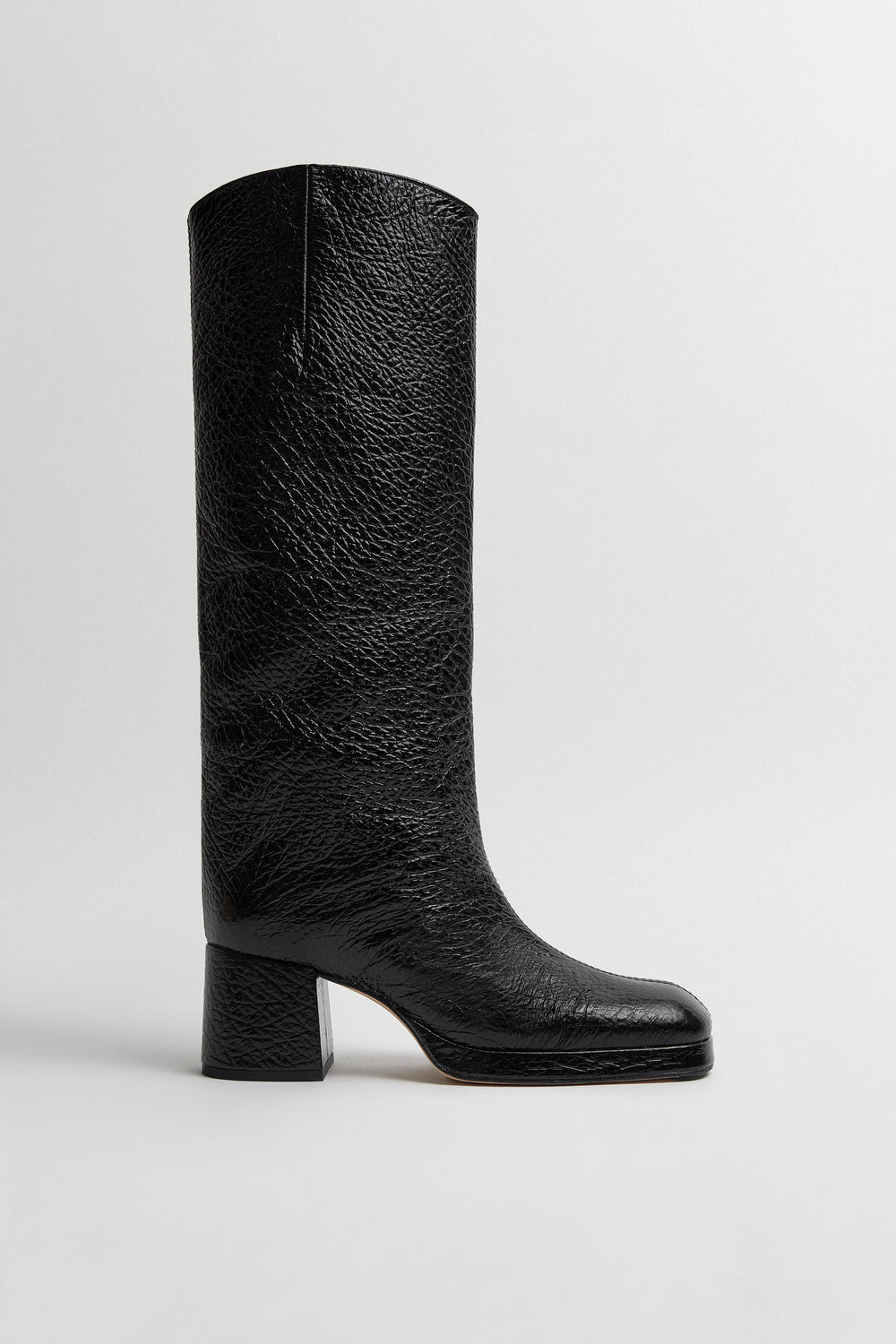 Miista Tundra Black Grained Thigh-High Boots Spain MST-MI_5783-HEI Black