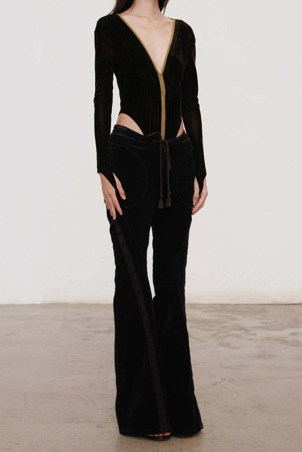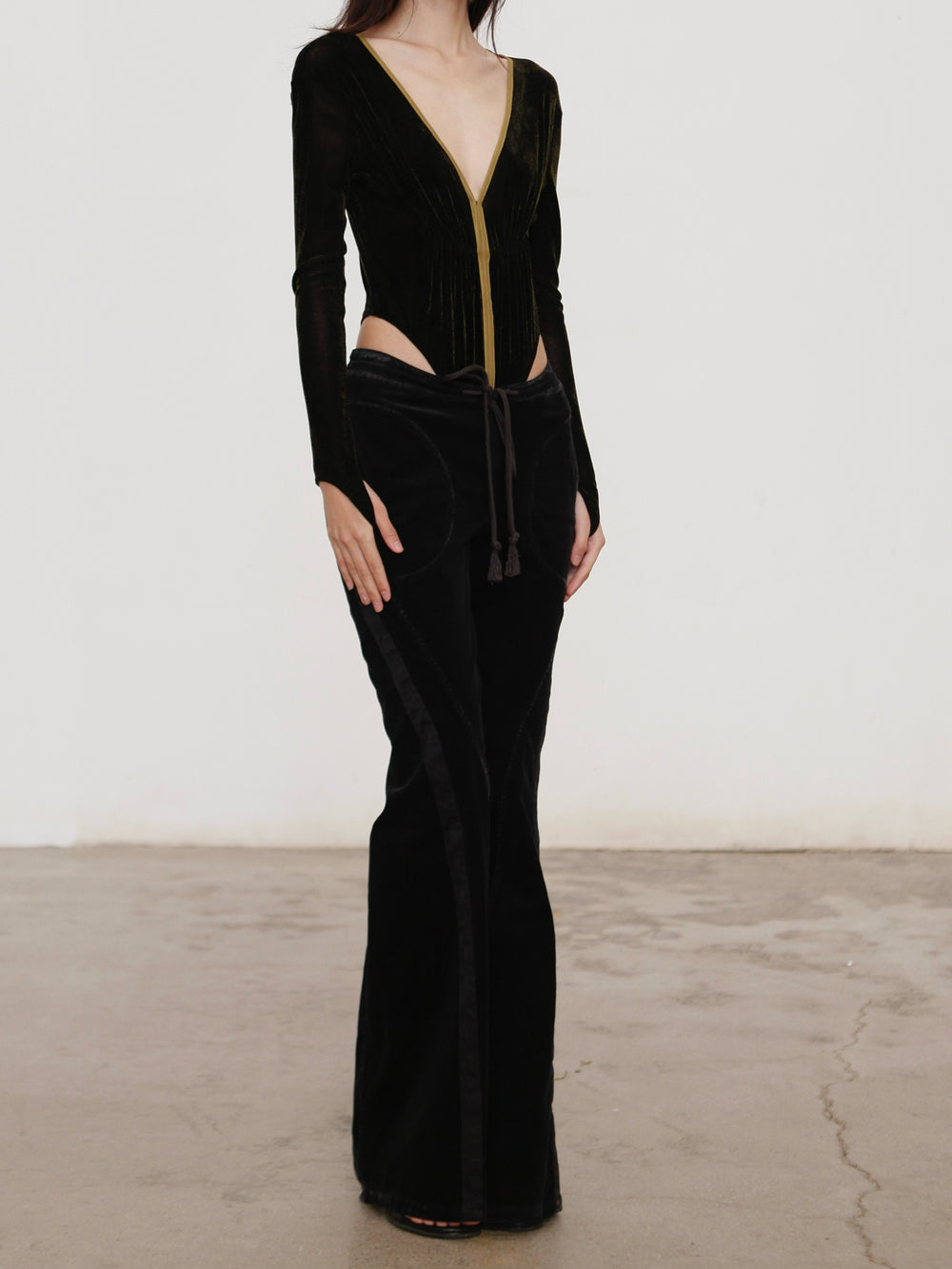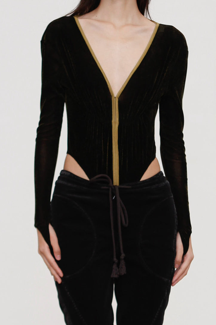 OUDE WAAG 26 Early Spring Stretch Velvet Ruffled Jumpsuit OW-26RS-BD01N1-BL094 Black and Yellow
