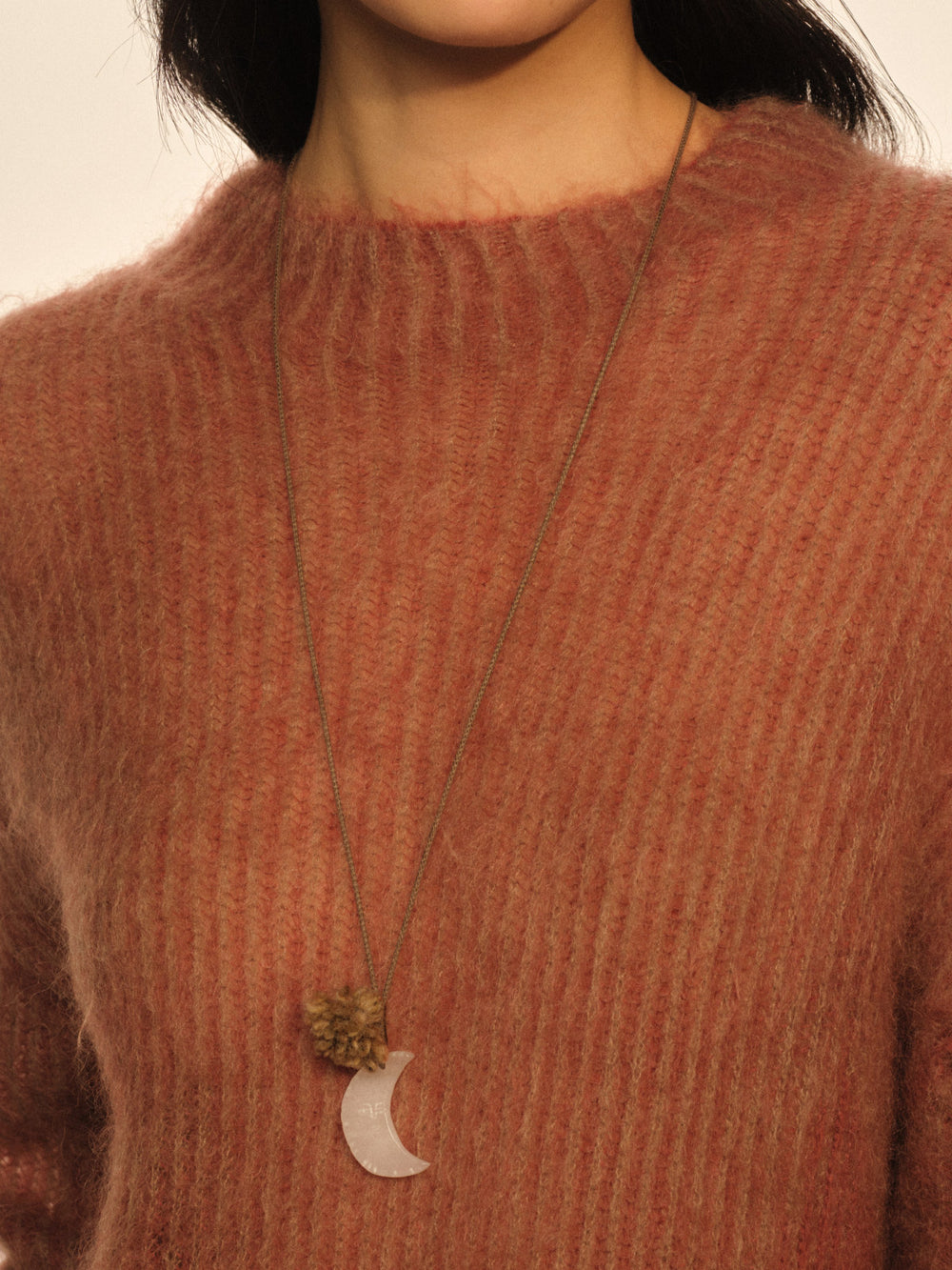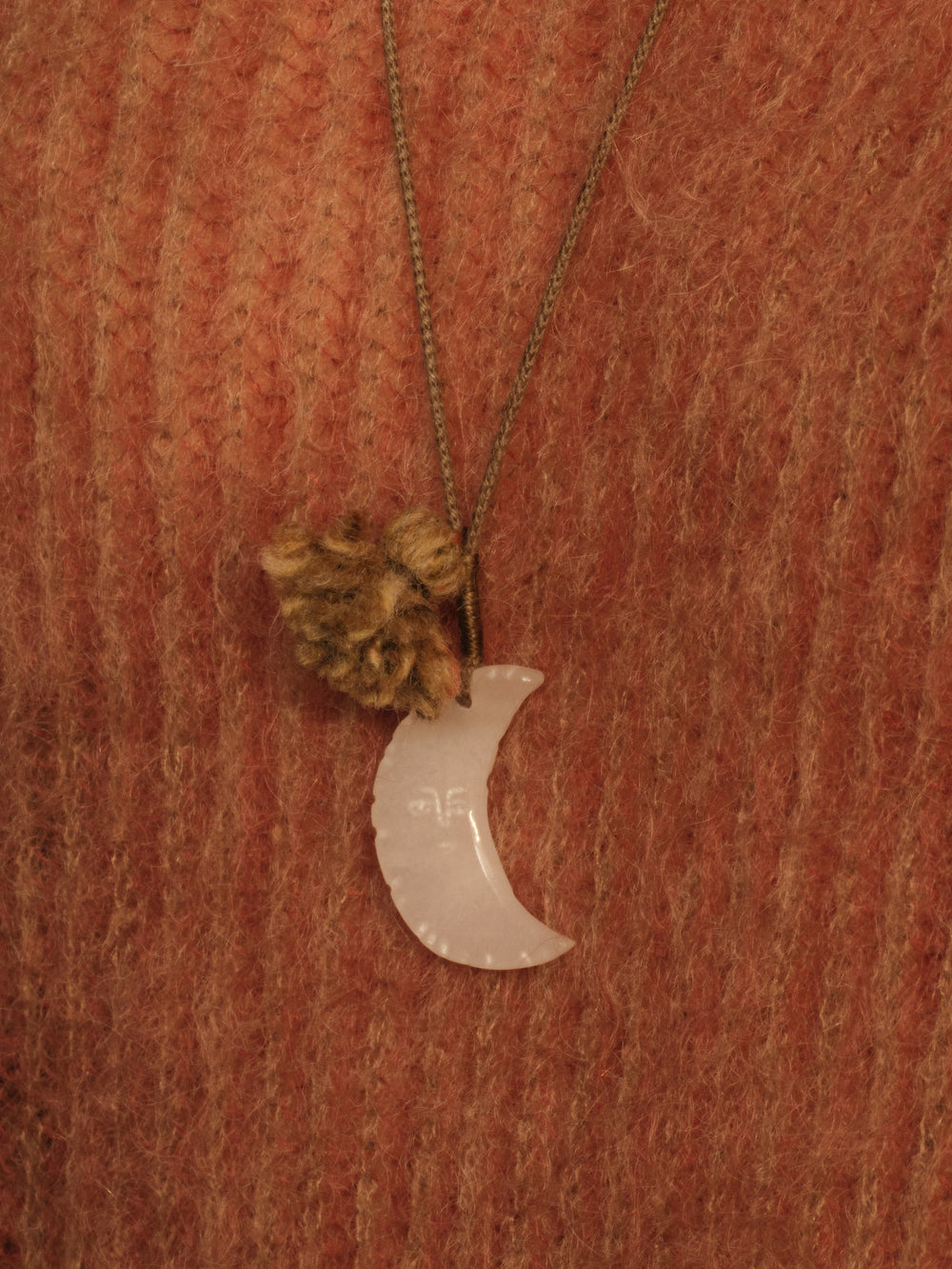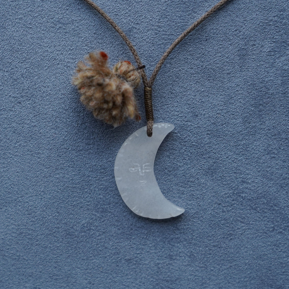 SALE E PEPE Christmas Collection White Xiuyan Jade Ice Moon Braided Long Necklace SEP-SPCMN04-BKQ White/Khaki