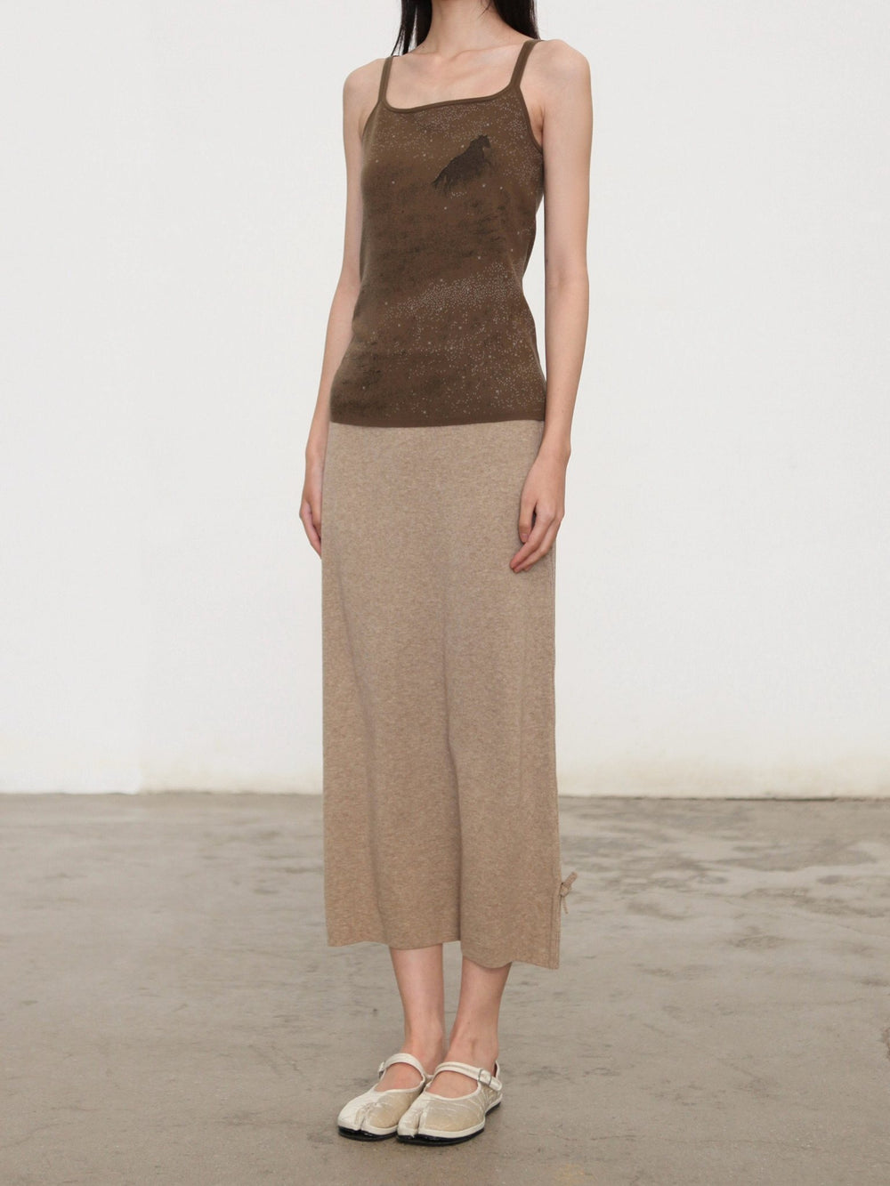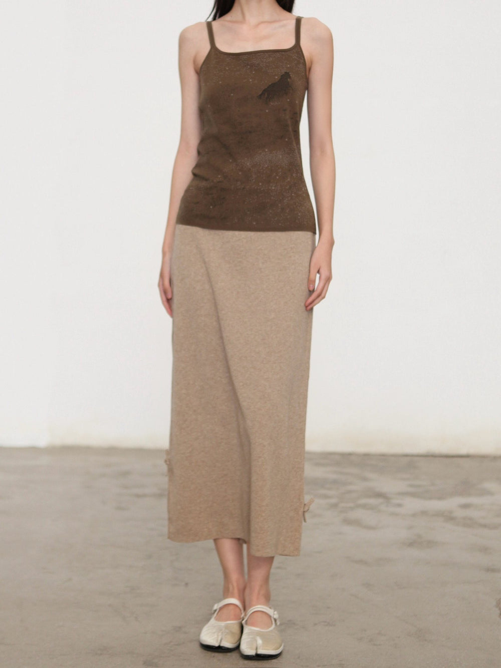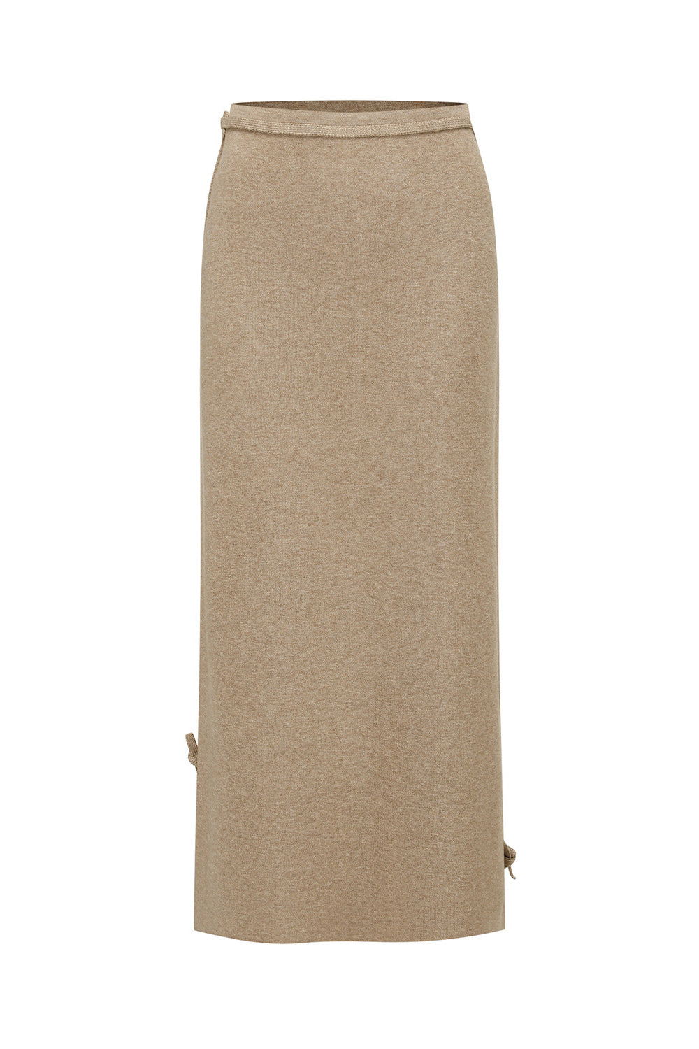 SWAYING 26 Early Spring Straight Skirt with Knot Decoration SW-SW26PS3B03C1-HT Camel Floral Print