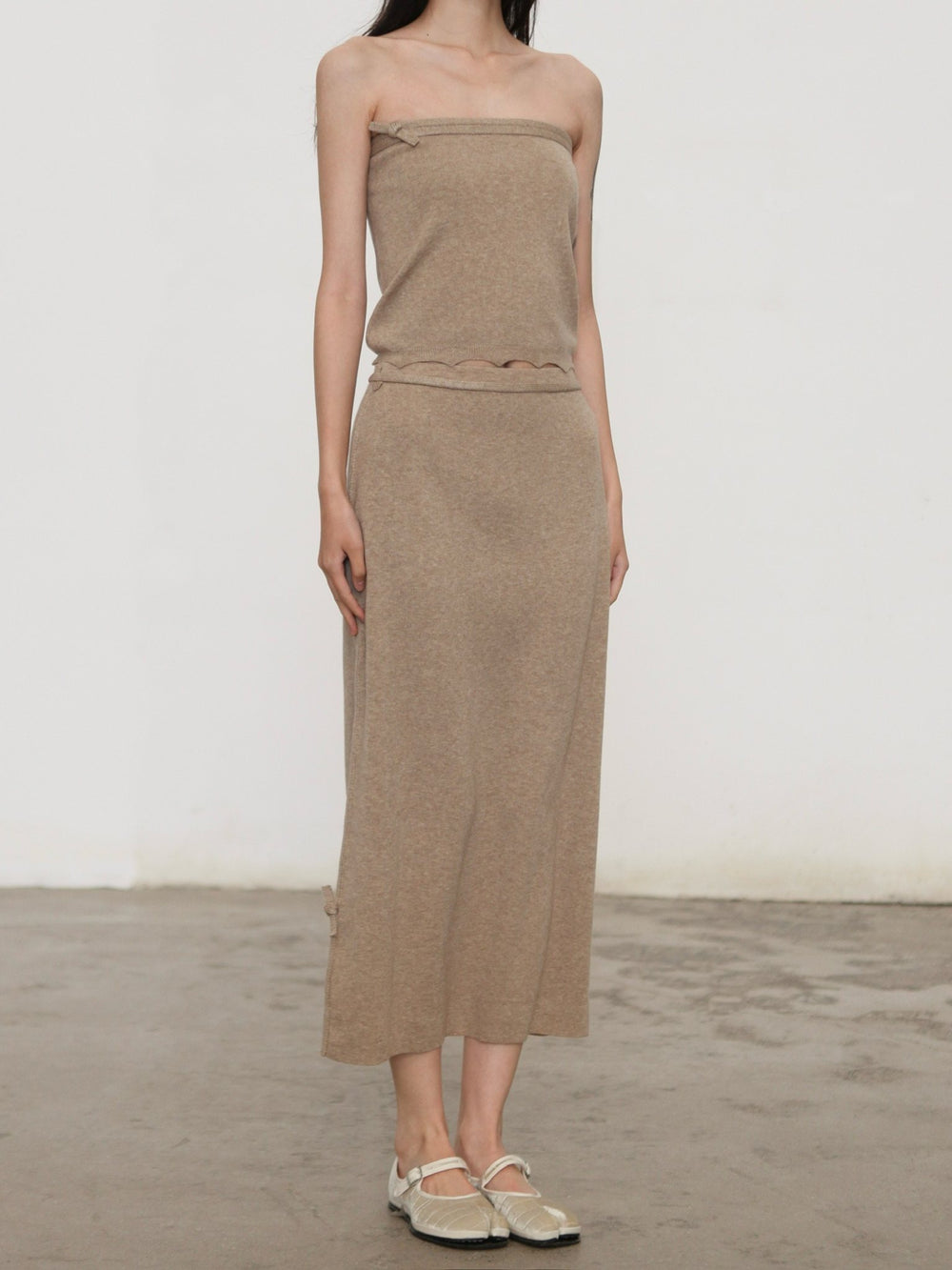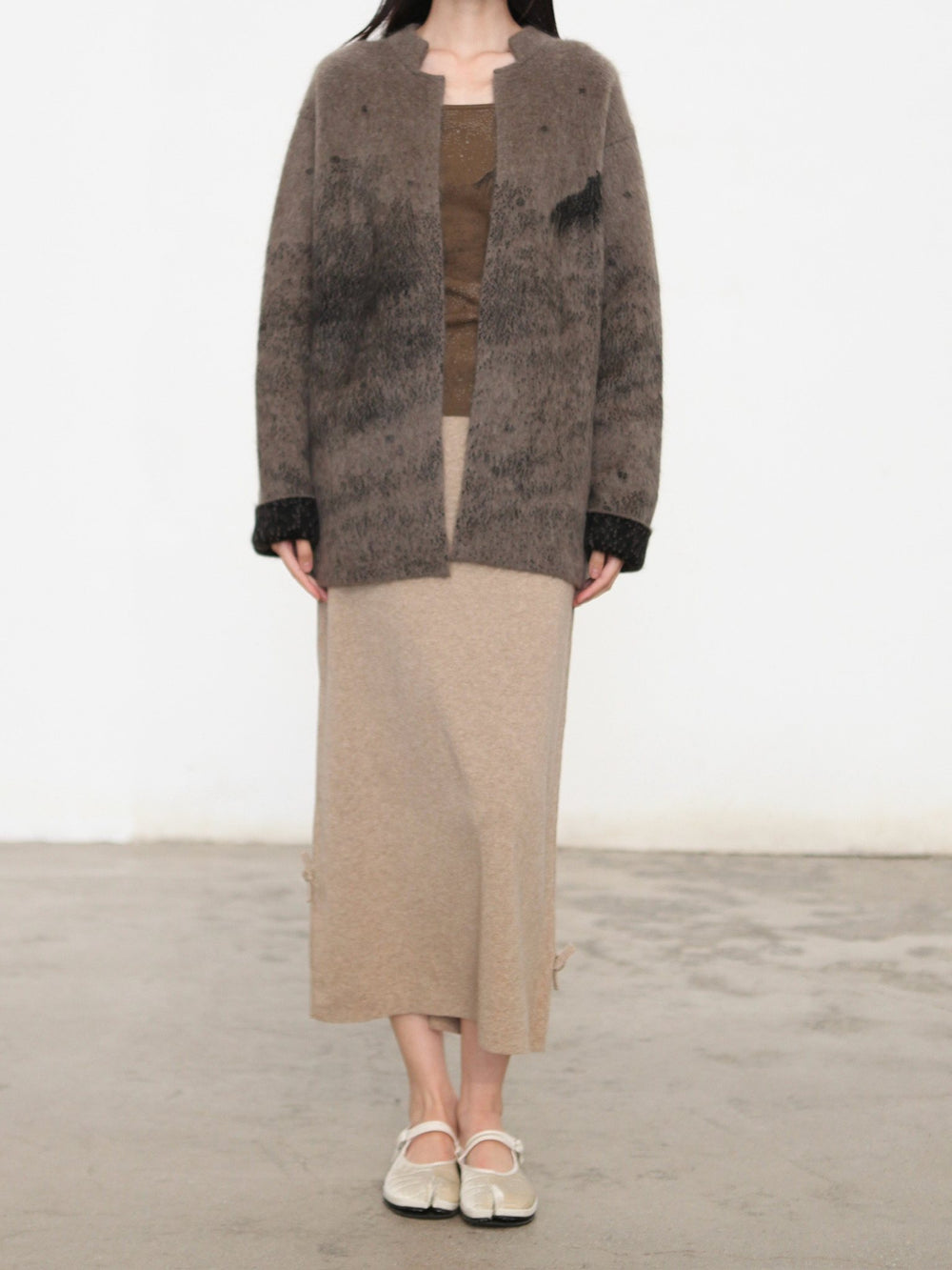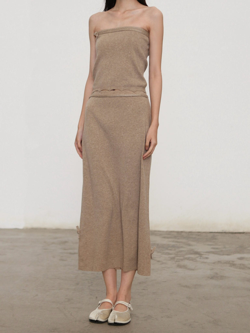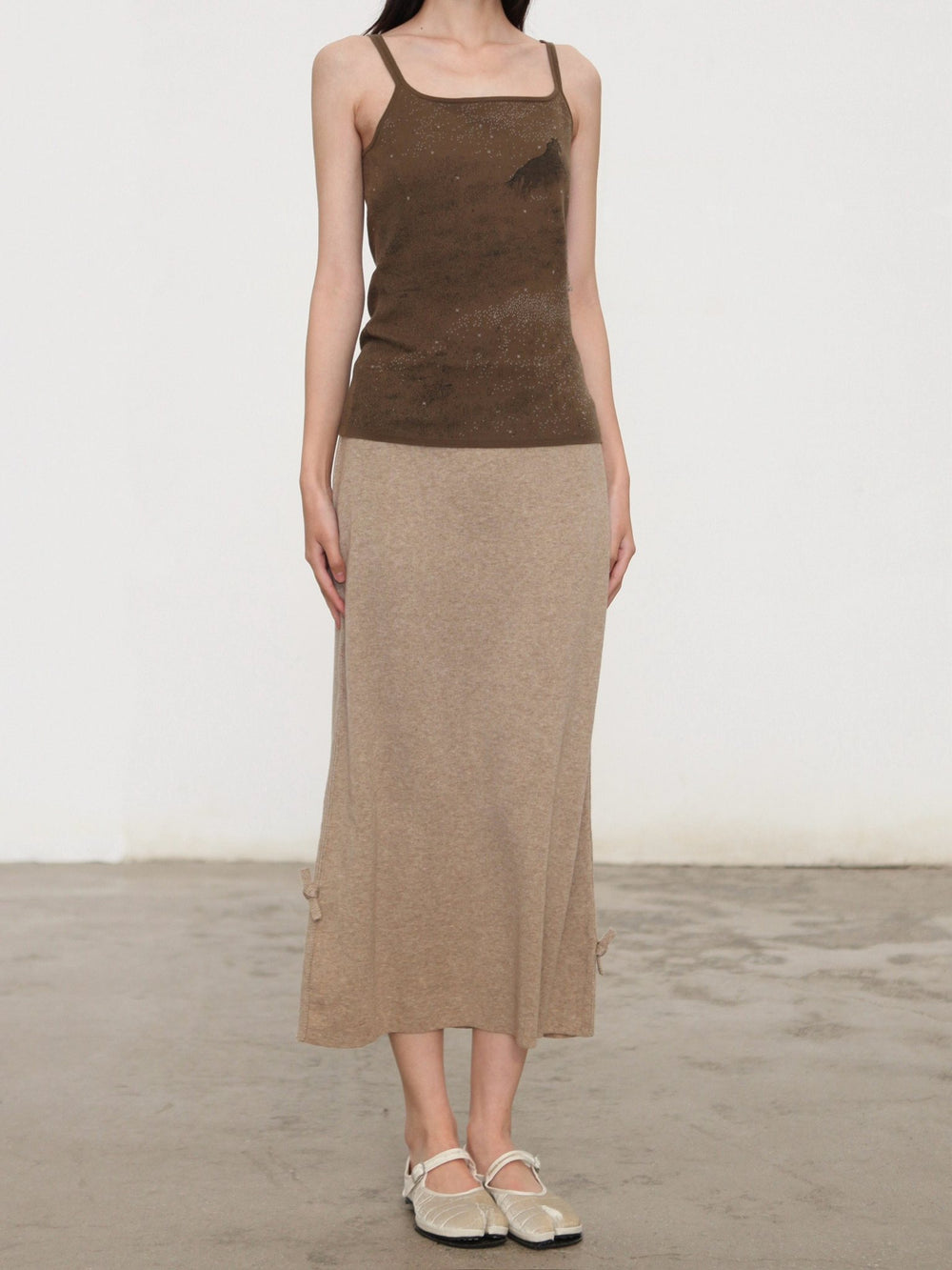 SWAYING 26 Early Spring Straight Skirt with Knot Decoration SW-SW26PS3B03C1-HT Camel Floral Print