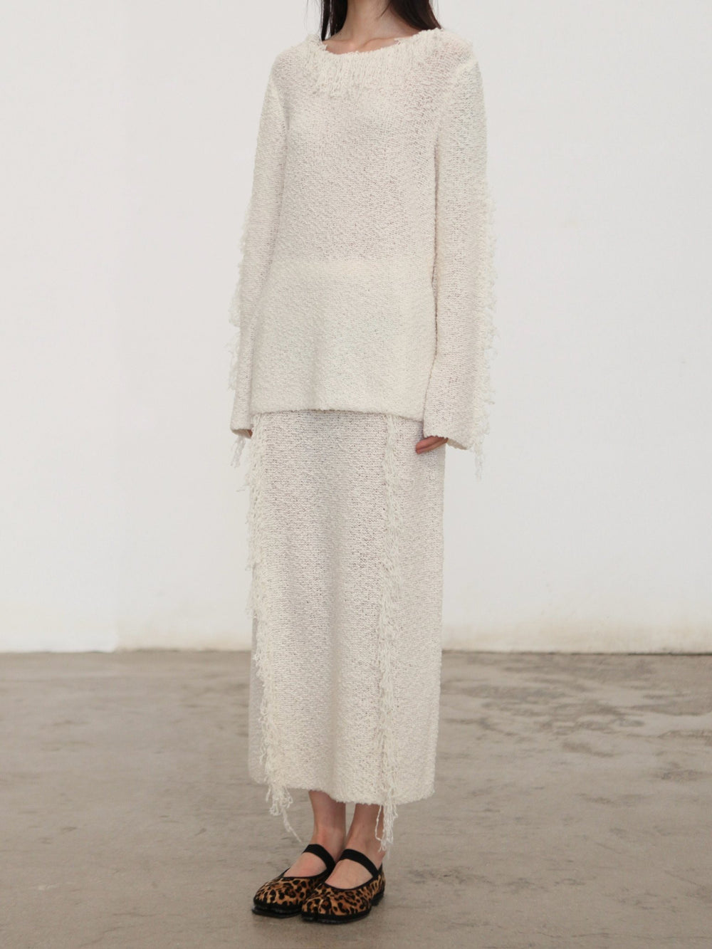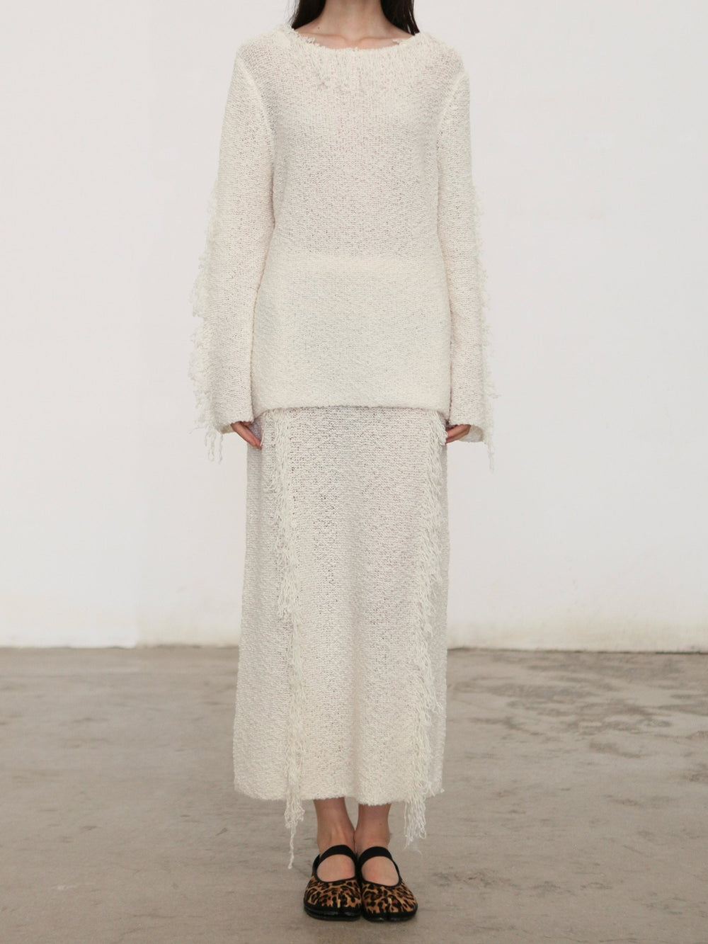 SWAYING 26 Early Spring Tassel Skirt SW-SW26PS3B01C1-BAI White