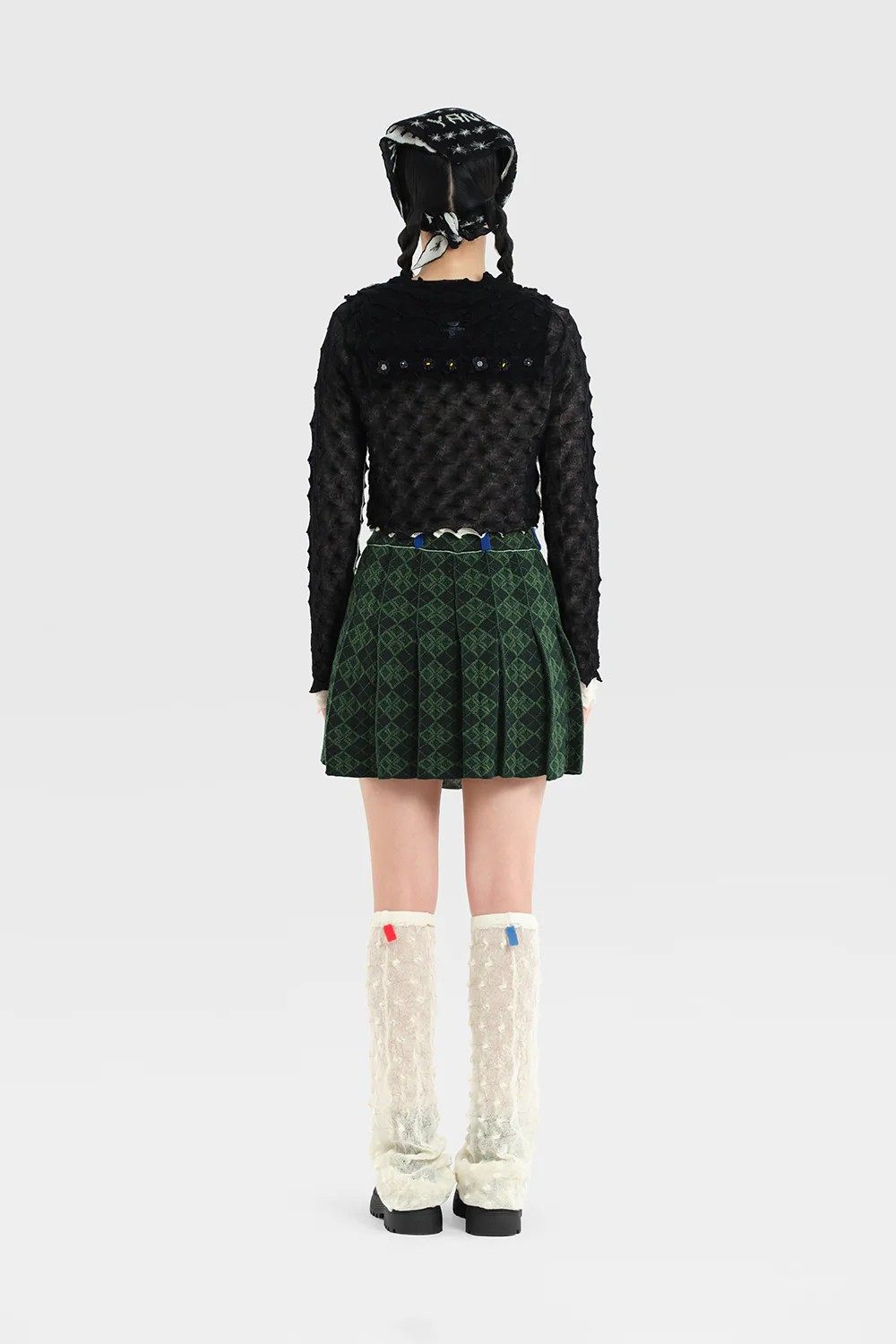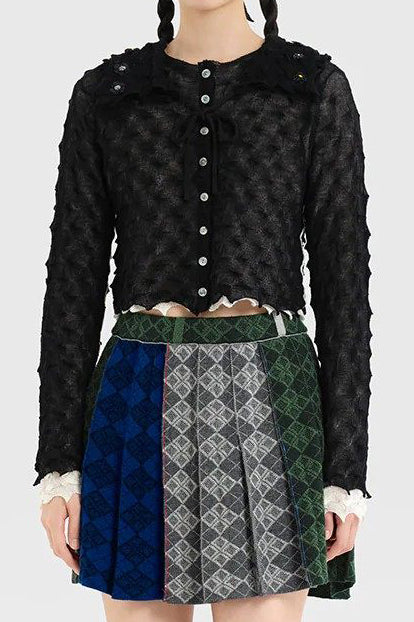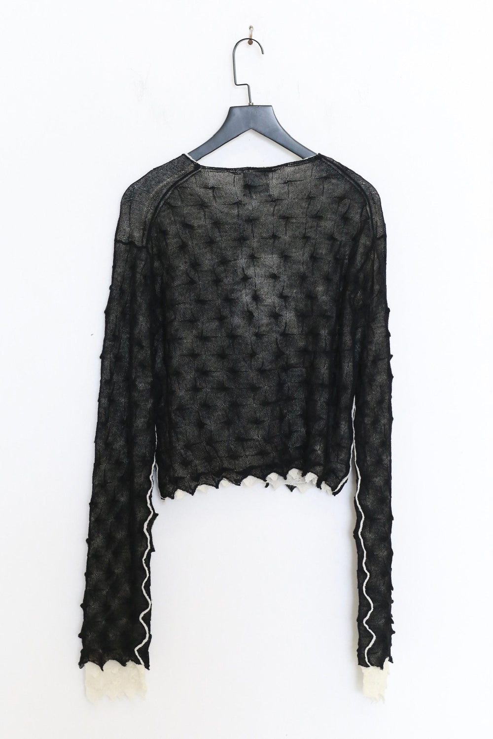 YANYAN KNITS BORLOR Double Layer Cardigan YYK-YYW25-2341-HB Black and White