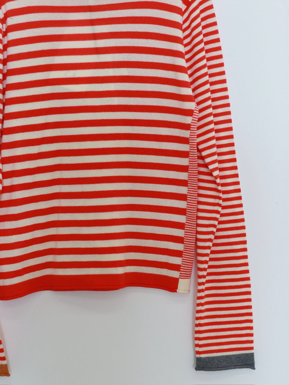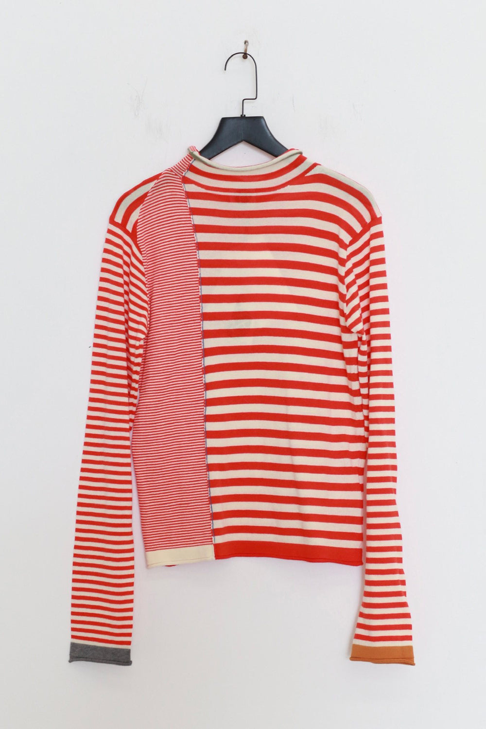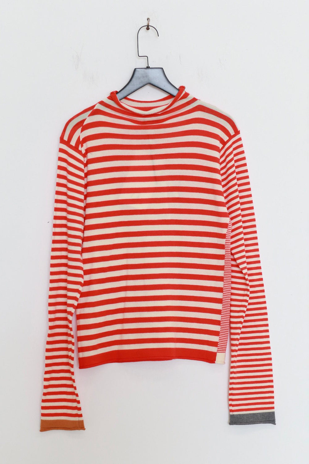 YANYAN KNITS Color Block Striped High Neck Long Sleeve Pullover Sweater YYK-YYW25-1622-BPH White and Red