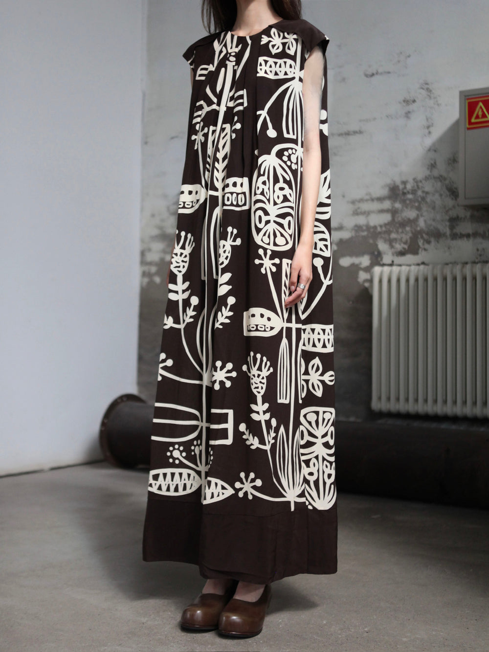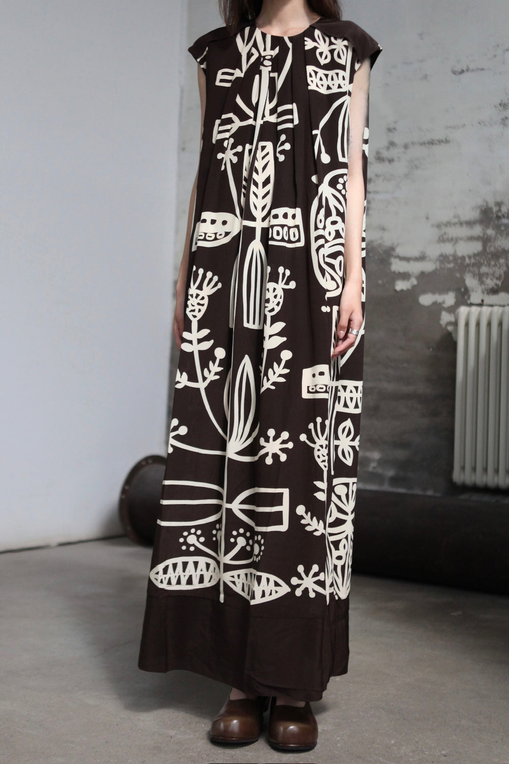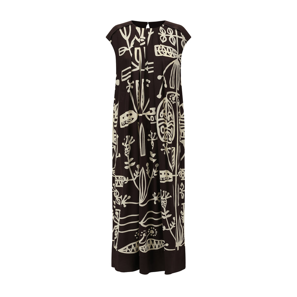 INTO THE EAST 25 Autumn/Winter Silk Totem Pleated Dress ITE-E1DGSS013CF21DS-KA Brown