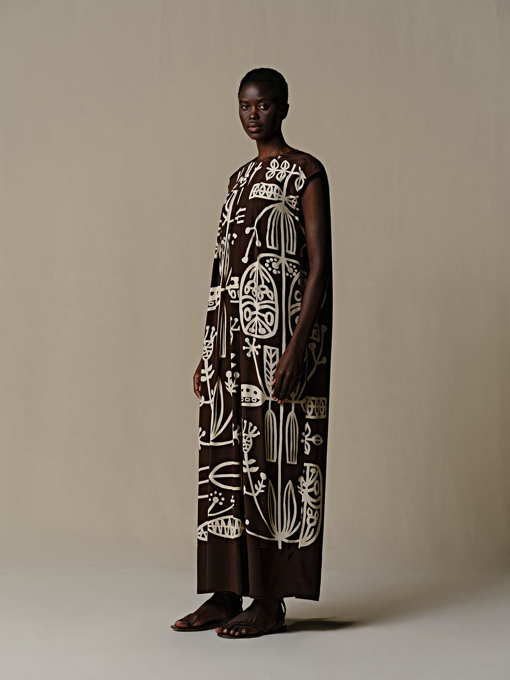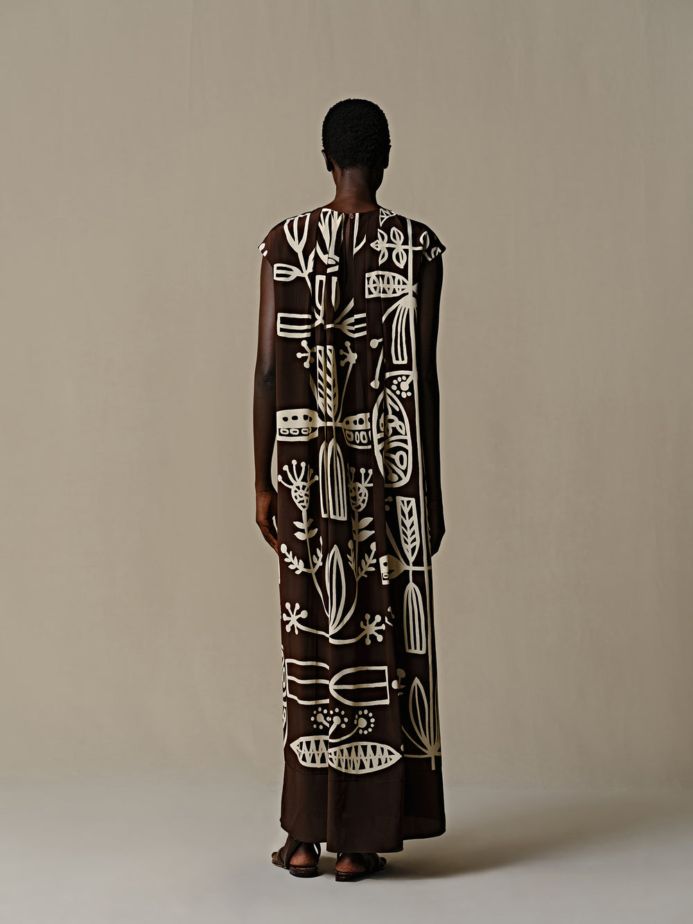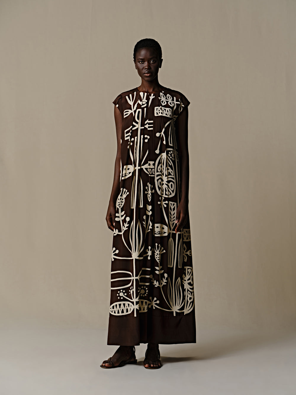 INTO THE EAST 25 Autumn/Winter Silk Totem Pleated Dress ITE-E1DGSS013CF21DS-KA Brown