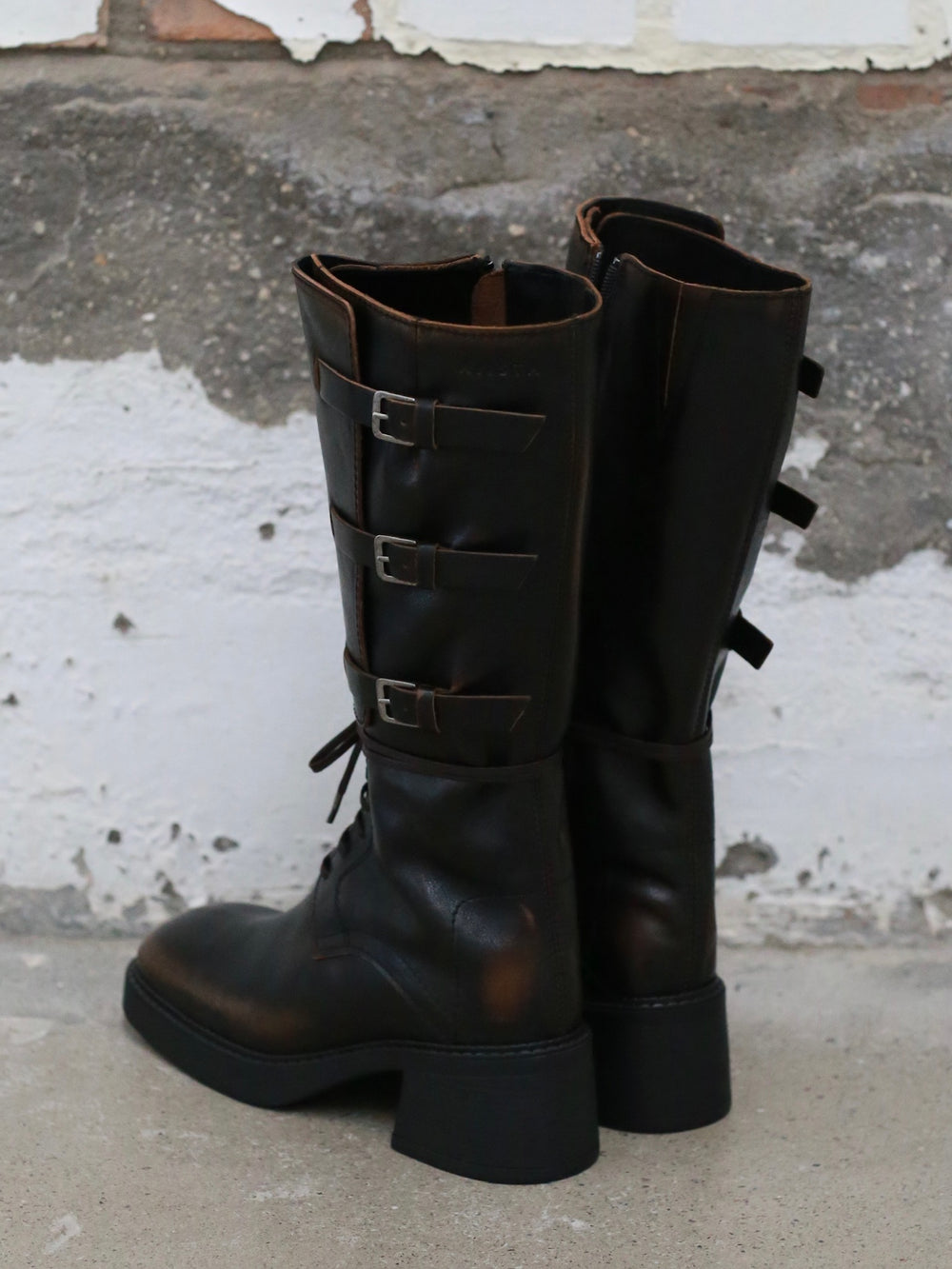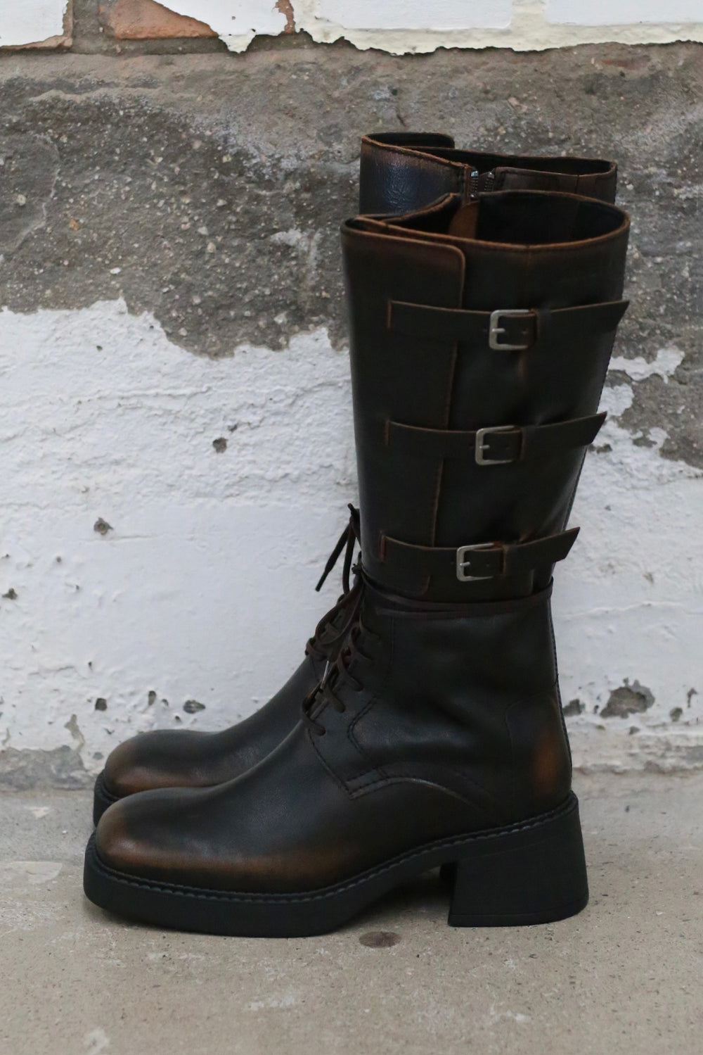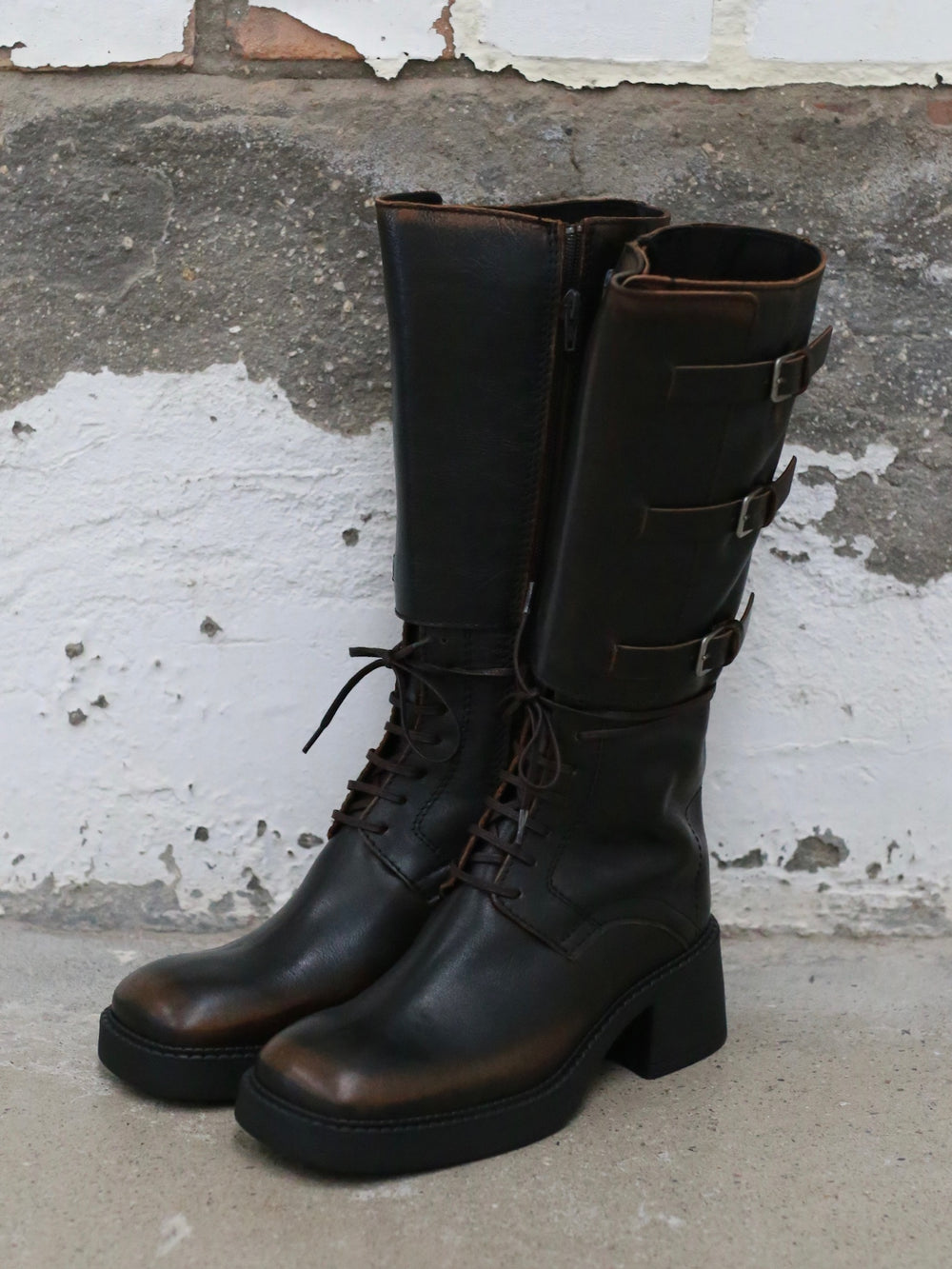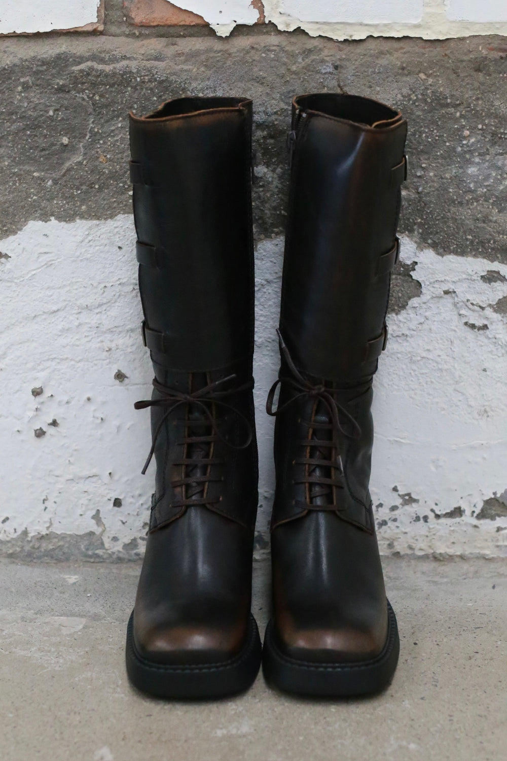 Miista Fall/Winter 2025 Lace-up Buckle Square Toe High Boots, Spain, MST-E8_3998-ZONG, Brown