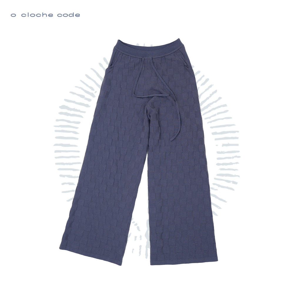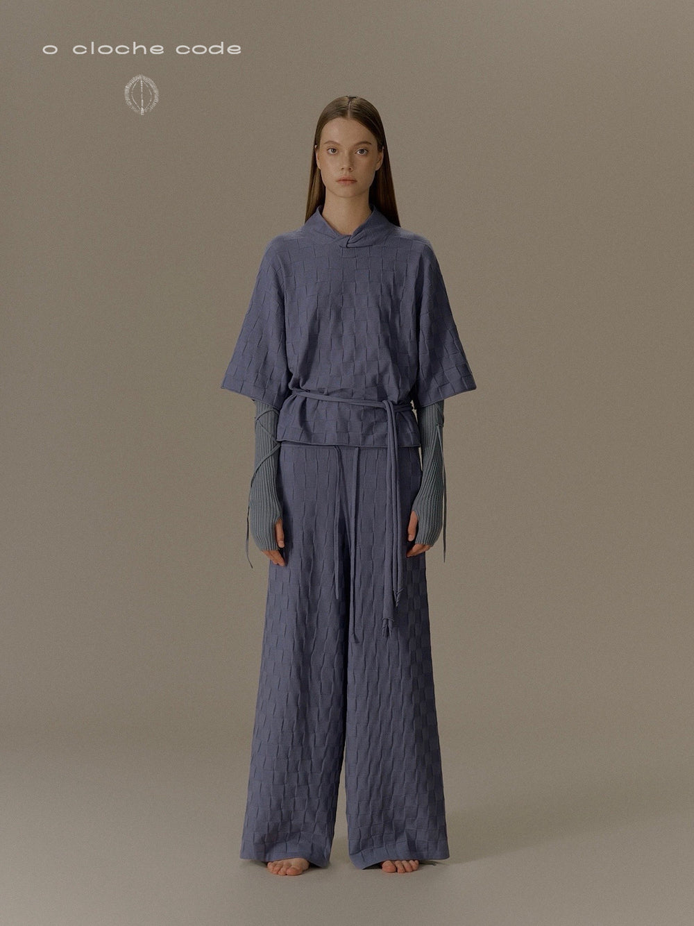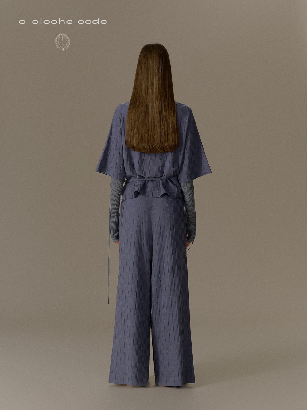o cloche code 25 Fall/Winter checkered button-down top/wide-leg trousers in merino wool knit OCC-OH01P866-FGL; French blue trousers (OH01P866 OH01T865).