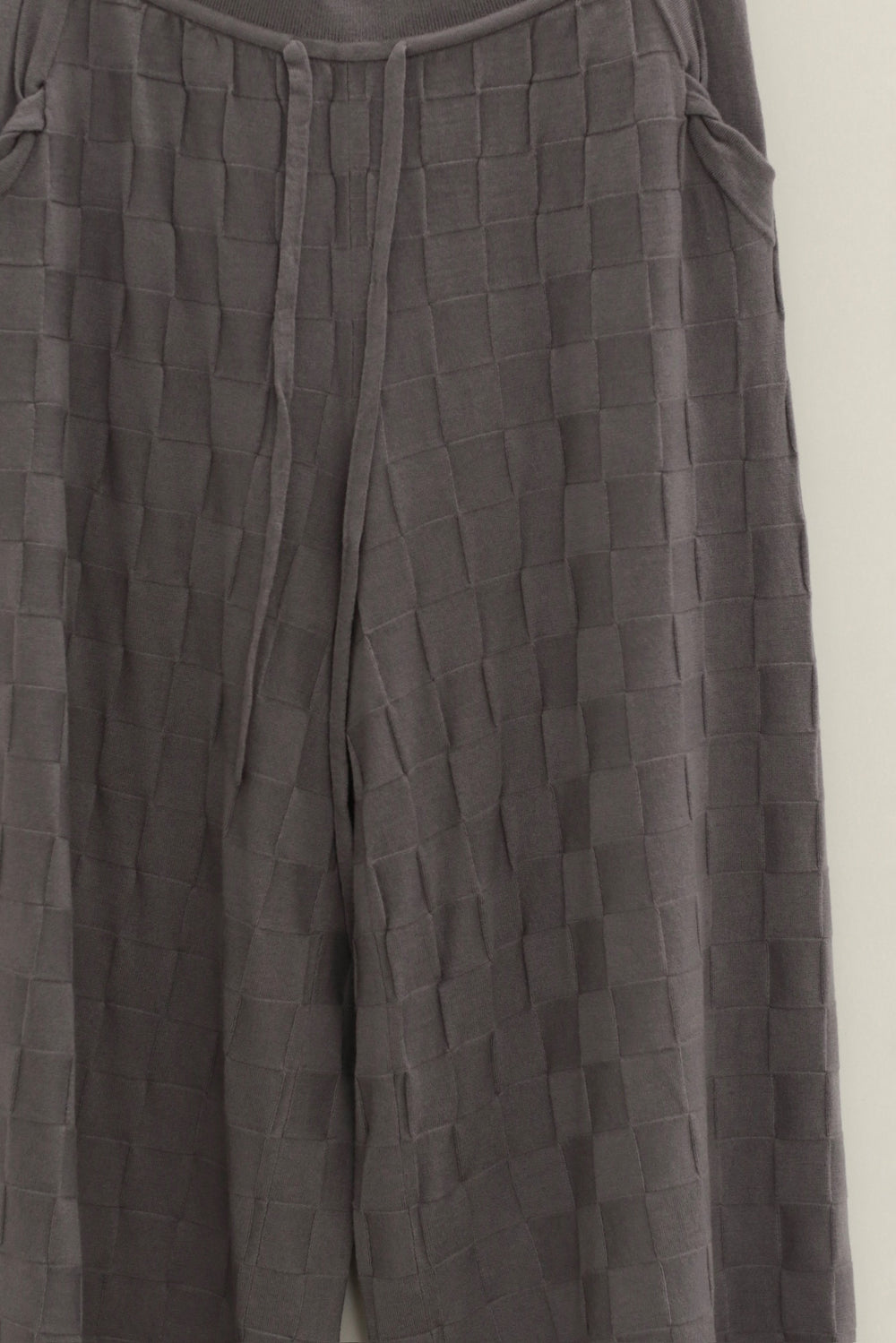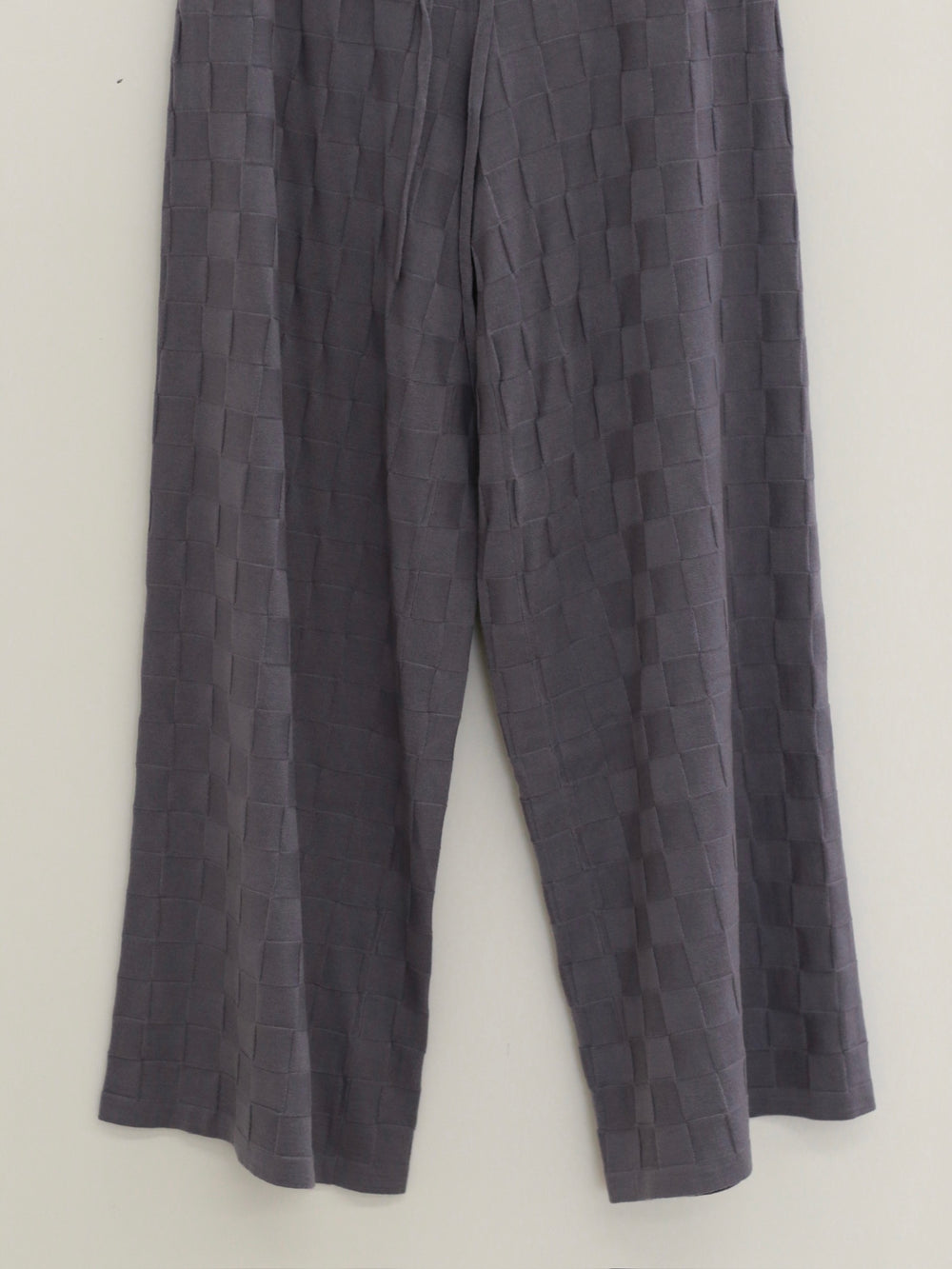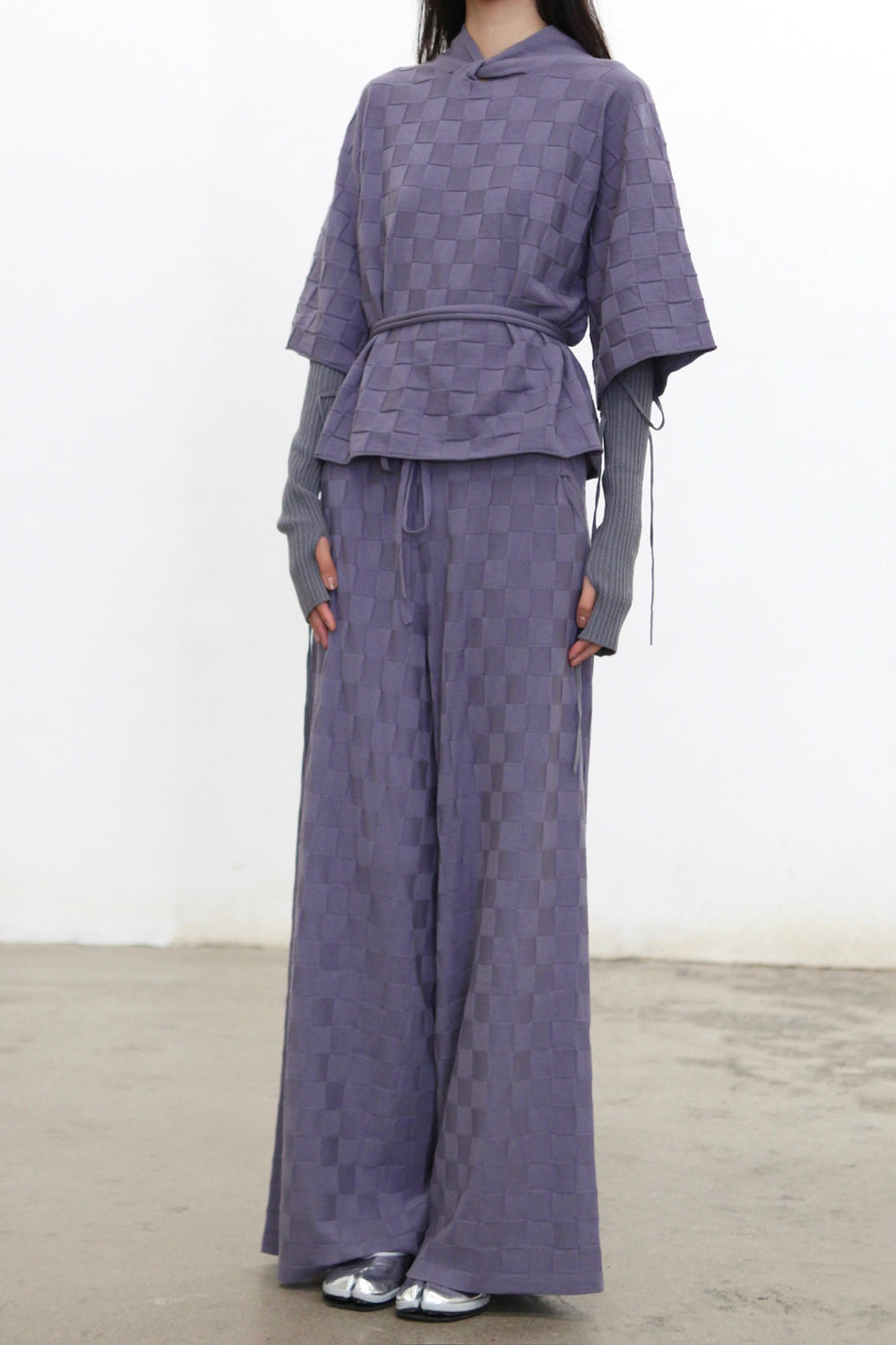 o cloche code 25 Fall/Winter checkered button-down top/wide-leg trousers in merino wool knit OCC-OH01P866-FGL; French blue trousers (OH01P866 OH01T865).