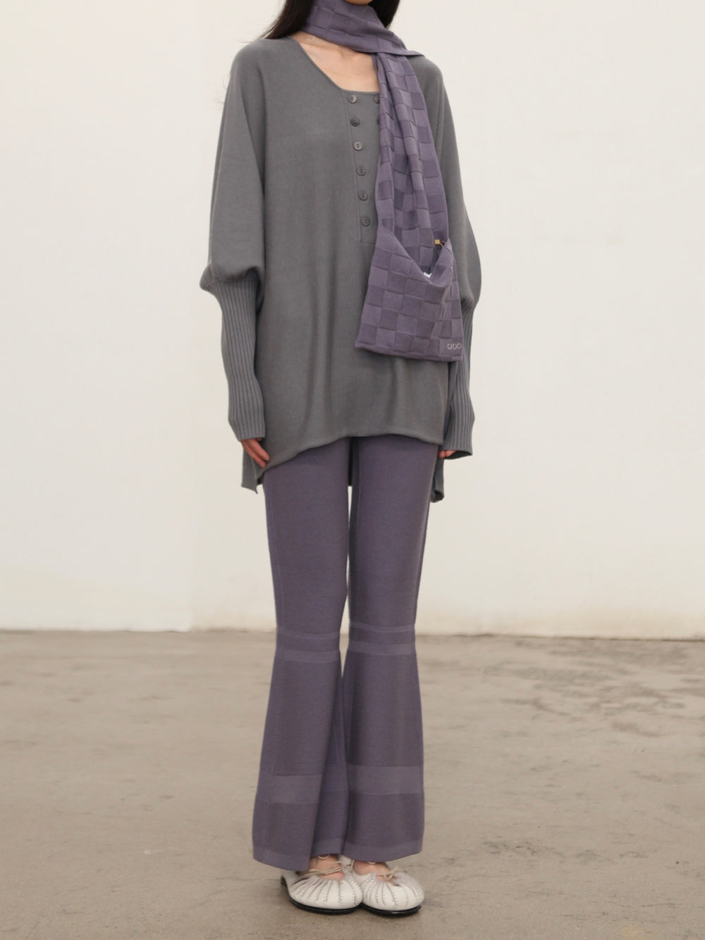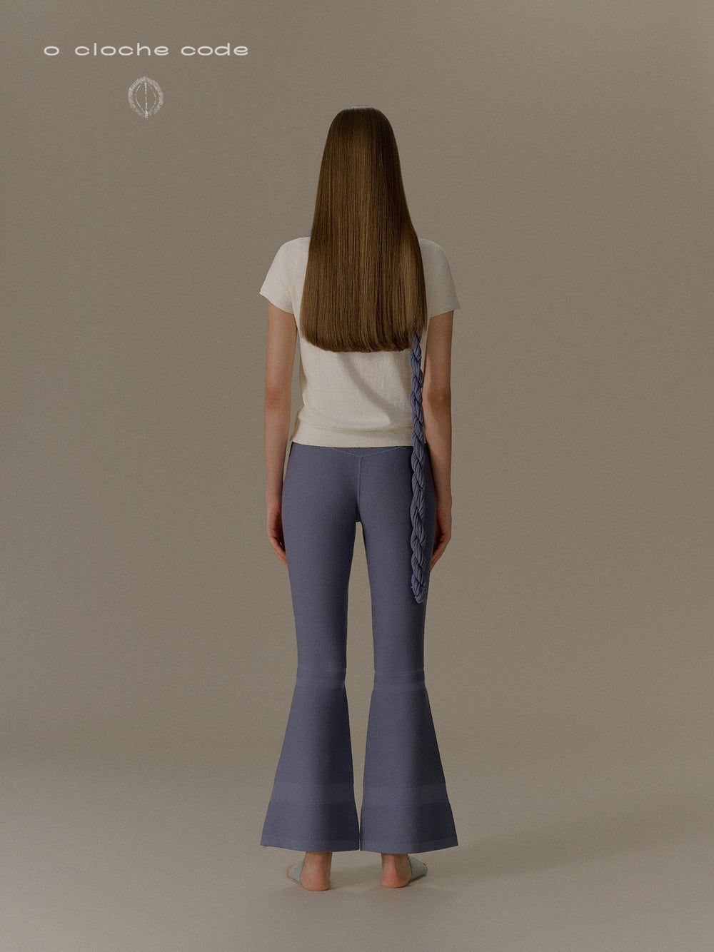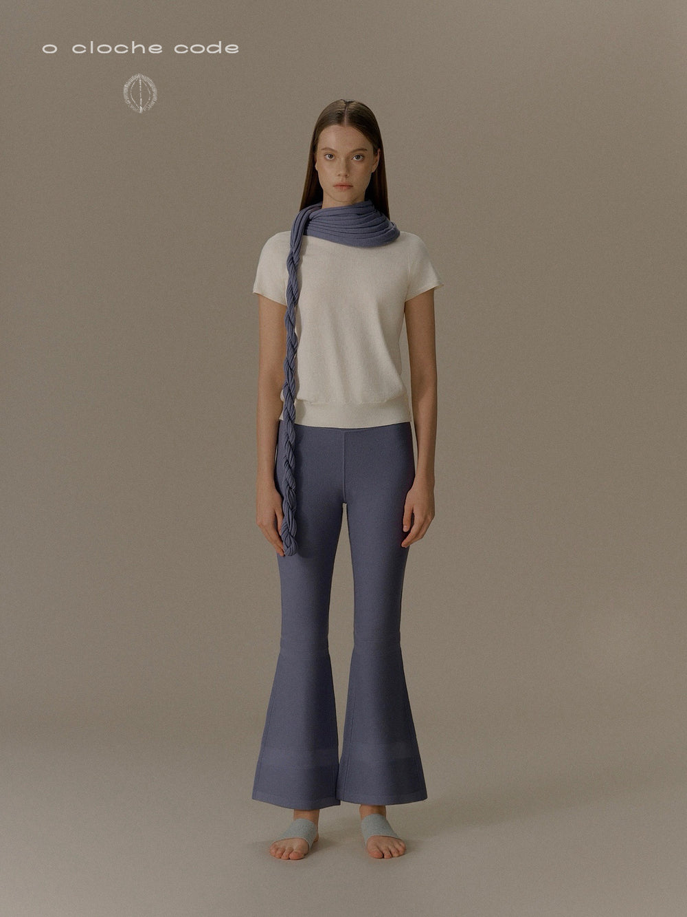 o cloche code 25 Fall/Winter Skinny Flare Pants Merino Wool Knit Trousers Women OCC-OH01P868-FGL French Blue