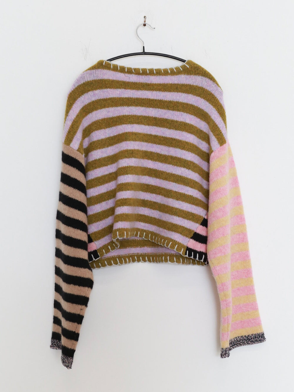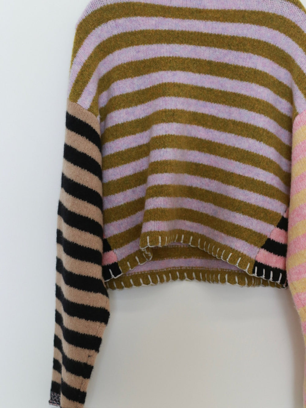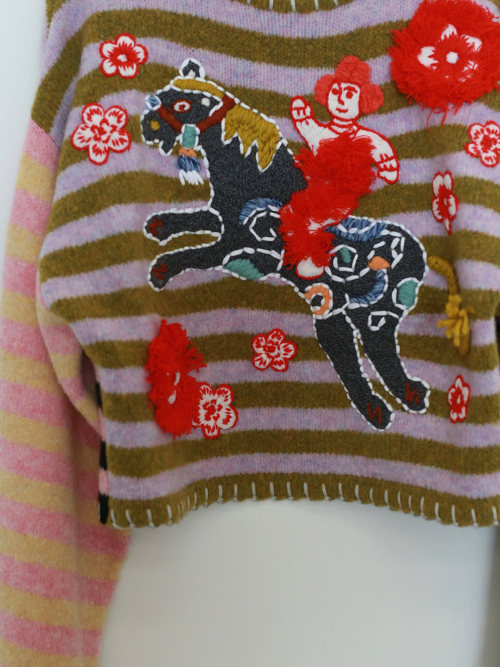 YANYAN KNITS Plush Horse Pattern Boat Neck Pullover Sweater YYK-YYW25-1491-PIN Color Block