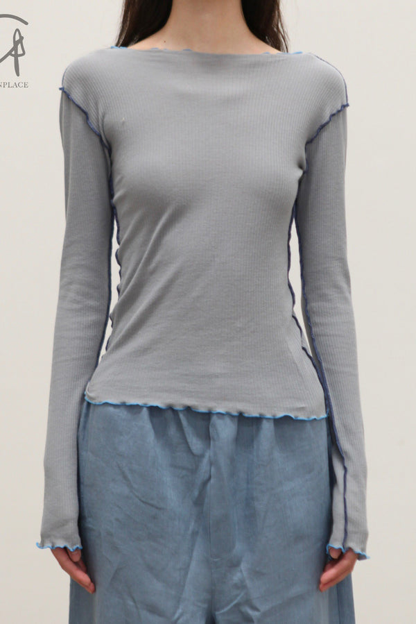 BASERANGE Ruffled Ribbed Cotton T-shirt BAS-TTO3-RB-SP25-HDJLMJH Bowknot Blue/Hen Yellow TTO3-RB-000