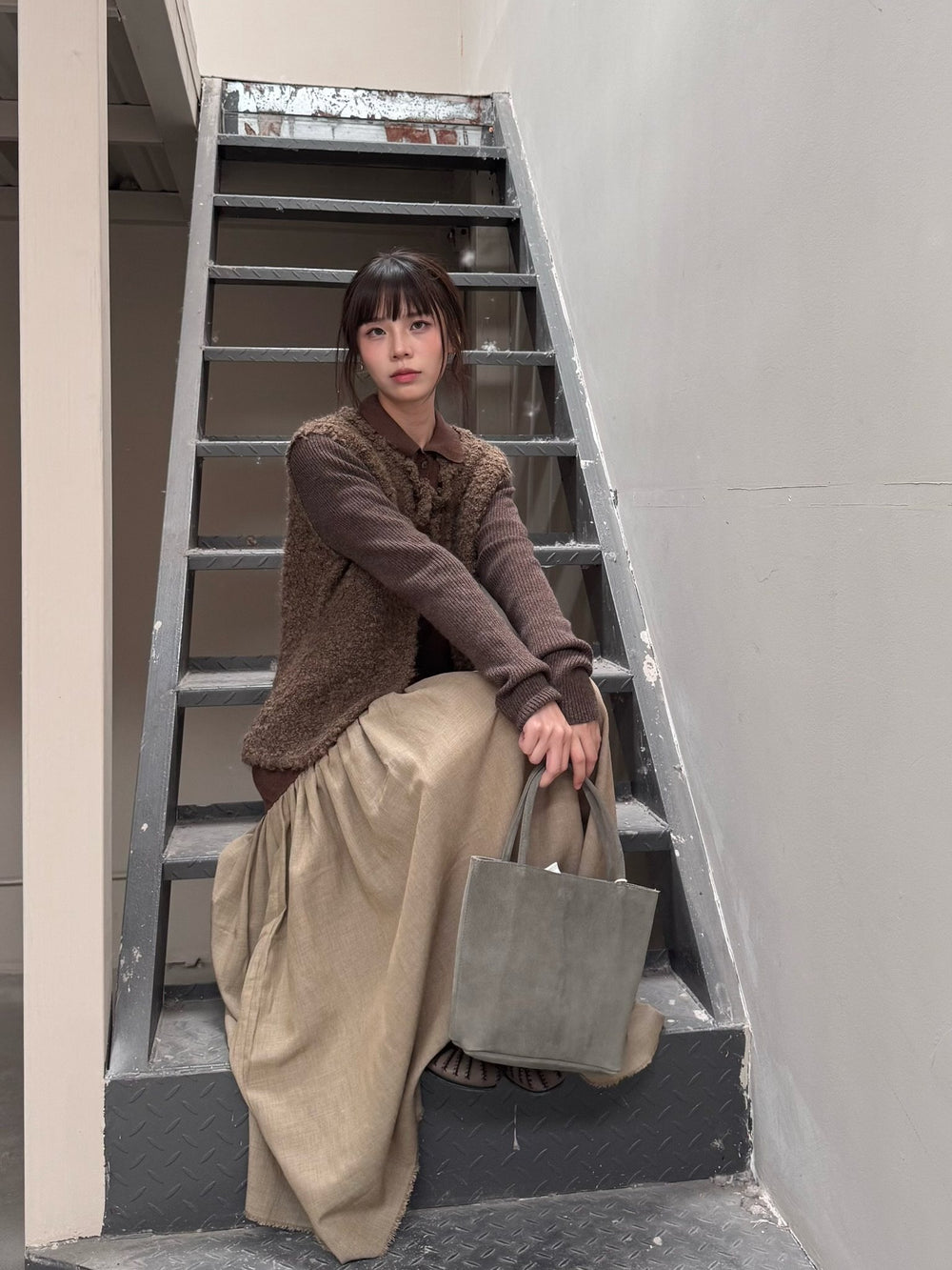 imibooo 24 autumn and winter water-dyed pigskin short handle square bag short Dollybag OOO-IMB24SDL-PSL-SS-ZMH-F SESAME/black sesame 24AWSDL