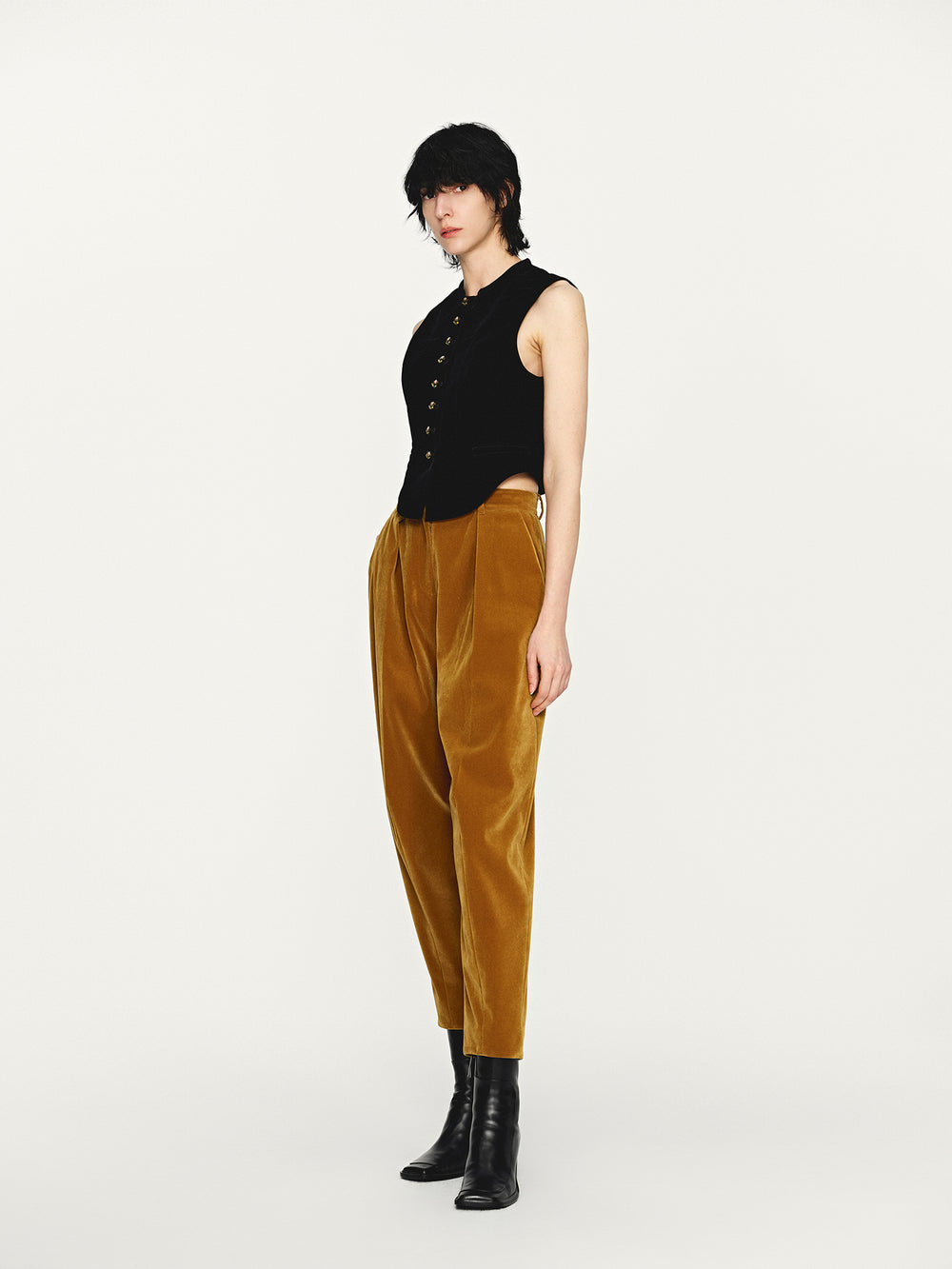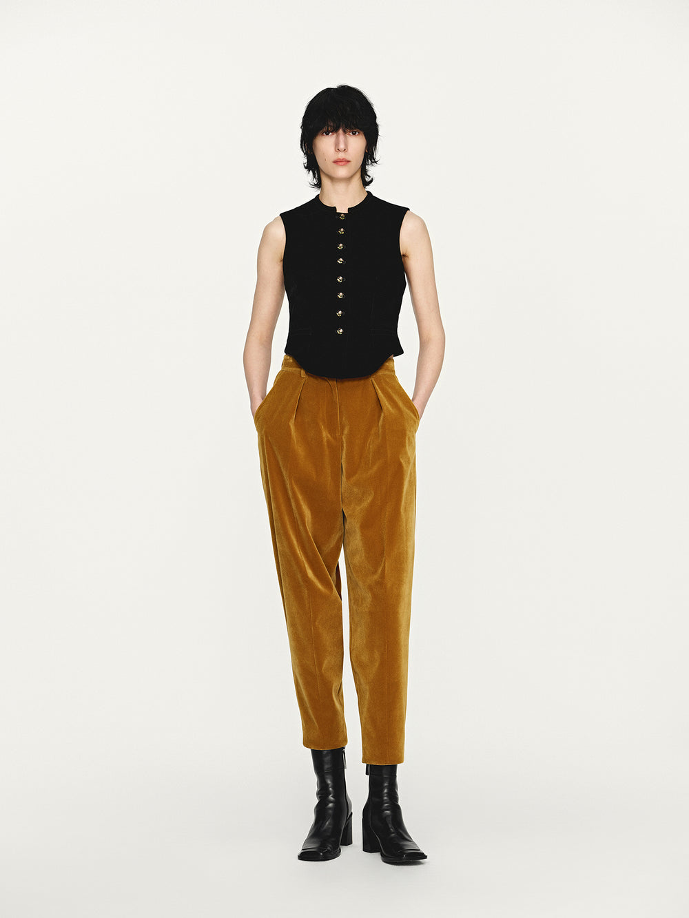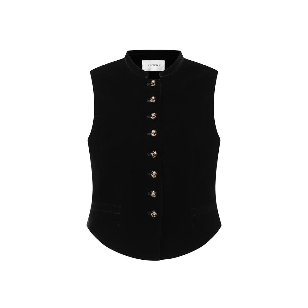 INTO THE EAST 25 Autumn and Winter Black Velvet Embroidered Button Vest ITE-E1DGAW052BL22VE-HEI Black