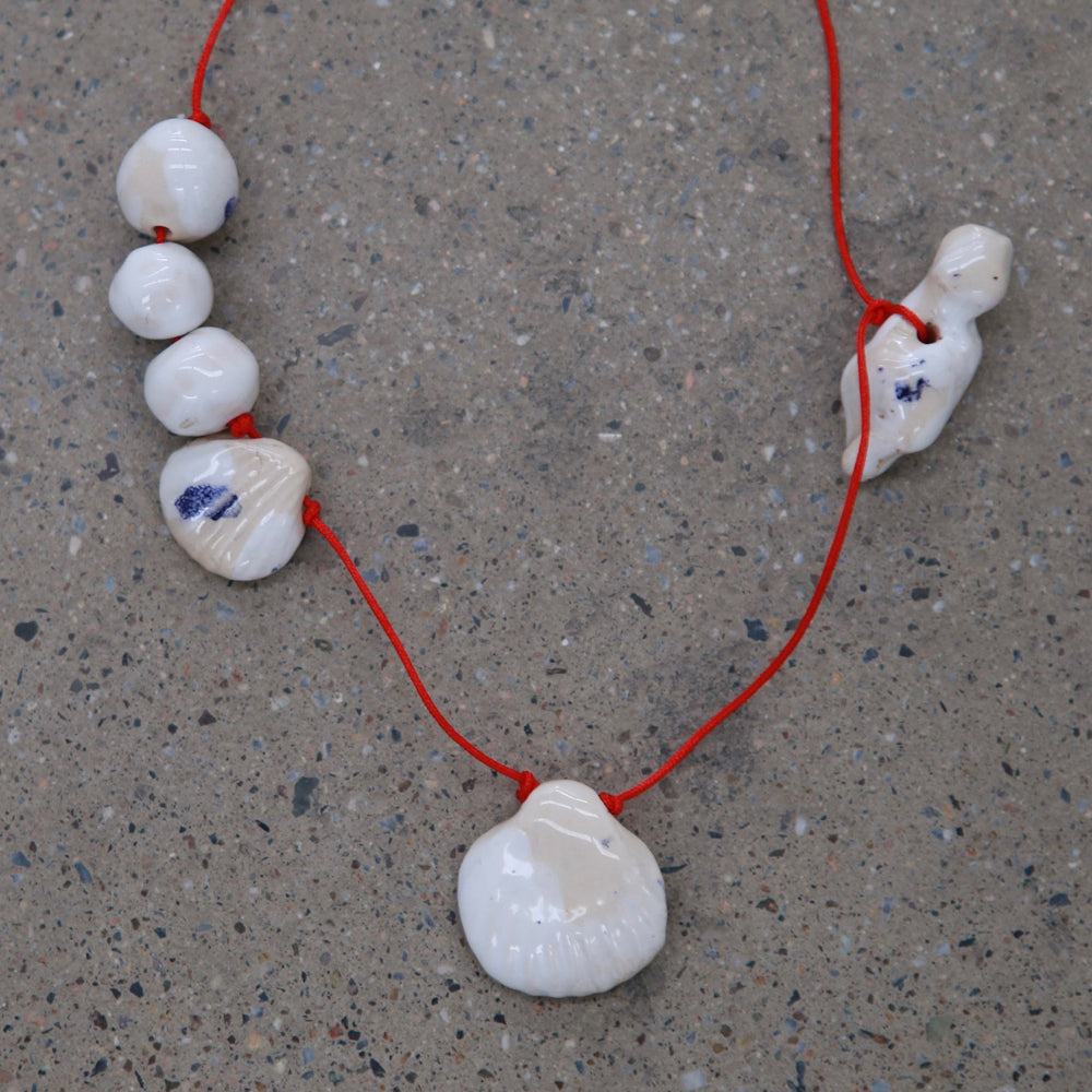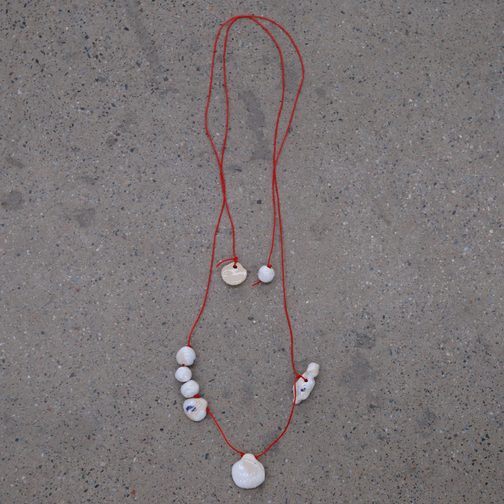 LEVENS 25 Spring and Summer Shell Red Line Necklace LVS-SS2543SEASHNECK-RD-HB Red and White