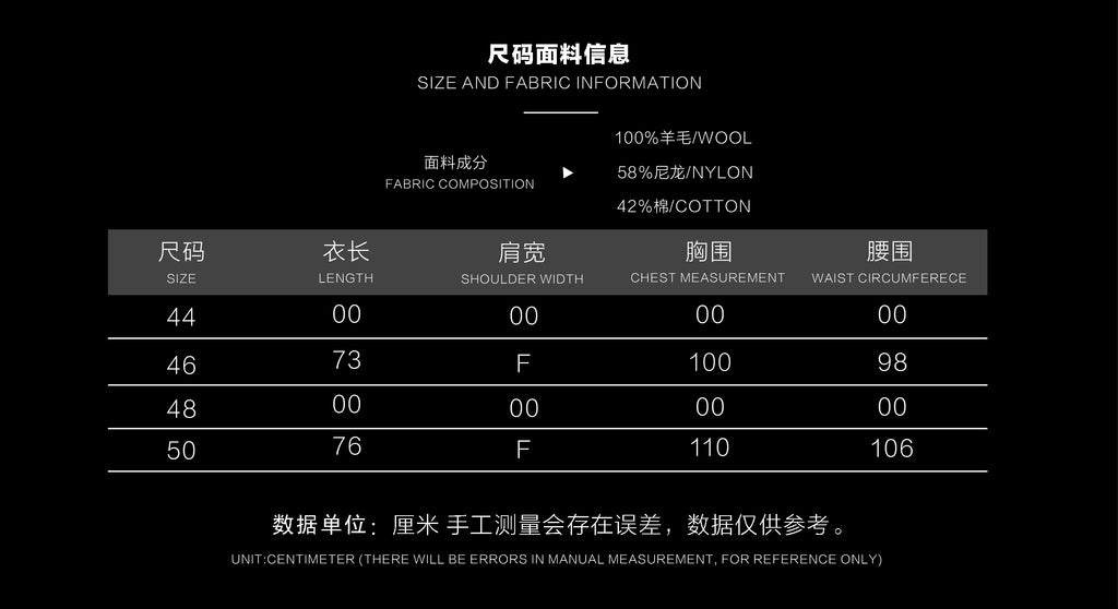 腰部冷杉 (CM) | 71 | 76 | 81 | 86 | 91.5 | 96.5 | 101.5 |
