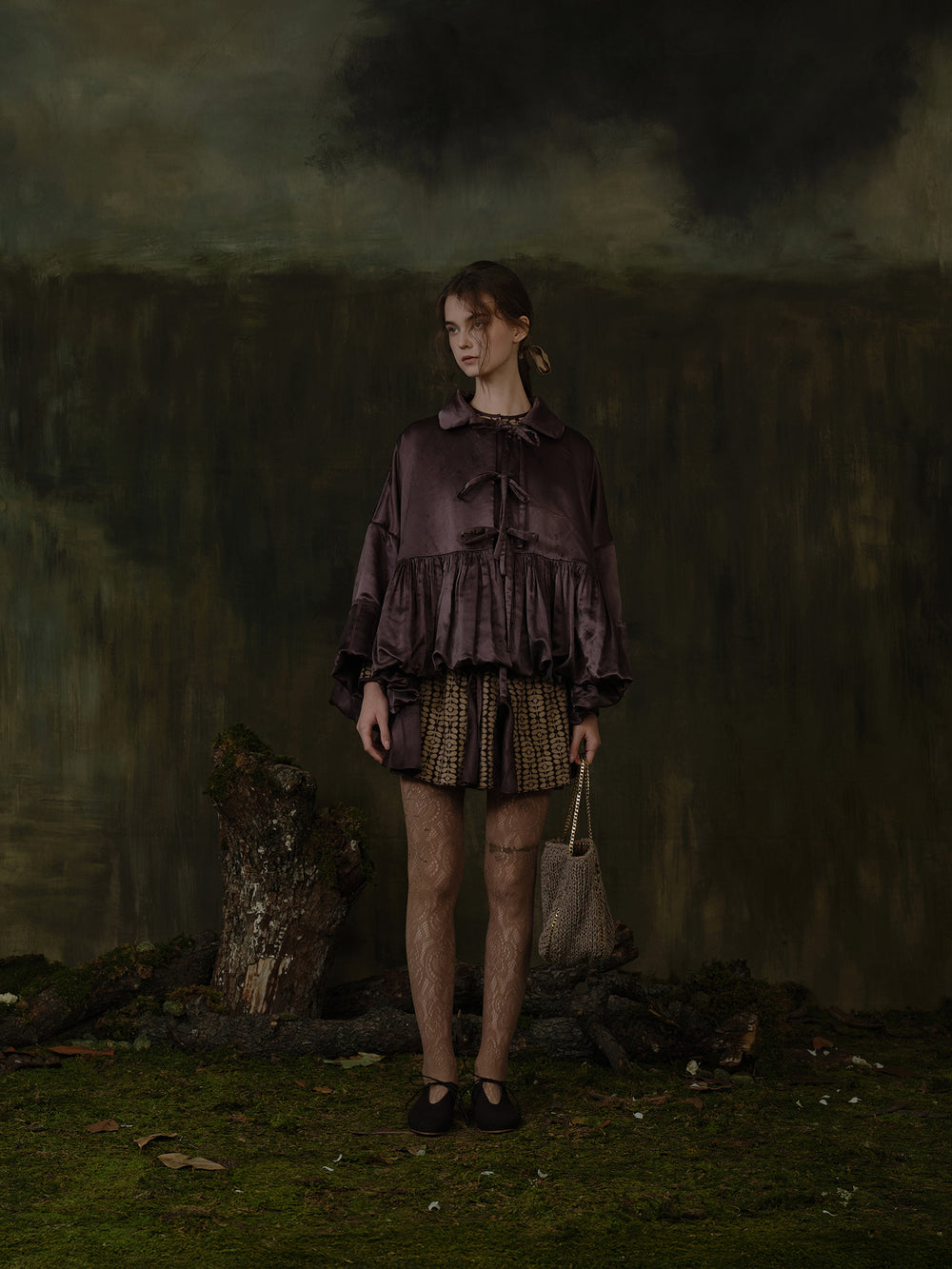 Mutedance Fall/Winter 2025 Floral Coat, Plant Dye MD-MD25FW133-purple